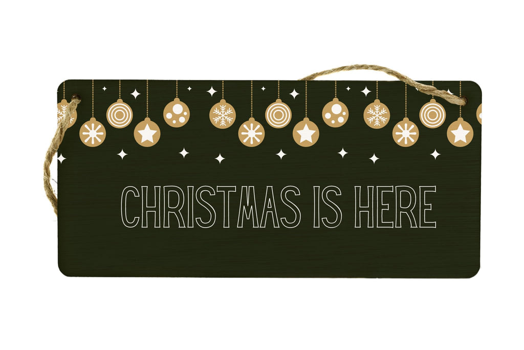 Christmas is Here: Full Colour Plywood Hanging Sign - Festive Christmas Decor and Holiday Decoration