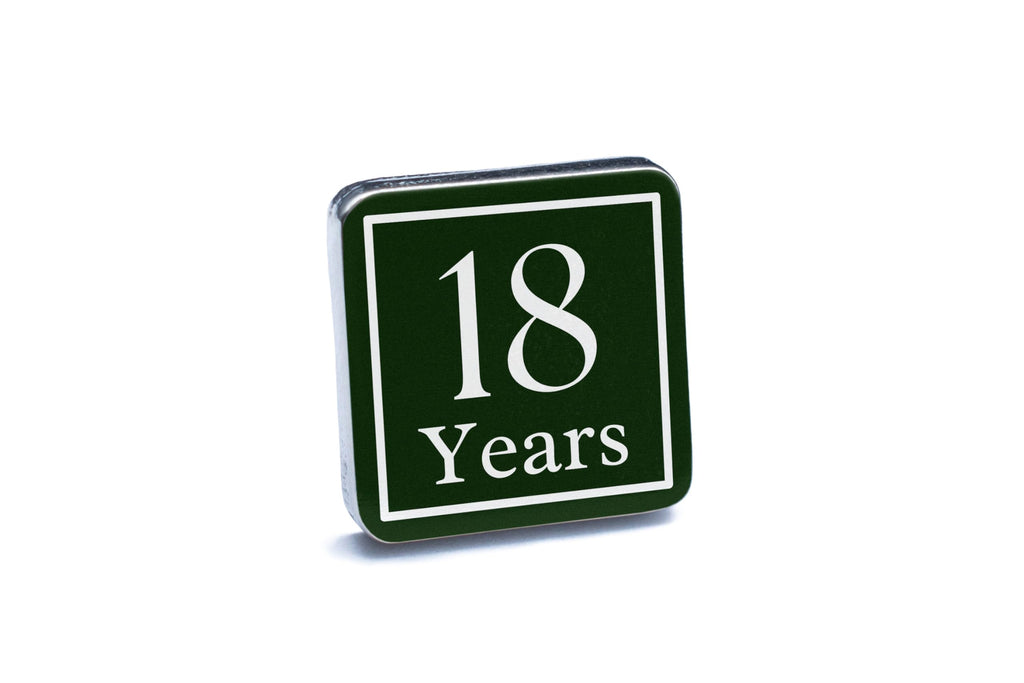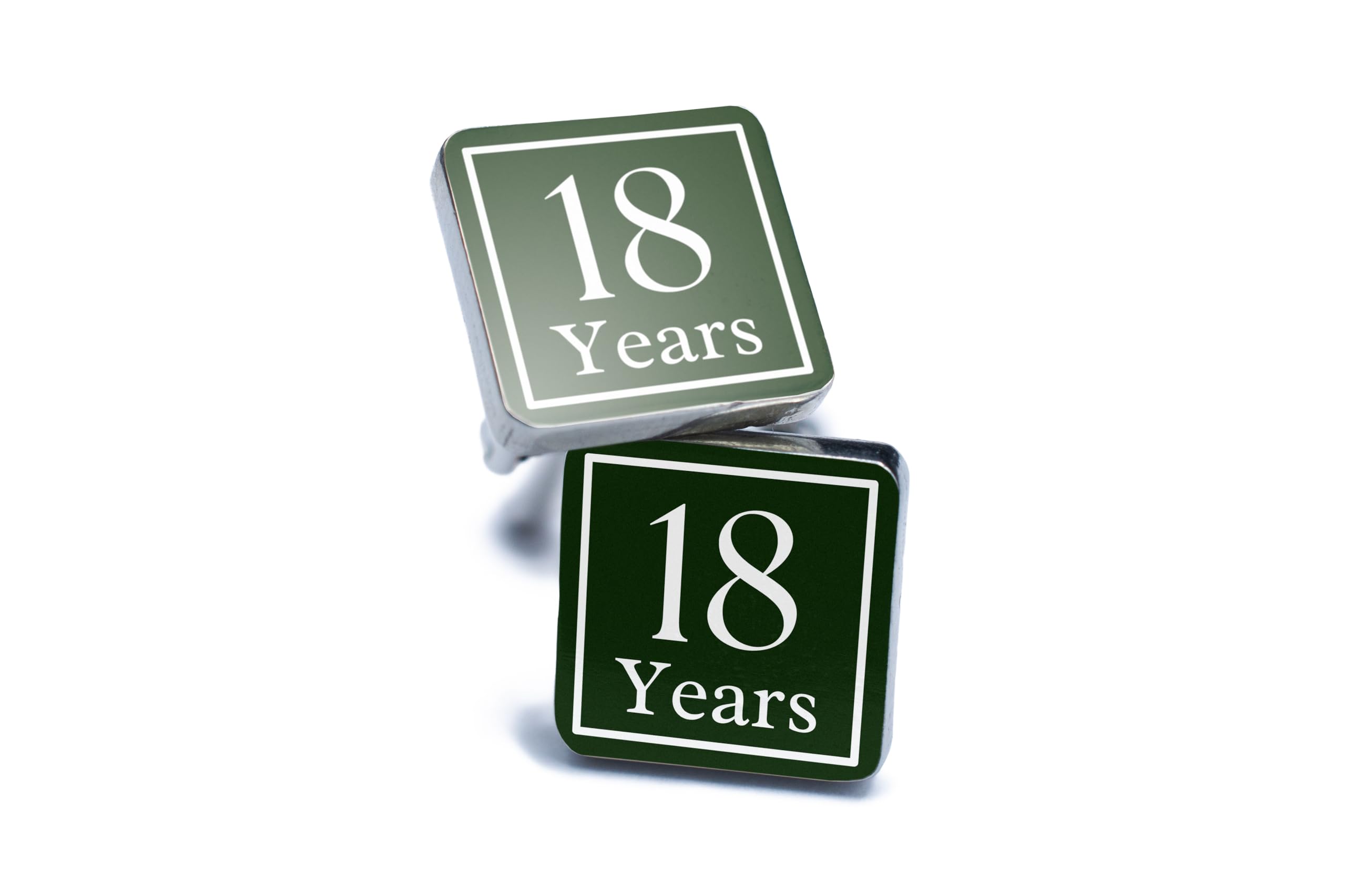 - UV printed cufflinks featuring an elegant '18 Years' design
