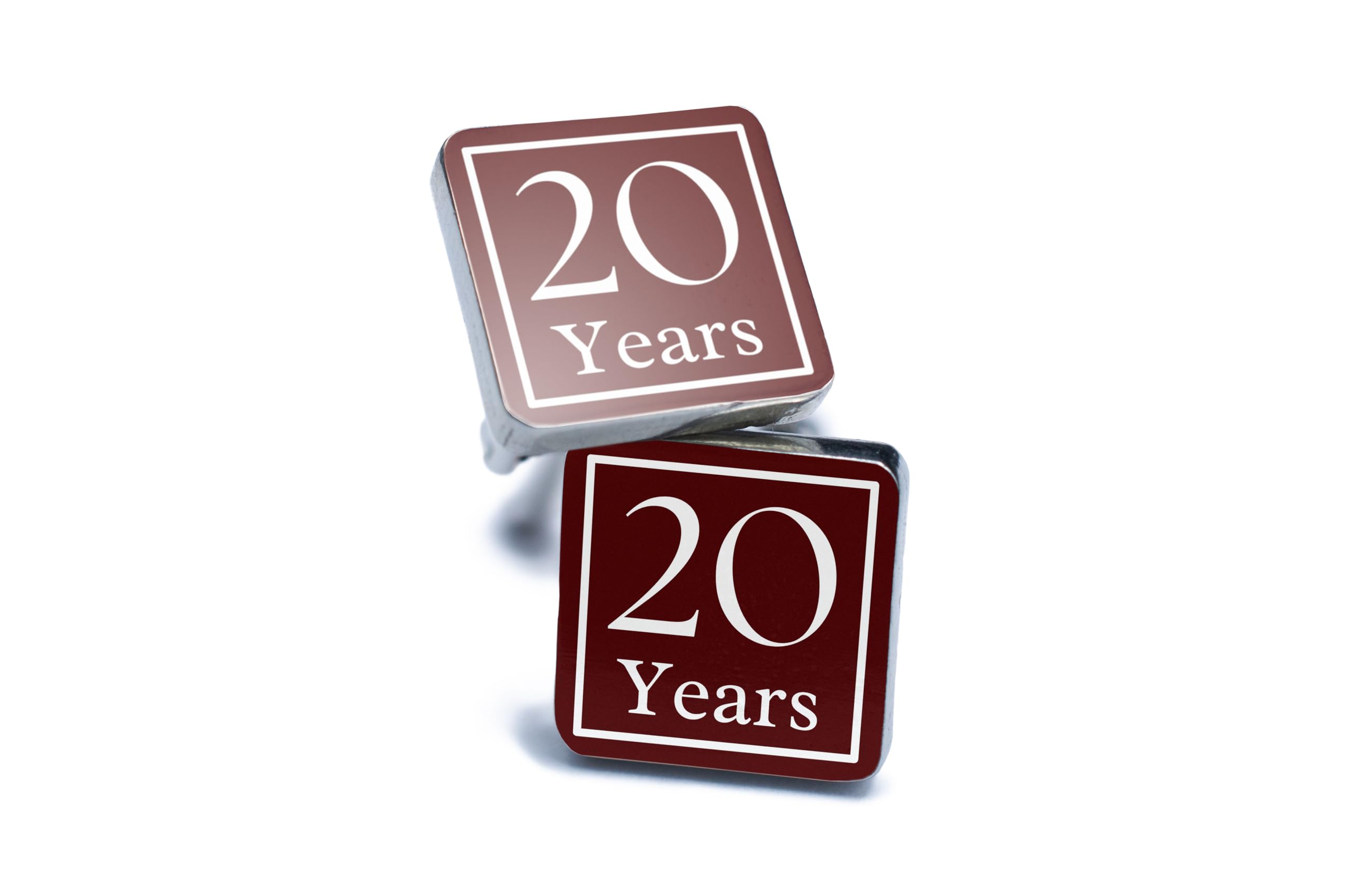 Celebrate two decades of milestones with these elegant "20 Years Anniversary Cufflinks." Designed to honor 20 years of achievements, these cufflinks feature a rich maroon base with bold white lettering framed in a classic border. Whether it?s a professional career milestone, a relationship anniversary, or a personal triumph, these cufflinks are a sophisticated way to mark the occasion. Crafted from premium materials, these cufflinks are built to last as a cherished keepsake. Their polished design complements any formal attire, making them ideal for business events, special dinners, or celebrations. Packaged in a premium gift box, these cufflinks are a meaningful and stylish gift for those commemorating two decades of dedication and success. Honor the journey and wear your pride with these timeless accessories.