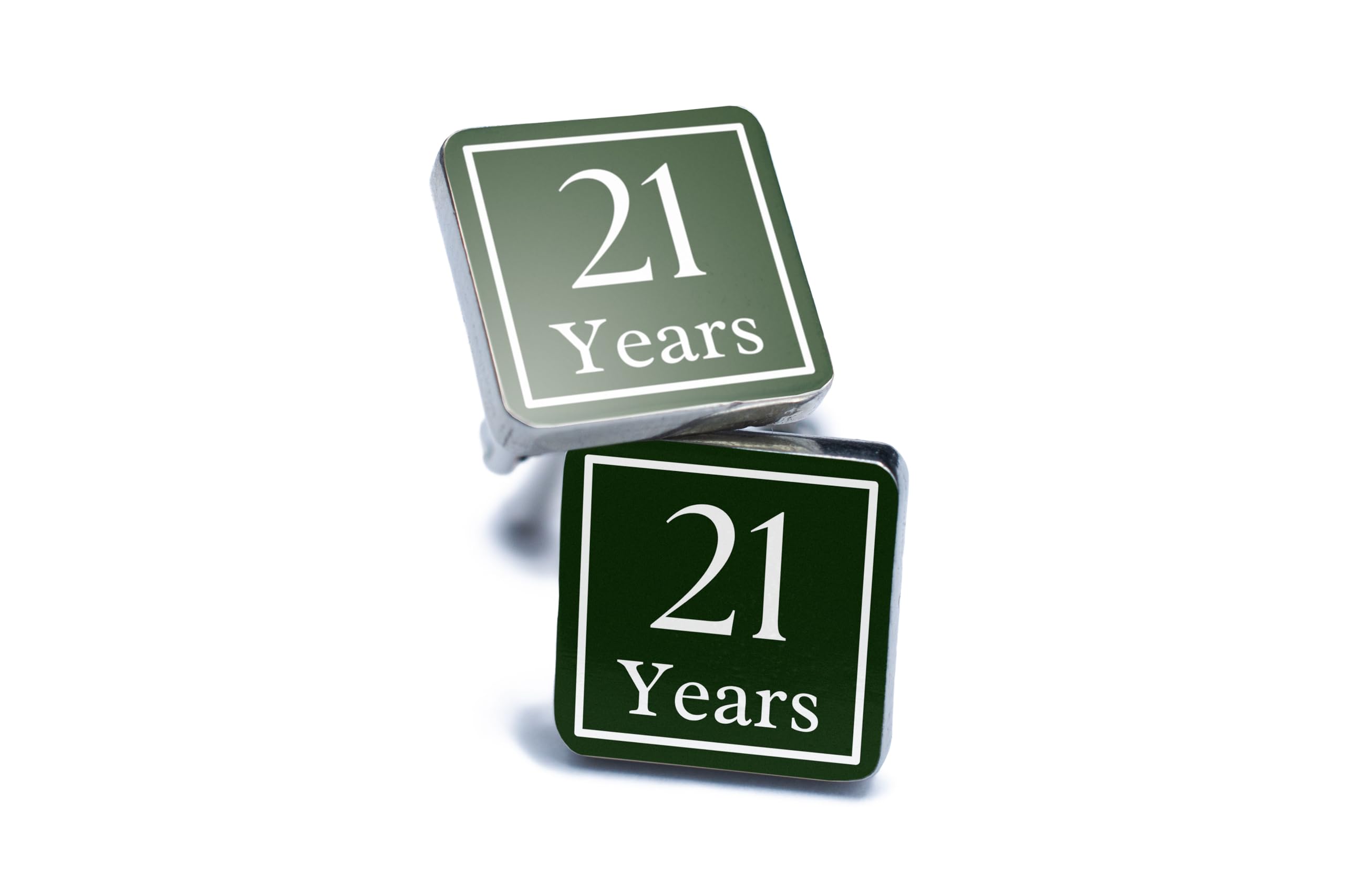 21 Years Commemorative UV Printed Green and White Cufflinks (cuff-kf24-g21ymg)
