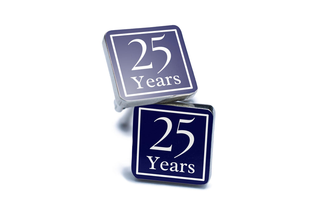 25 Years Anniversary Design - Handcrafted UV Printed Tin Cufflinks (cuff-kf24-b25ymg)