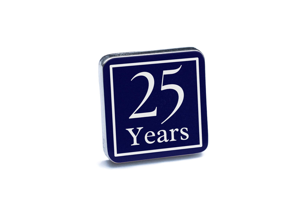 These handcrafted UV printed tin cufflinks are the perfect accessory to celebrate your 25 years milestone. Made with care and attention to detail, these handmade cufflinks feature a simple typography design that reads '25 years' in elegant and minimalist style. Crafted by artisanal hands, these elegant cufflinks are a stylish addition to any men's fashion ensemble. Whether you're marking your own 25 years anniversary or looking for a thoughtful gift for a loved one, these handcrafted tin cufflinks are sure to impress. The full colour UV printed design ensures that the anniversary message stands out, making these cufflinks a unique and special way to commemorate the occasion.