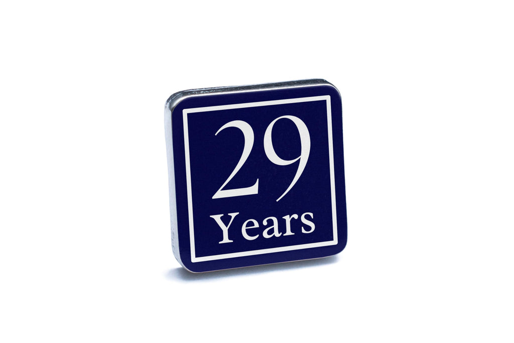 Introducing our exquisite handcrafted UV printed Tin Cufflinks, designed especially for celebrating your 29 years anniversary milestone. These elegant cufflinks are handmade with care and attention to detail, making them a unique and stylish accessory for any man's wardrobe. The anniversary design features simple typography that reads '29 years', in a minimalist and artisanal style. The full colour UV printing on the tin cufflinks creates a modern and sleek look that is perfect for commemorating this special occasion. Whether you are treating yourself or looking for a thoughtful gift for a loved one, these handcrafted cufflinks are sure to impress with their unparalleled craftsmanship and design. Add a touch of sophistication to your outfit with these handcrafted tin and pewter cufflinks, a truly special way to celebrate your 29 years together.