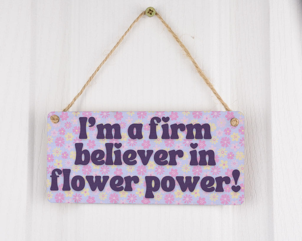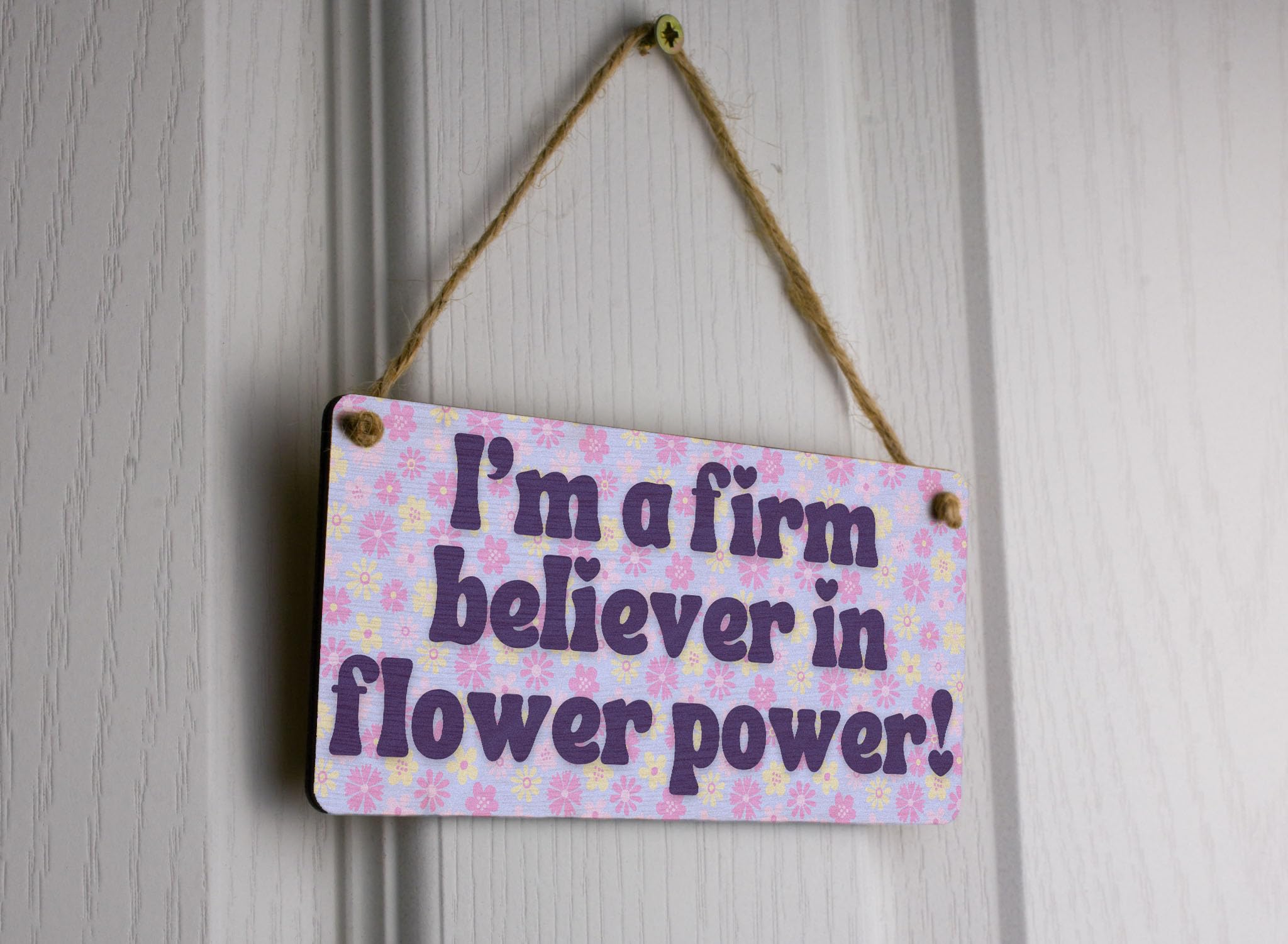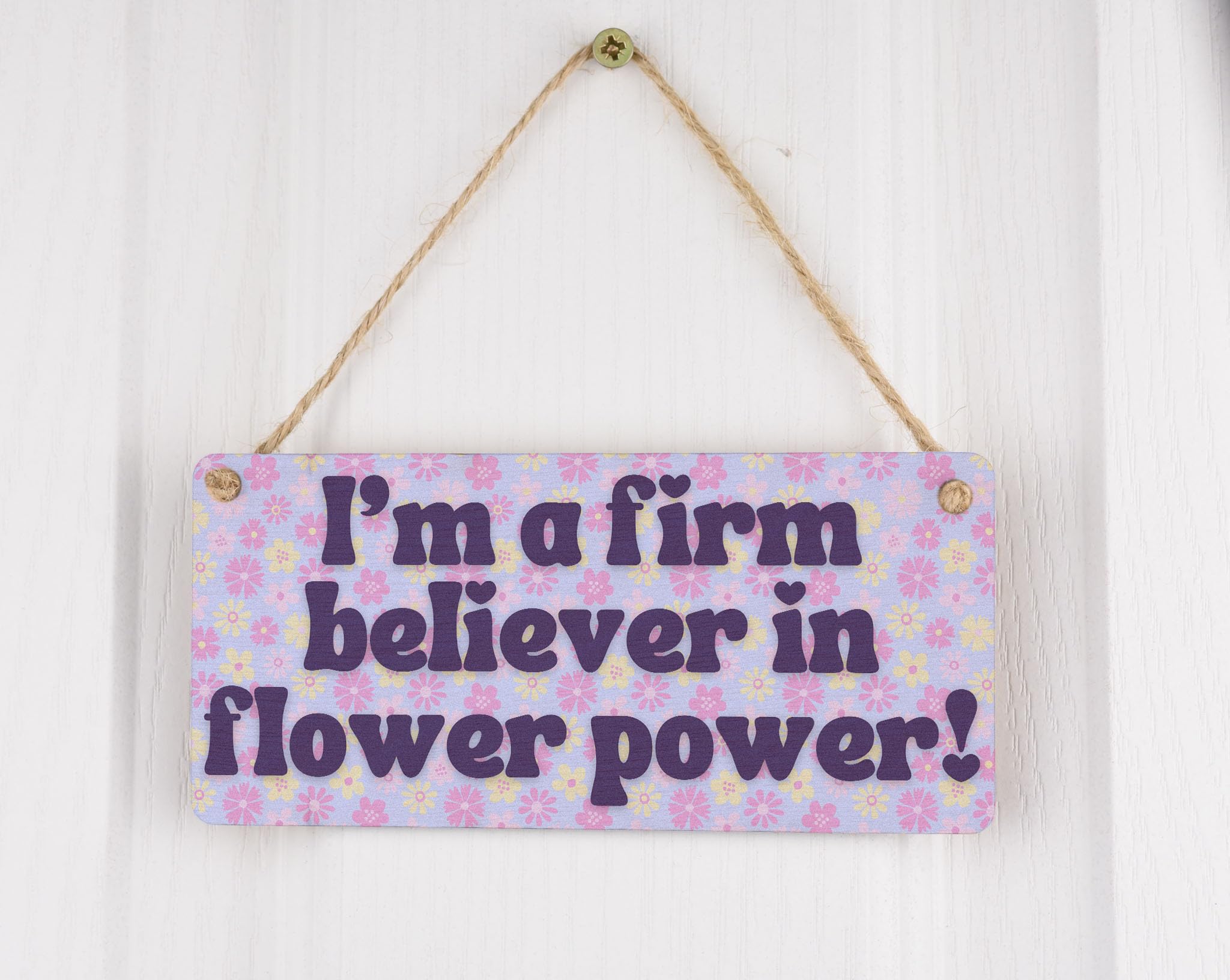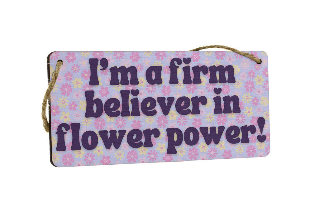 This 60s Inspired Floral Design Sign is the perfect addition to your retro decor, adding a touch of flower power to your home. Made from handcrafted laser-cut plywood, this small hanging plaque features a colourful uv printed design that showcases a cute 60s flower power inspired pattern. The sign comes with twine included for easy hanging, making it a fun and quirky piece of wall art for your home. With the positive message 'I'm a firm believer in flower power', this unique wall hanging is sure to inspire and uplift anyone who sees it. Surprise mum on her birthday with this flower-themed decor that will brighten up any room.
