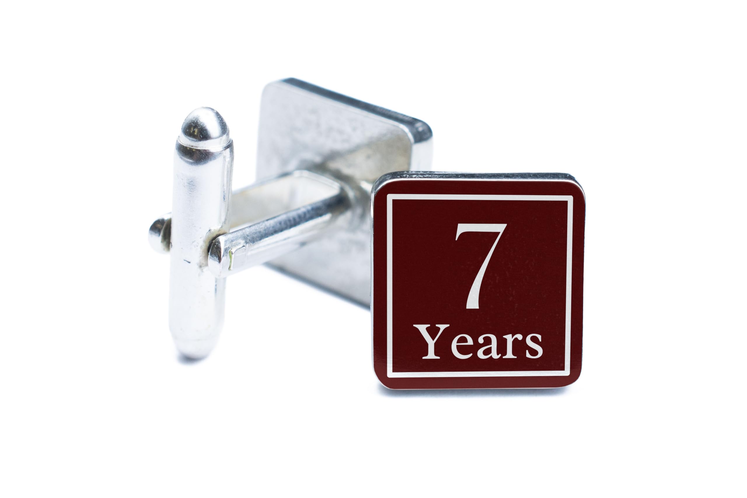 ### Product Title: "7-Year Anniversary Cufflinks ? Timeless Maroon and White Milestone Keepsake" --- ### Bullet Points: - **Celebrate 7 Years of Achievement**: Mark your seven-year milestone with these elegant and sophisticated cufflinks. - **Classic Design**: Featuring a deep maroon background, crisp white text, and a minimalist border for a refined look. - **Superior Quality**: Crafted with durable materials and polished for long-lasting elegance and wearability. - **Perfect for Gifting**: Ideal for celebrating anniversaries, achievements, or other significant 7-year milestones. - **Elegant Packaging**: Delivered in a premium gift box, ready to be presented for any special occasion. --- ### Product Description: **Mark Your 7-Year Journey with Style** Celebrate seven years of commitment, growth, or success with these beautifully designed cufflinks. The rich maroon and white design exudes elegance and is perfect for formal occasions, making it a thoughtful gift or personal keepsake. **Exceptional Craftsmanship for Timeless Wear** Made with premium materials and detailed craftsmanship, these cufflinks are built to last, offering a polished finish that complements any attire. **A Thoughtful and Meaningful Gift** Whether it's a work anniversary, wedding milestone, or personal achievement, these cufflinks symbolize dedication and success. They come packaged in an elegant gift box, ready for gifting. Celebrate your seven-year milestone in style with this timeless keepsake ? a perfect blend of sophistication and sentimentality.