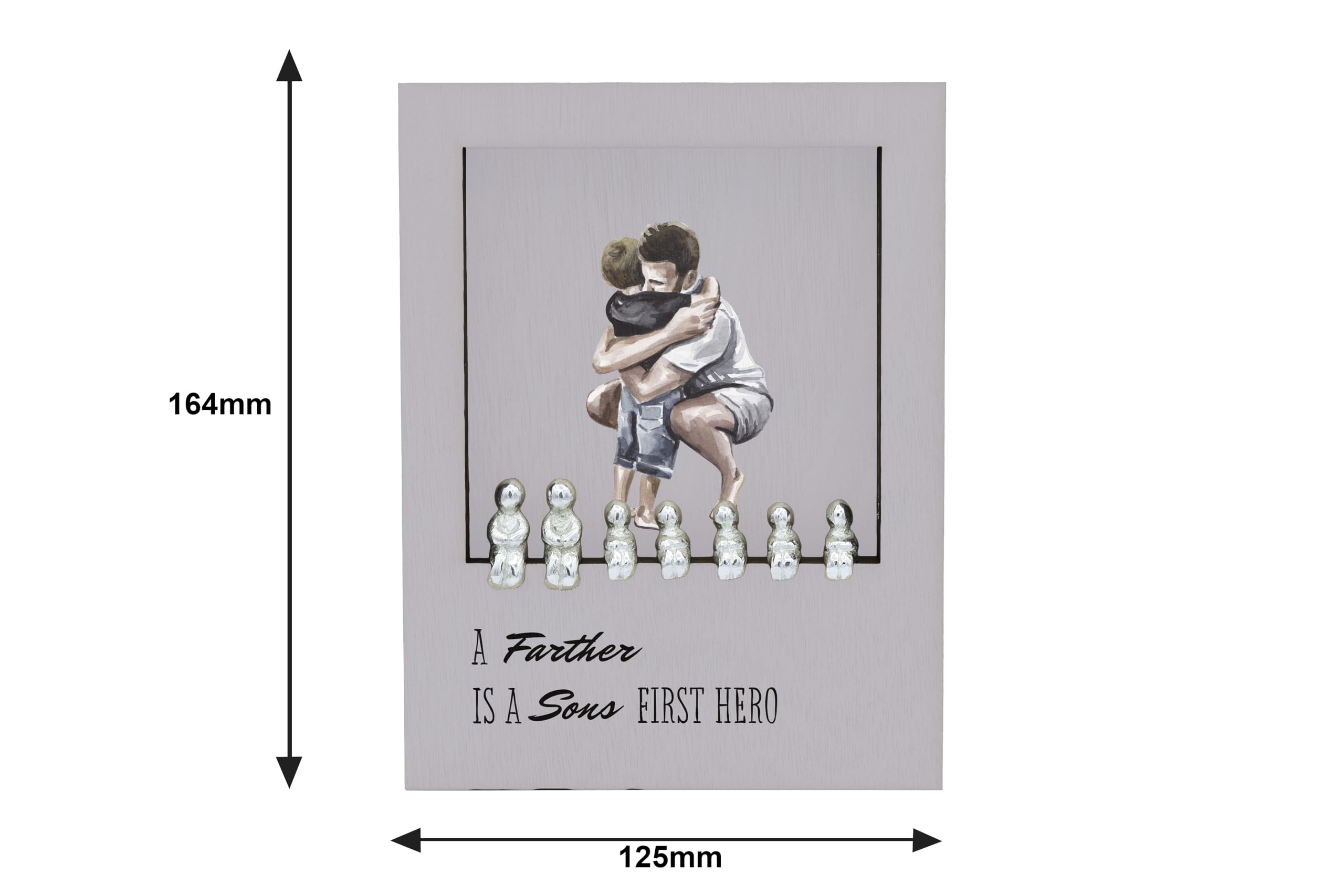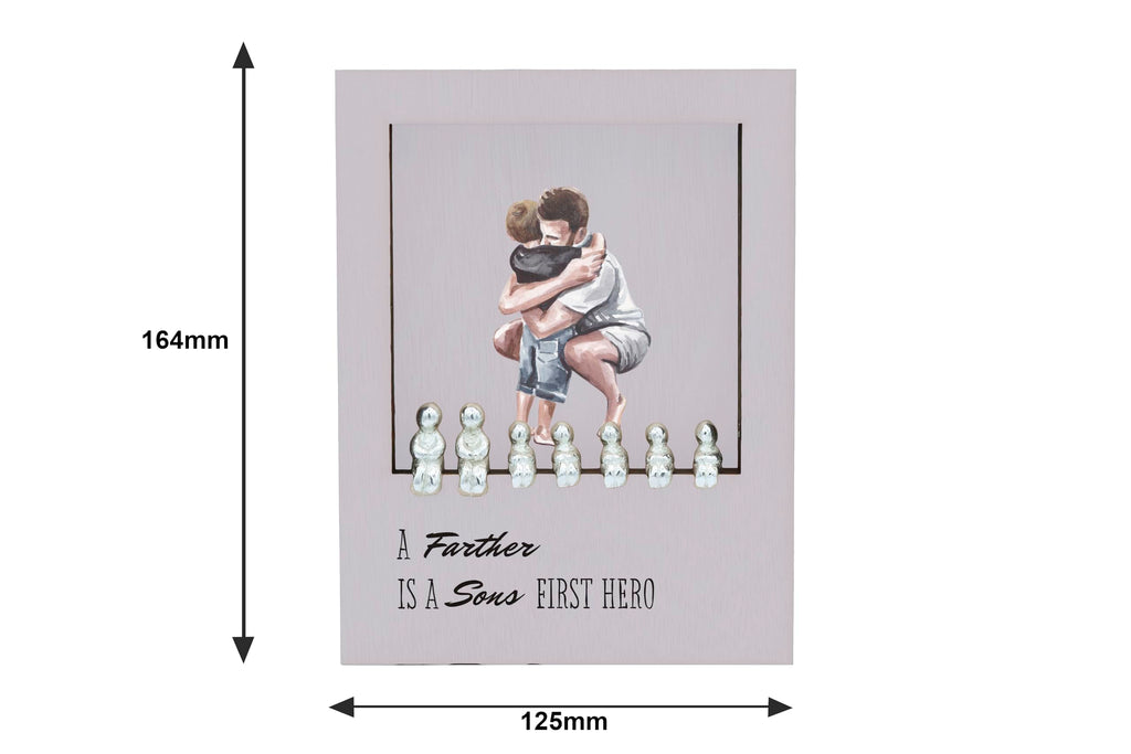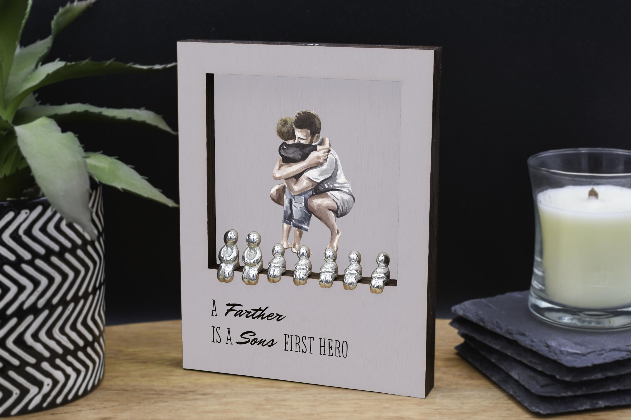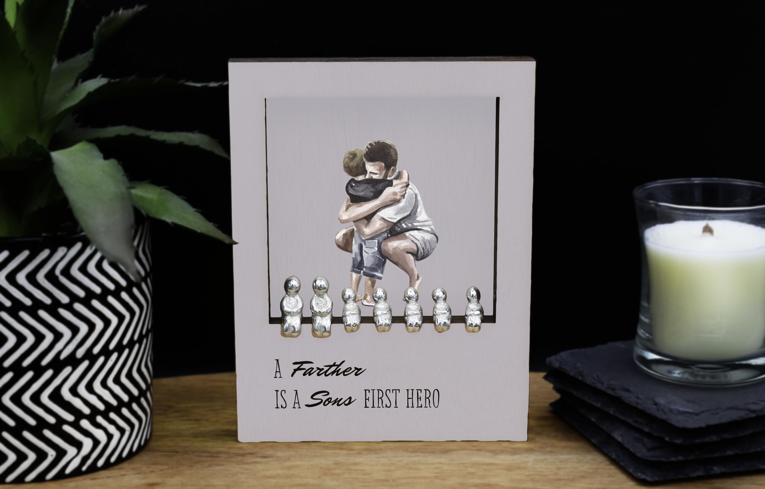 Introducing our Personalised Family Ornament, the perfect home decoration for Father's Day. This customisable ornament features the heartwarming phrase 'A Father Is a Son's First Hero', reminding us of the special bond between fathers and sons. Made with love, this unique decoration is a beautiful way to celebrate the love and strength of your own family. Our ornament is customisable to your own family combination, allowing you to include up to 7 people. Whether it's a father and son, a whole family, or a combination that represents your unique bond, this ornament is a wonderful way to cherish those closest to your heart.