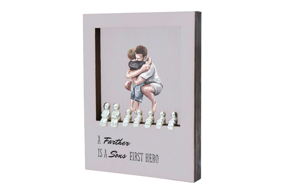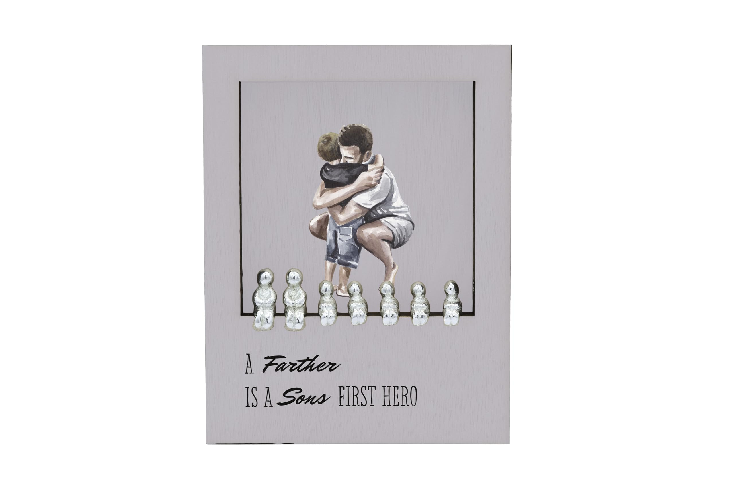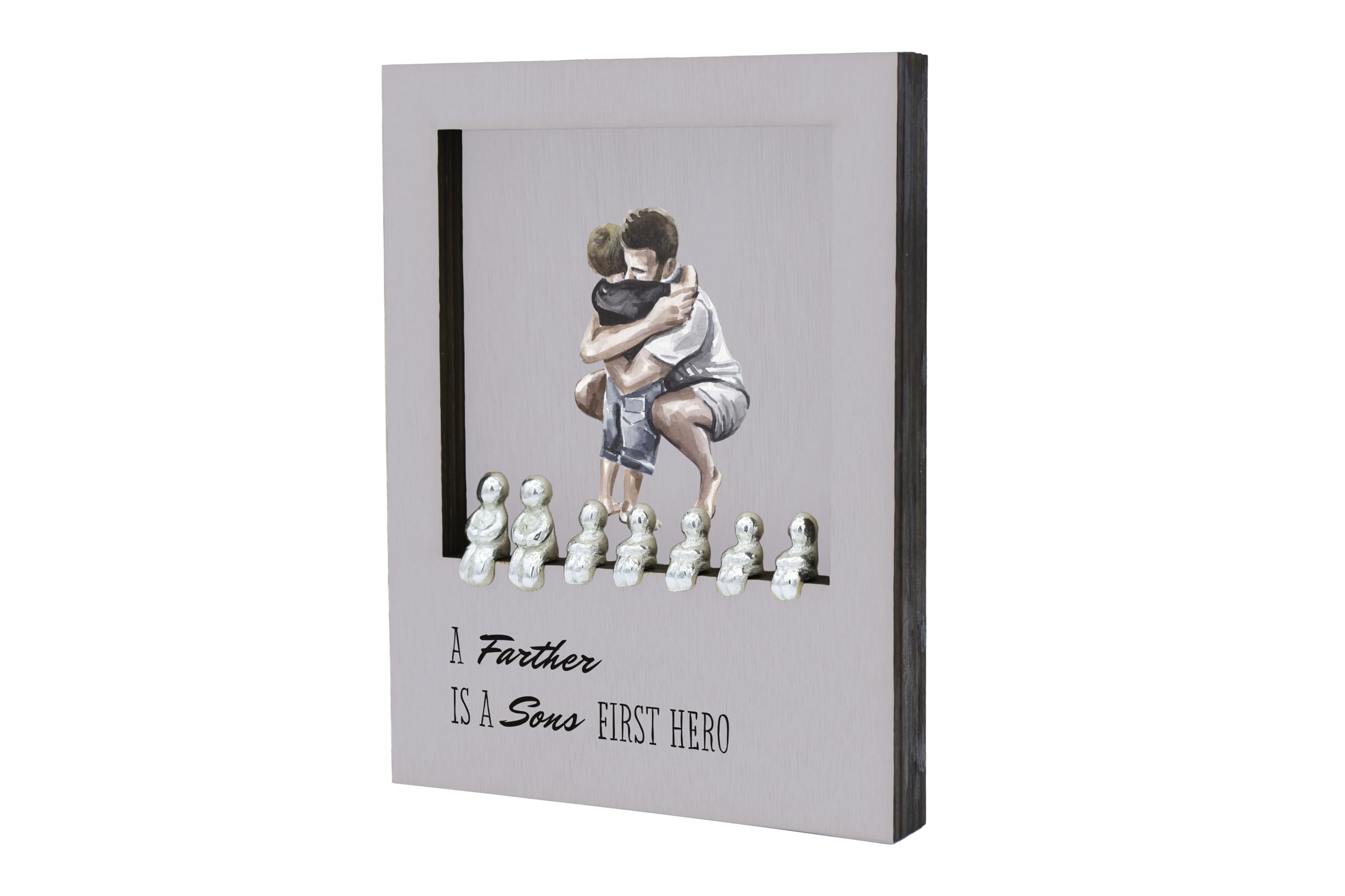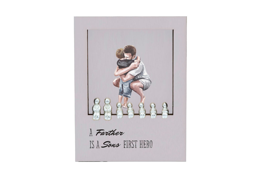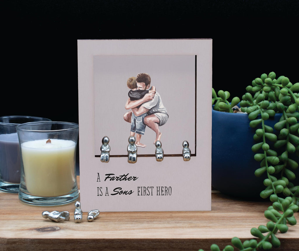 Introducing our Personalised Family Ornament, the perfect home decoration for Father's Day. This customisable ornament features the heartwarming phrase 'A Father Is a Son's First Hero', reminding us of the special bond between fathers and sons. Made with love, this unique decoration is a beautiful way to celebrate the love and strength of your own family. Our ornament is customisable to your own family combination, allowing you to include up to 7 people. Whether it's a father and son, a whole family, or a combination that represents your unique bond, this ornament is a wonderful way to cherish those closest to your heart.