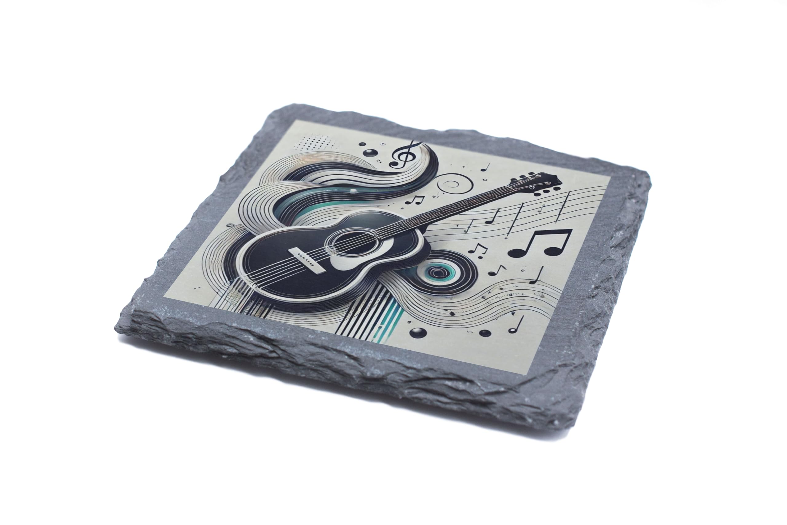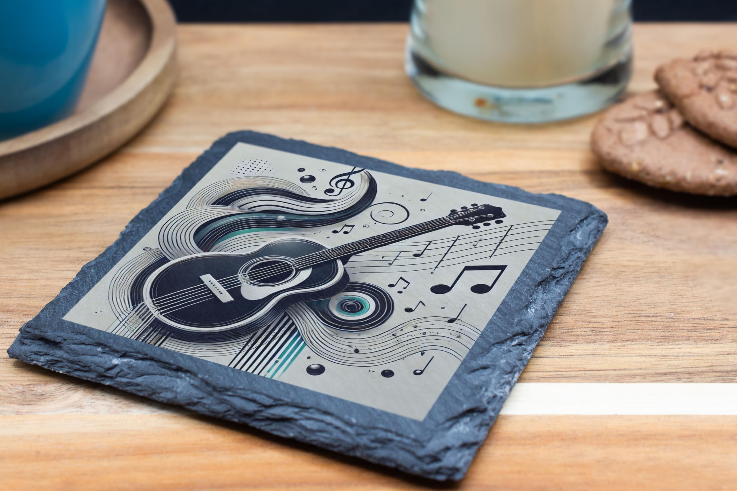 Celebrate your love for music with this beautifully designed slate coaster featuring an abstract acoustic guitar artwork. The intricate swirls, musical notes, and bold patterns create a visually stunning piece that resonates with music enthusiasts and artists alike. Made from high-quality, durable slate, this coaster is perfect for both practical use and decoration. Whether protecting surfaces from hot or cold beverages or adding a stylish touch to your home or music studio, this coaster is a unique blend of functionality and artistic expression. A great gift for guitarists, music lovers, or anyone who appreciates unique designs!