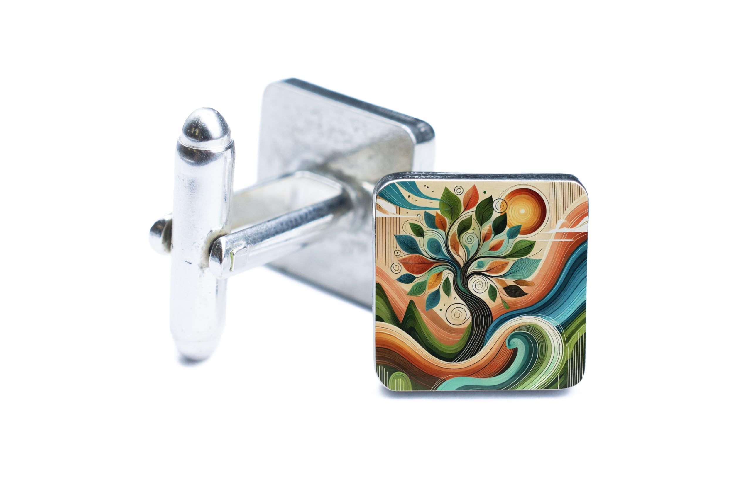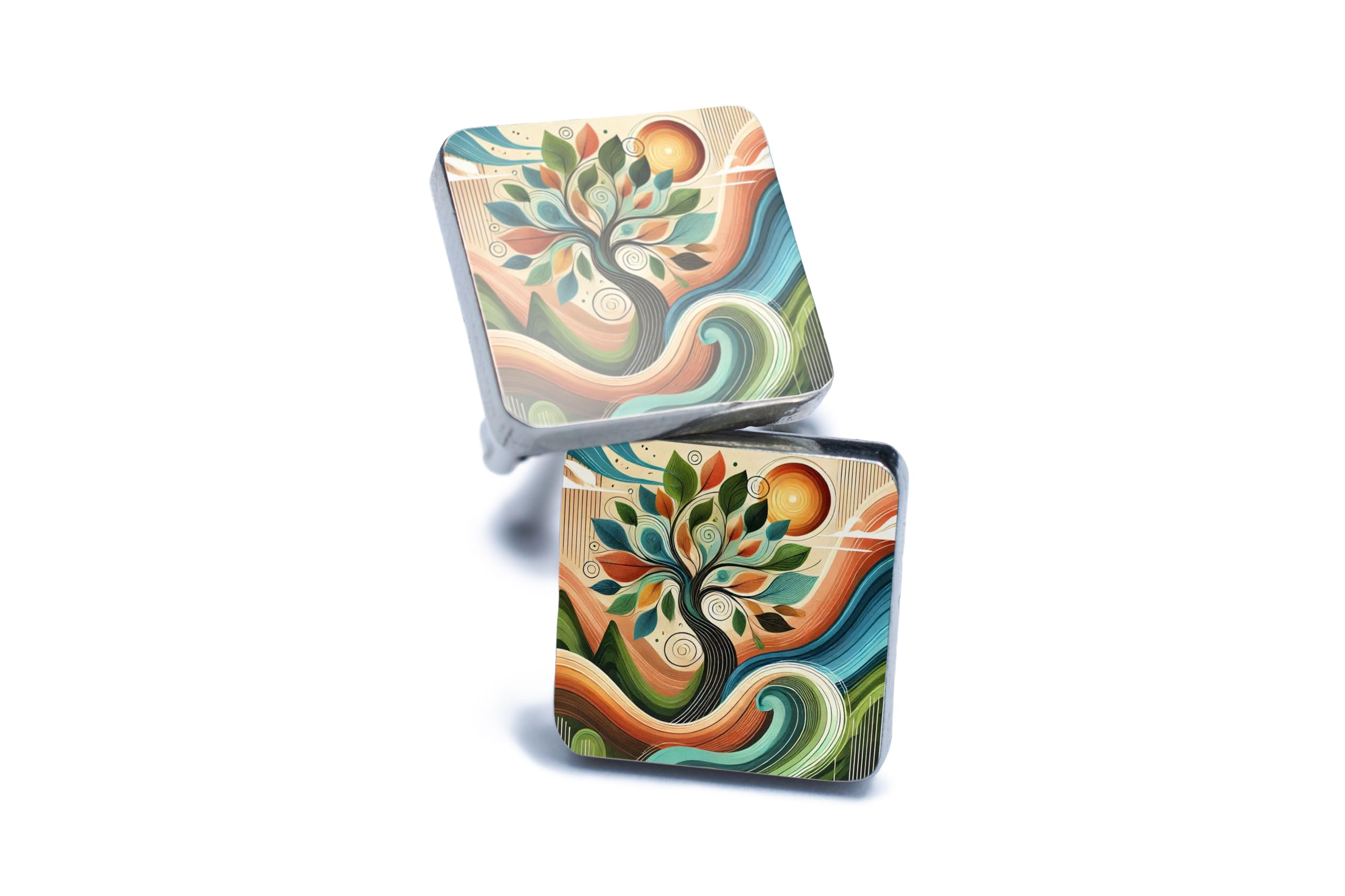 Enhance your wardrobe with these Abstract Tree of Life Cufflinks, a stunning accessory inspired by the beauty and resilience of nature. The design features a captivating, colorful tree motif with swirling patterns, representing growth, harmony, and vitality. Crafted with care and attention to detail, these cufflinks are perfect for nature lovers, art enthusiasts, or anyone who enjoys meaningful accessories. Whether you're attending a formal event, a wedding, or simply elevating your office attire, these cufflinks add a touch of eco-inspired elegance to your ensemble. Make a statement and carry the essence of nature with you wherever you go!