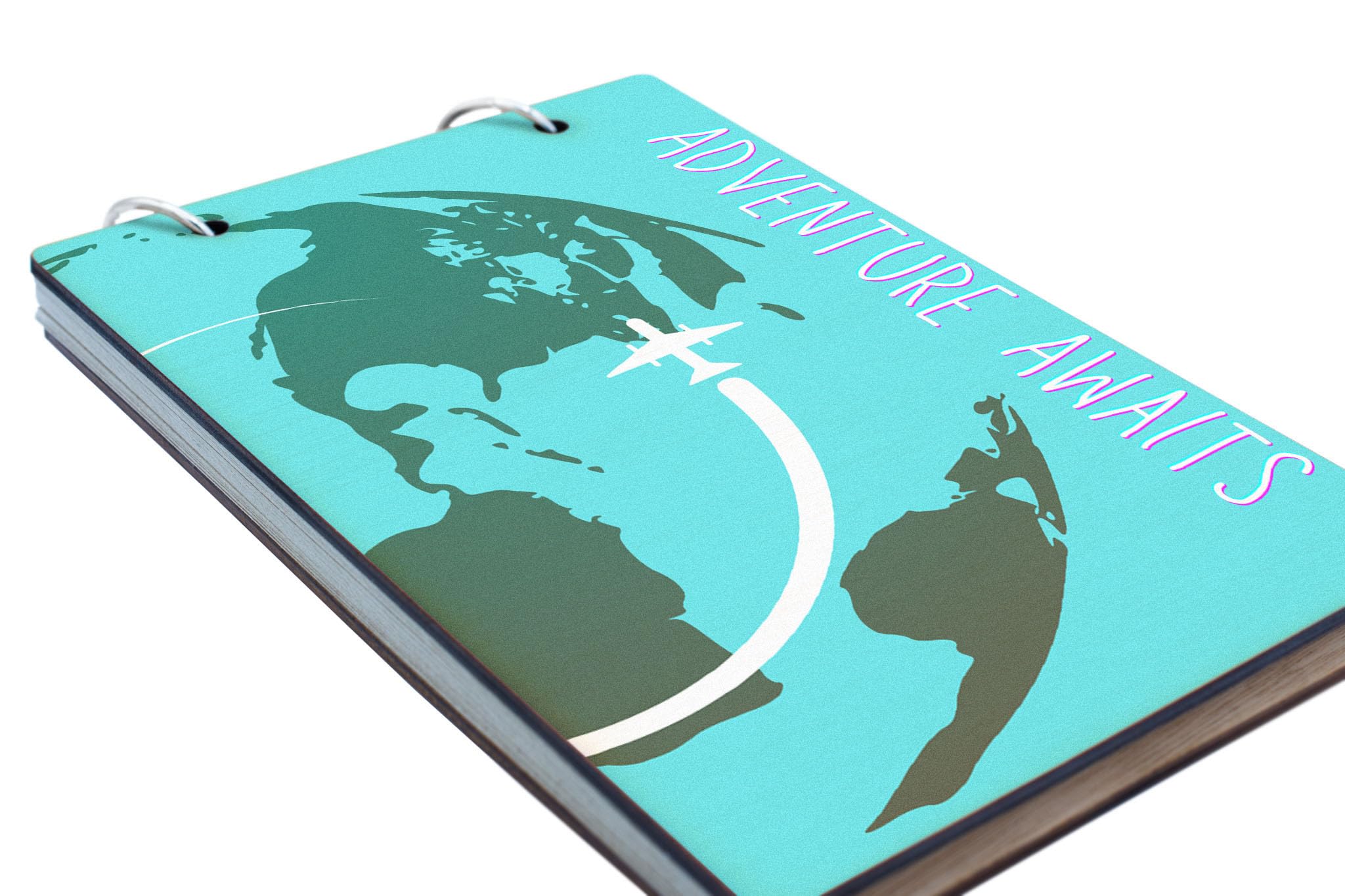 • Features 25 recycled pages and a wooden cover with a full colour cover showing a plane flying across the map of the world