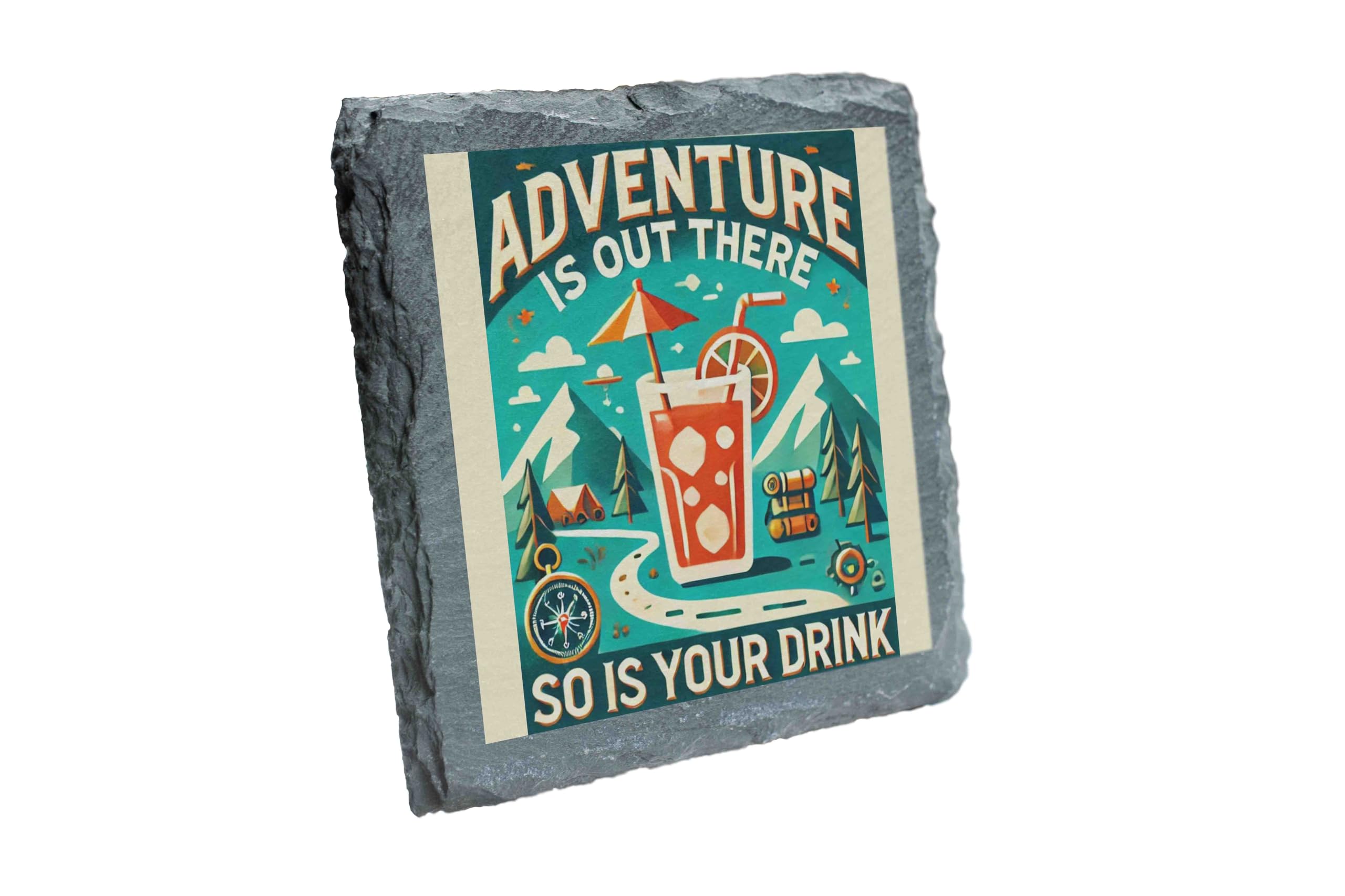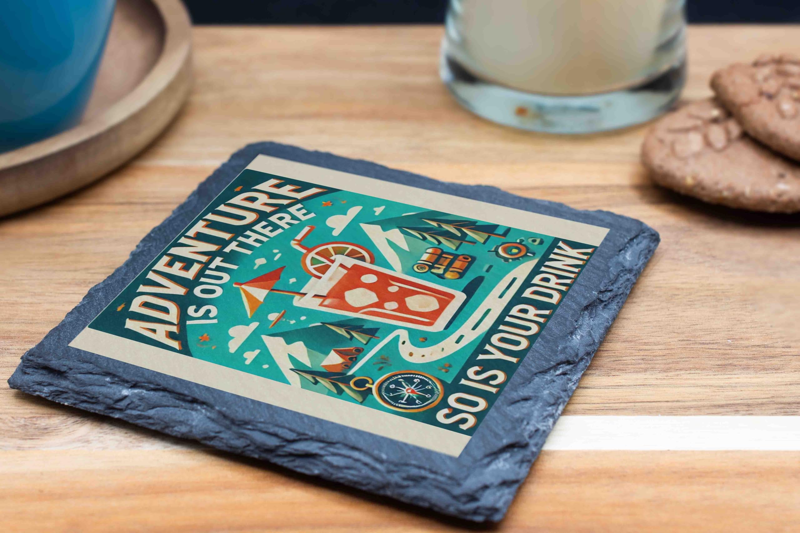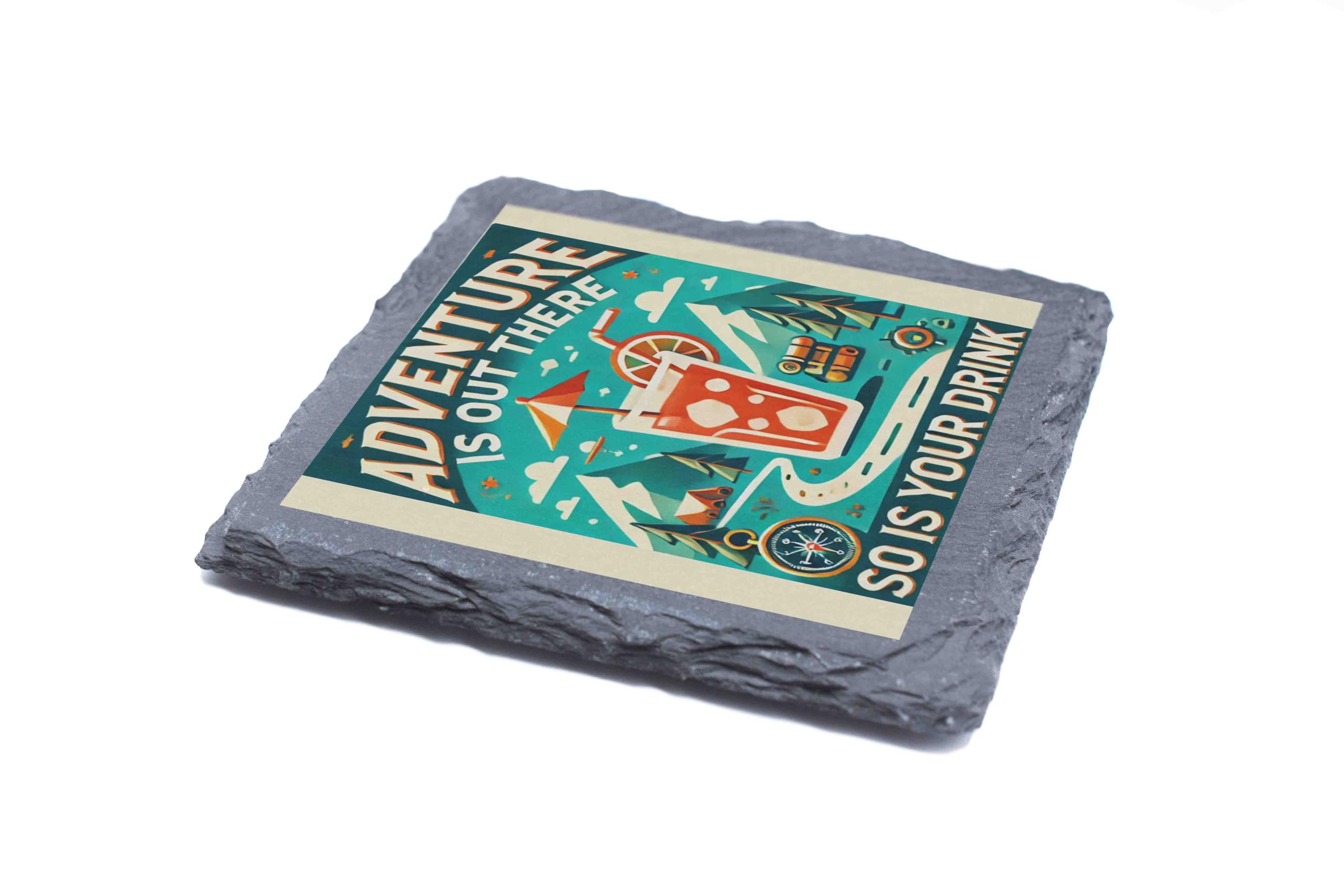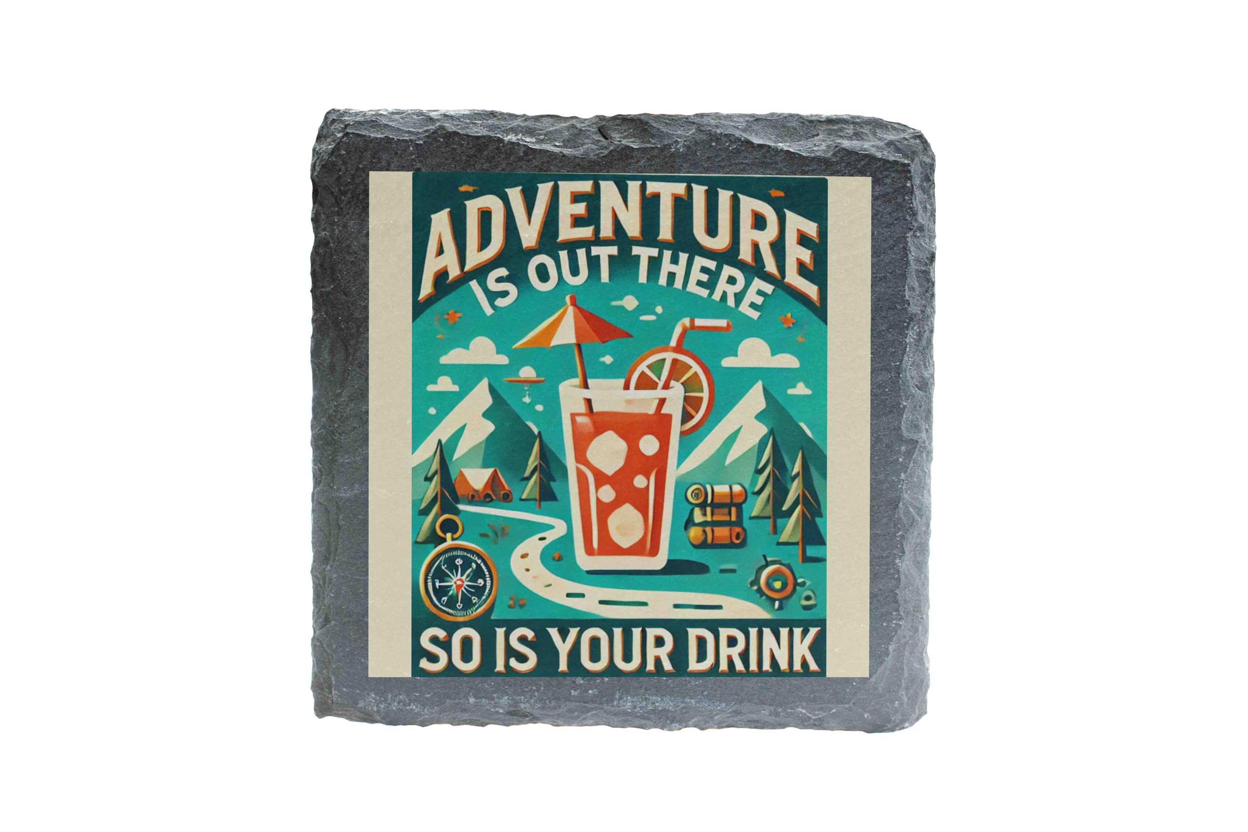 Add a touch of adventure to your home or outdoor gatherings with this "Adventure Is Out There, So Is Your Drink" slate coaster. Featuring a fun and colorful design inspired by camping and the great outdoors, this coaster is the perfect companion for any beverage, whether you're sipping around a campfire or relaxing at home. Made from premium natural slate, this coaster is durable, stylish, and eco-friendly. The felt backing protects your furniture from scratches while preventing slipping, ensuring stability wherever you place it. Ideal for outdoor lovers, campers, or those who simply appreciate a whimsical touch, this coaster makes a fantastic gift for any occasion. Celebrate the spirit of exploration with every sip!
