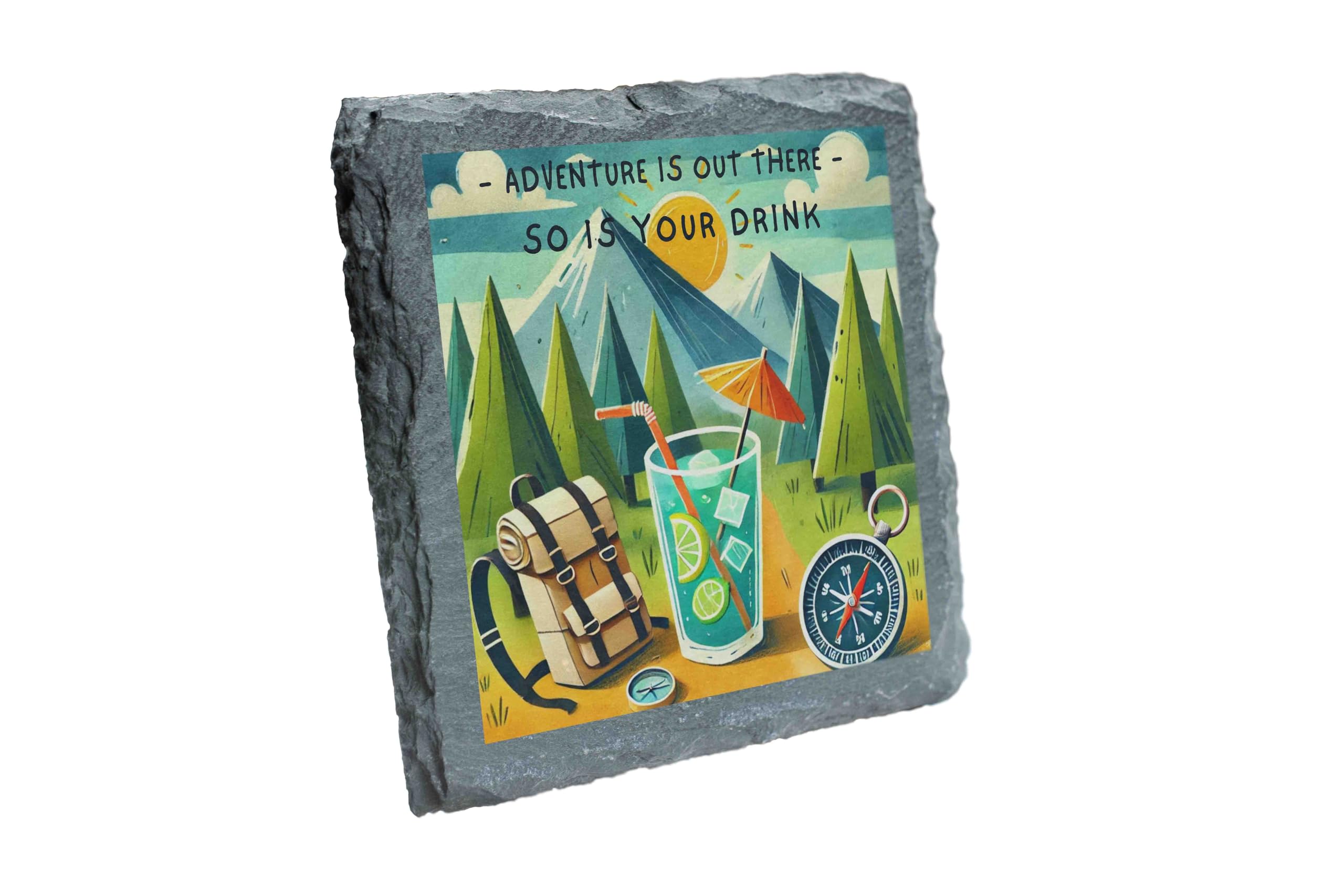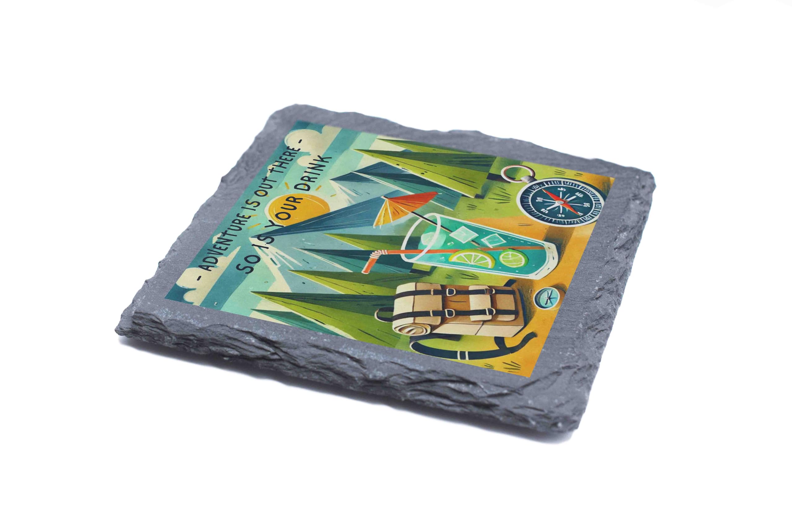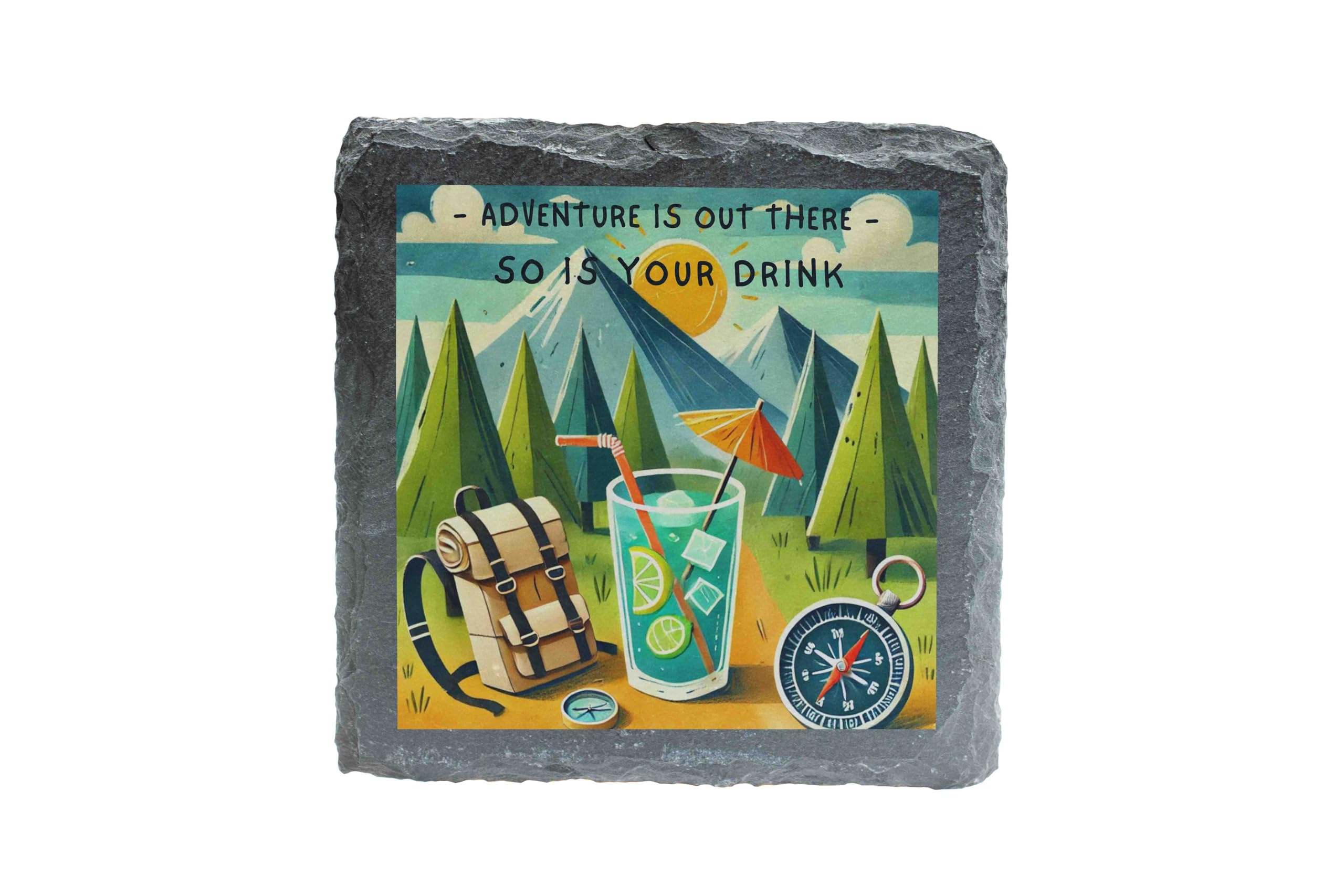 Adventure is Out There Slate Coaster ? Vibrant Hiking and Nature-Themed Drinkware Accessory (slco-kf25-adventouthg)