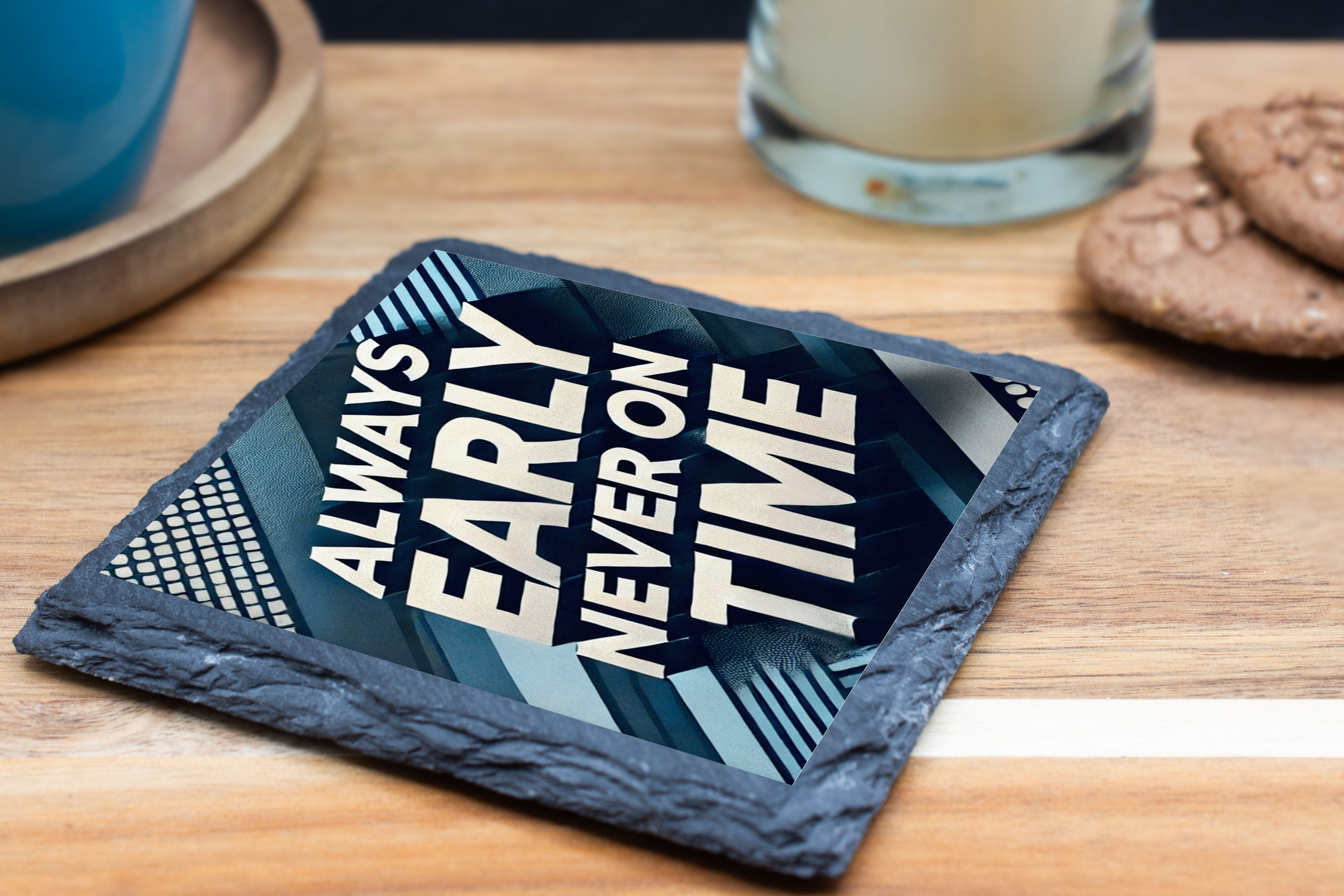 Always Early, Never On Time - Quirky Slate Coaster Set