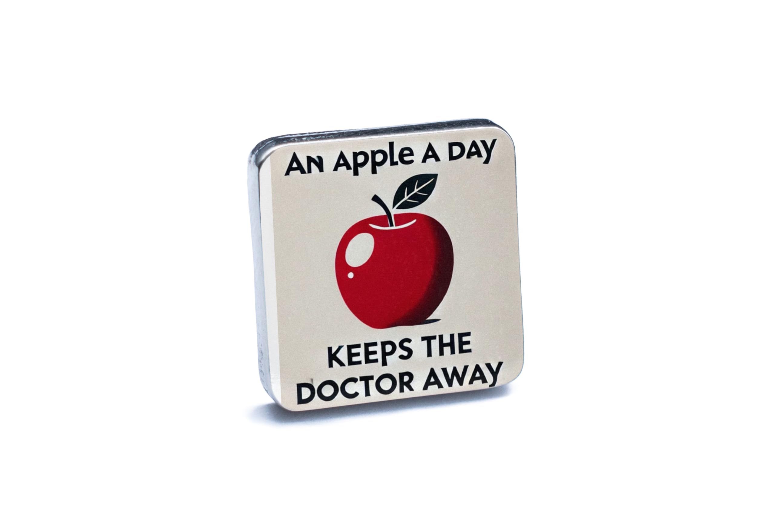 - Playful Design: Features a vibrant red apple with the humorous phrase âAn Apple a Day Keeps the Doctor Away.â
