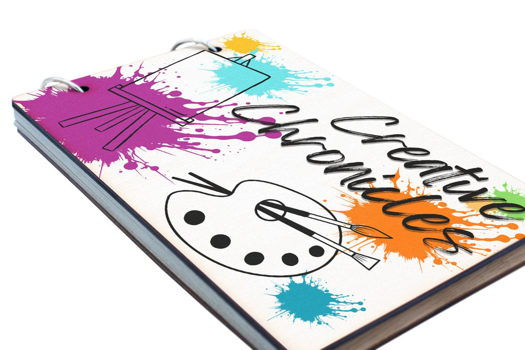 Introducing our Artistic Sketchbook: Creative Chronicles Journal with Stunning Full Colour Design and Wooden Cover. This art book is perfect for artists who enjoy painting, sketching, and keeping a creative journal. The Creative Chronicles Journal is not just a regular sketch book - it is an Artistic Scrapbook and Craft Journal all in one. The stunning full colour design on the cover features artistic paint splatter in full colourful splendor, making it a beautiful addition to any artist's collection. The wooden cover adds a touch of sophistication to this DIY Memory Book, providing a customized and handmade feel. With 25 recycled pages, this Art Sketchbook is not only environmentally friendly but also perfect for those who prioritise sustainability in their craft. Whether you are looking for a Personalized Art Journal or a Memory Keeping Album, this Scrapbook for Artists is the perfect choice for you.