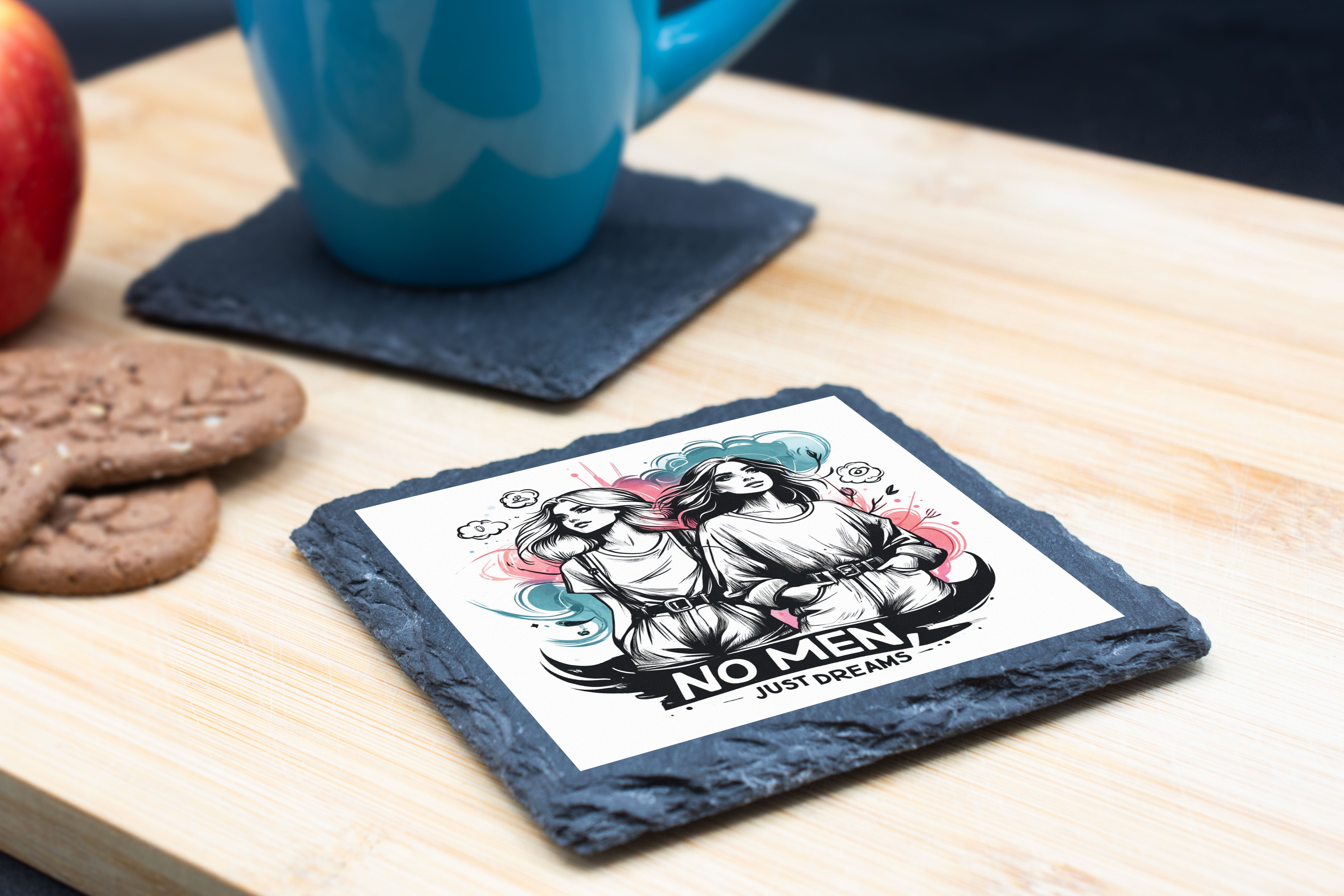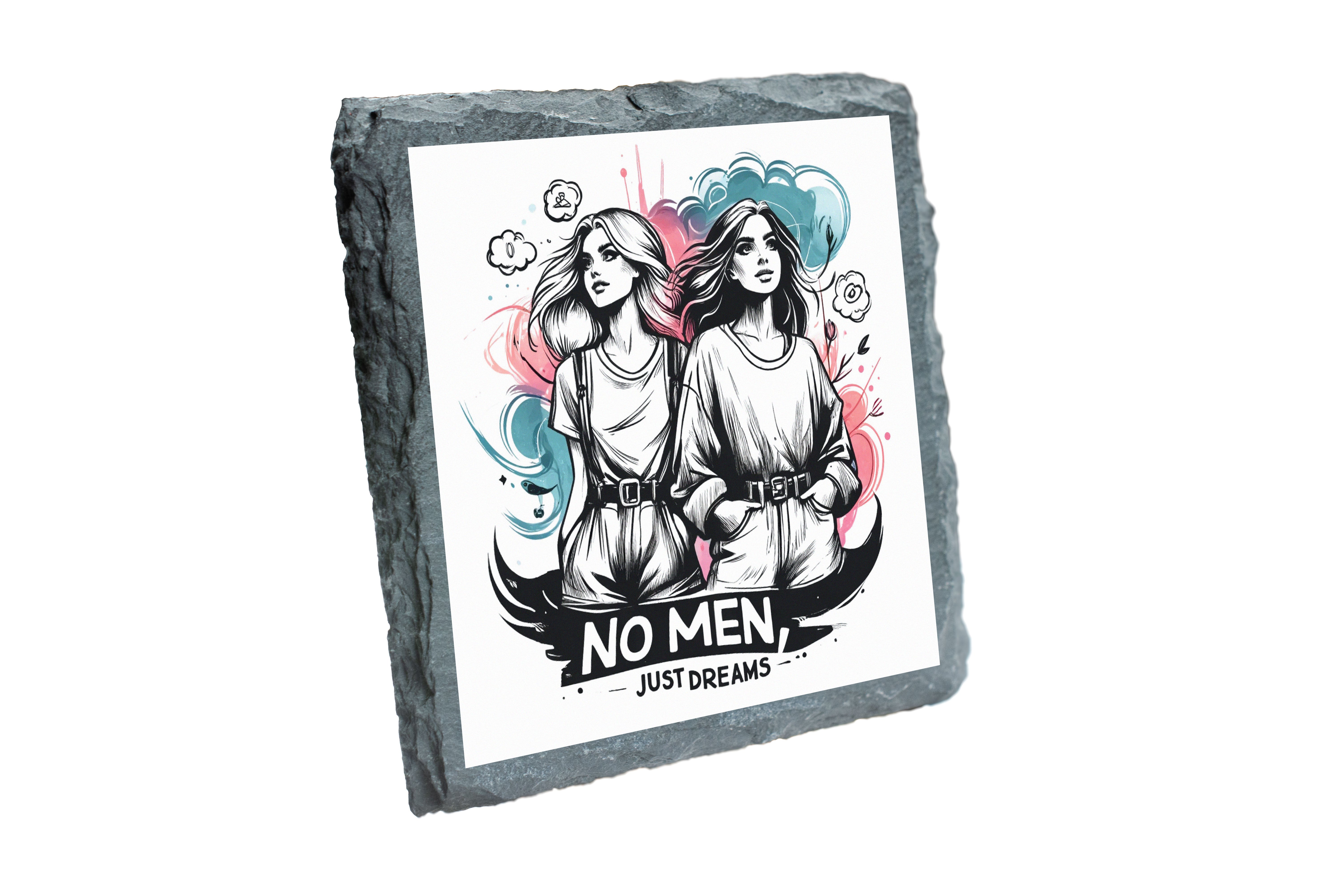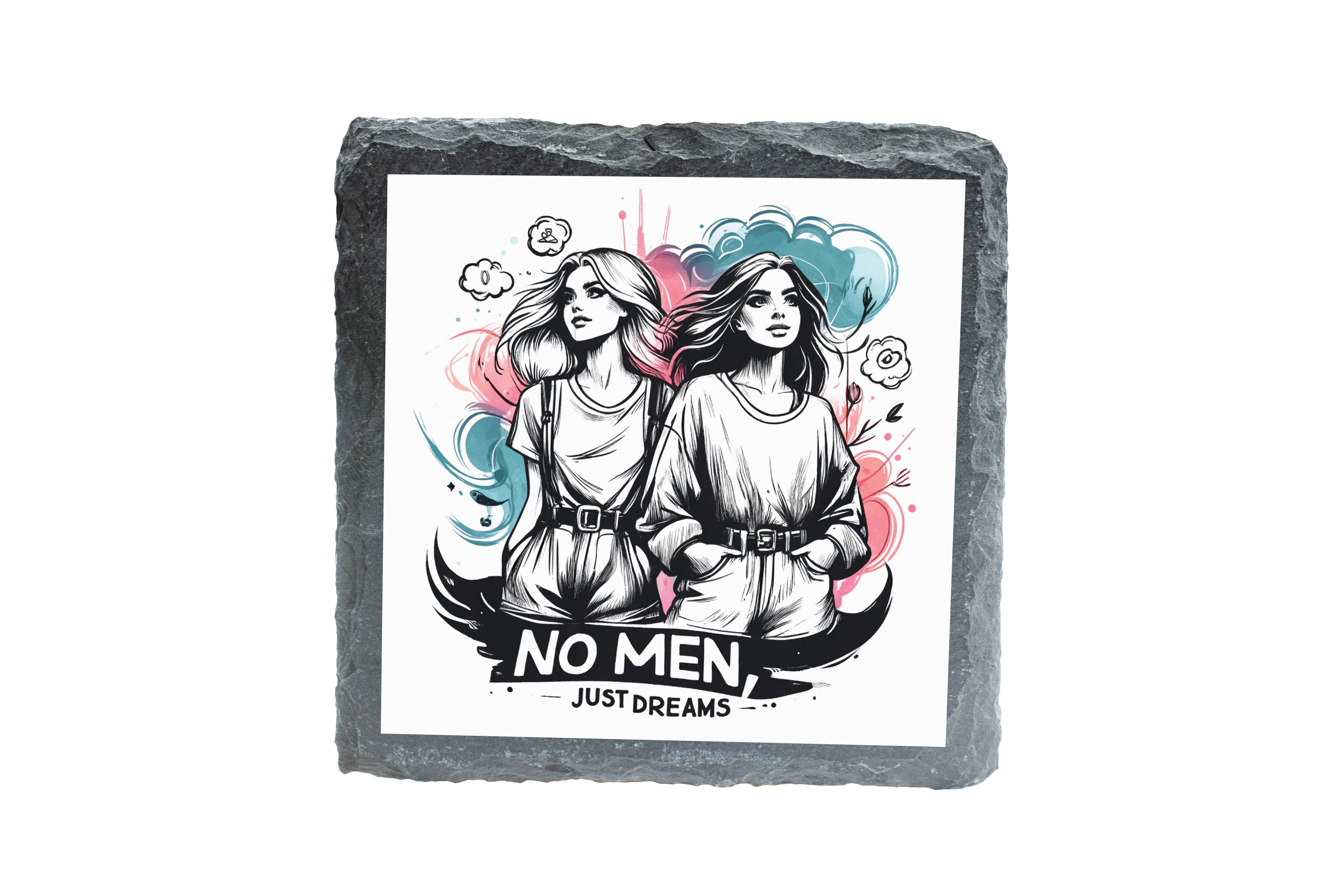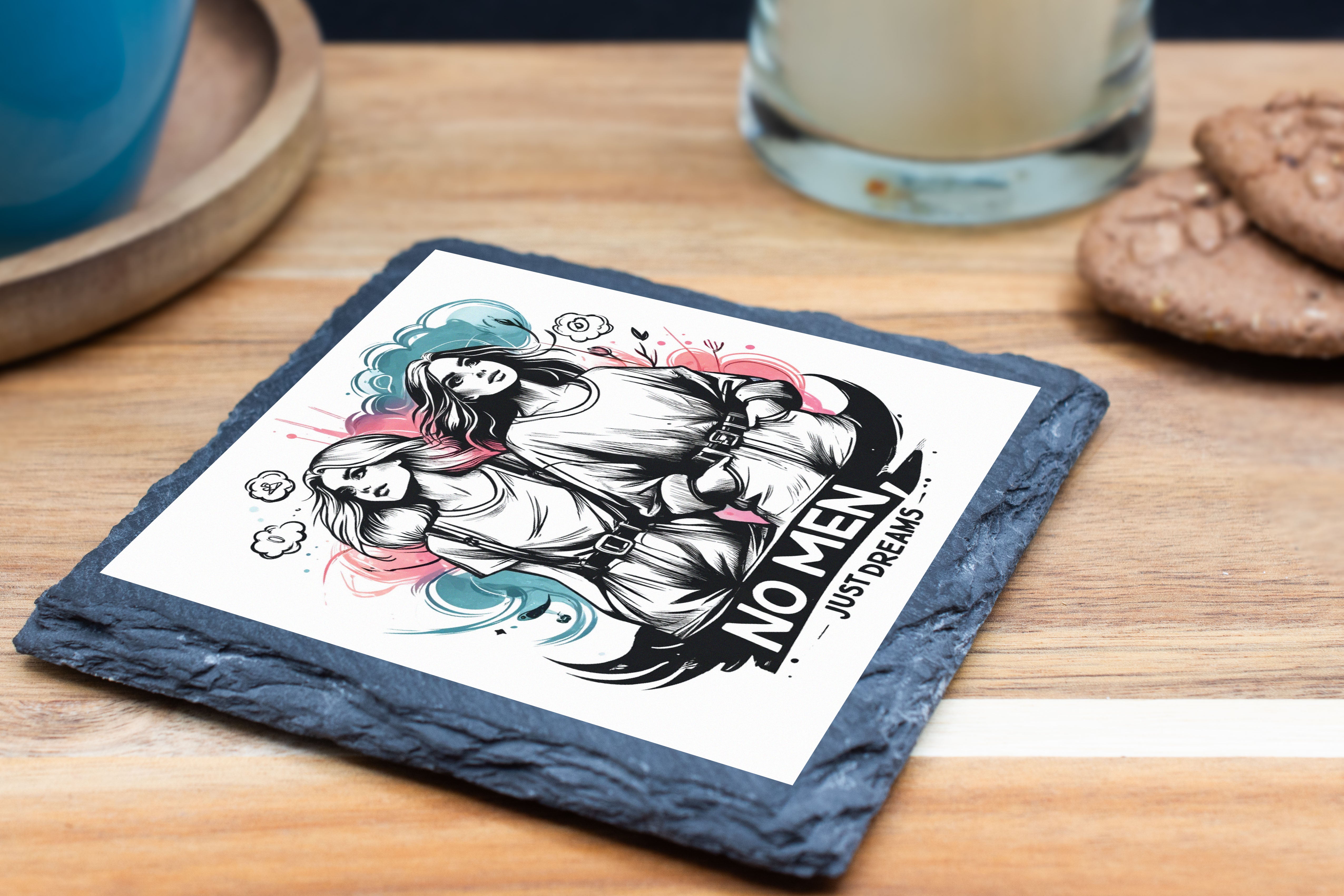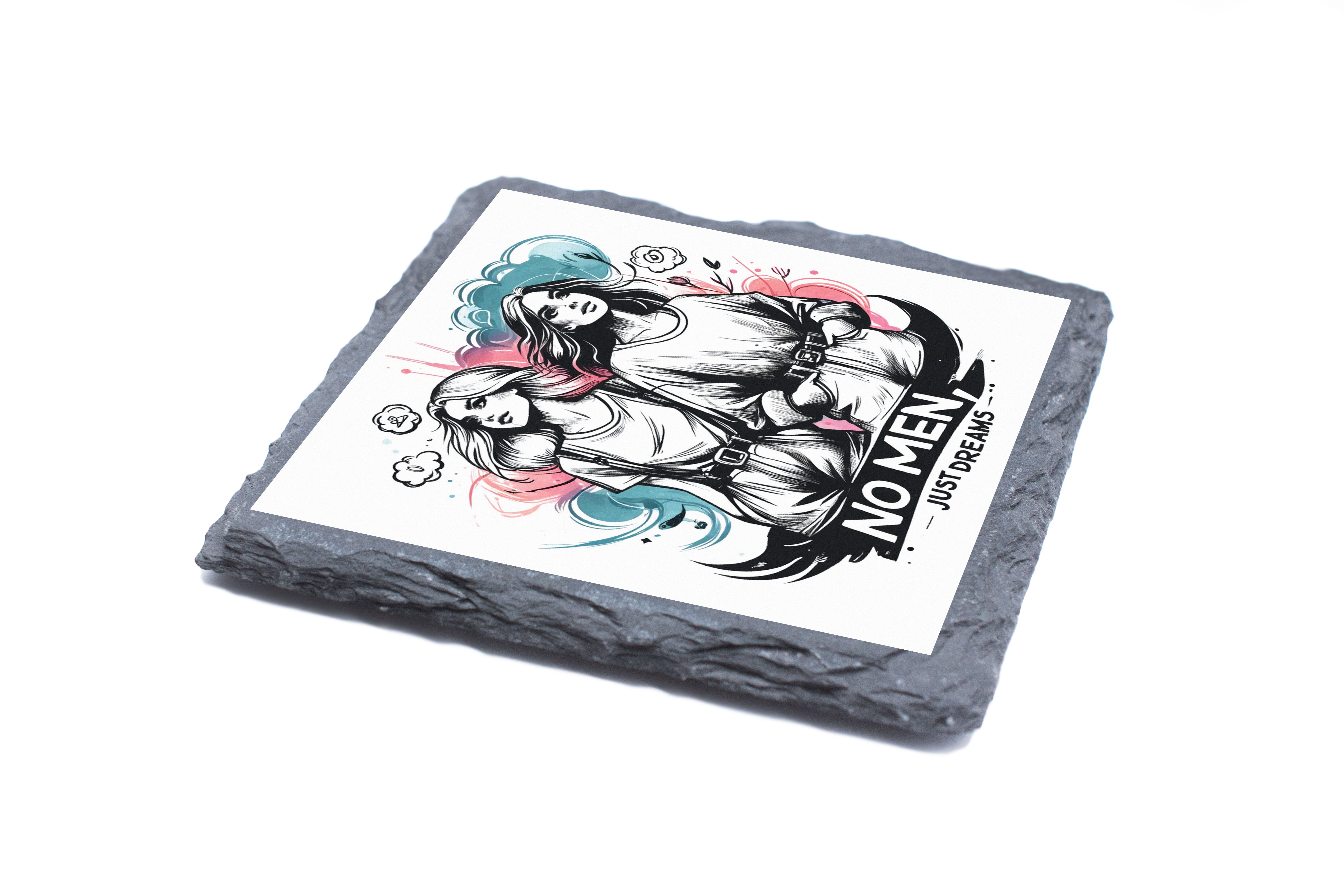 Artistic Slate Coaster Set: No Men, Just Dreams Design