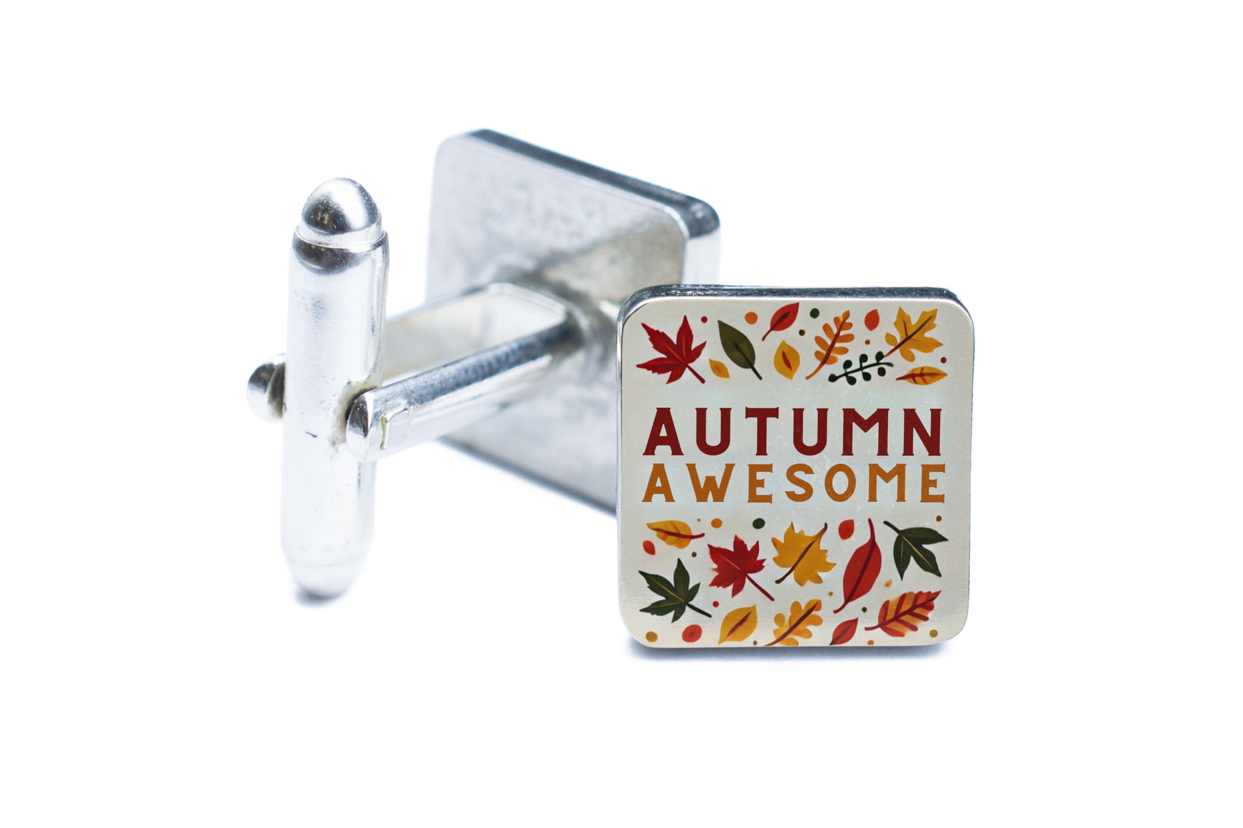 - Charming Autumn Design: Celebrate the beauty of fall with these cufflinks, featuring colorful autumn leaves and the phrase "Autumn Awesome."