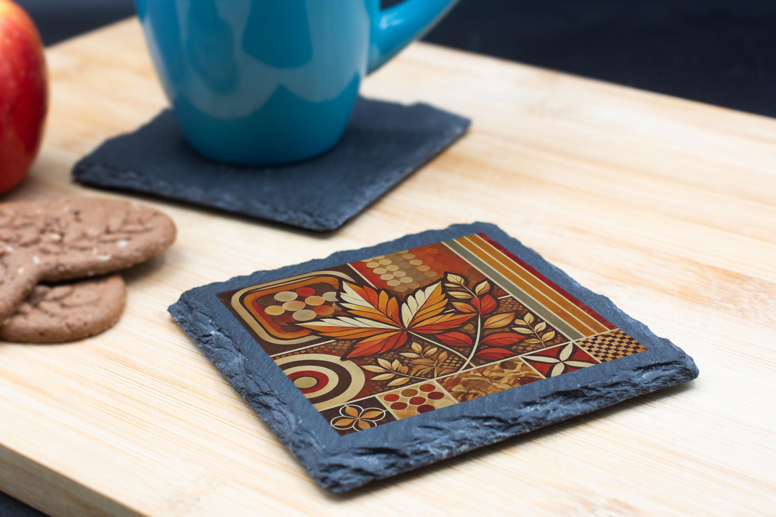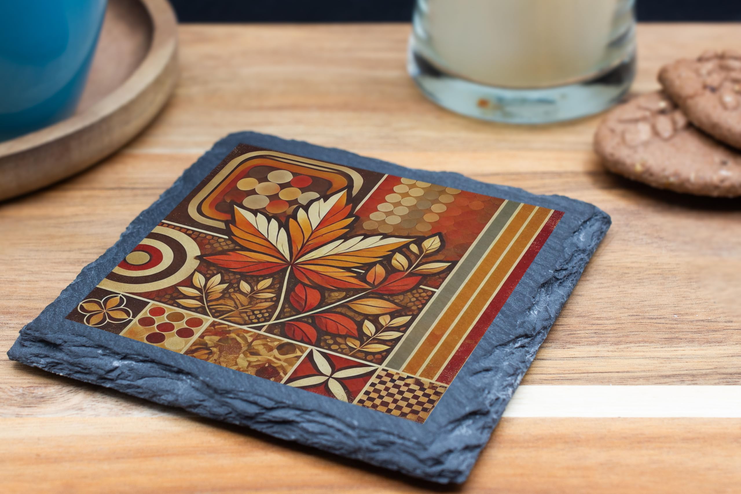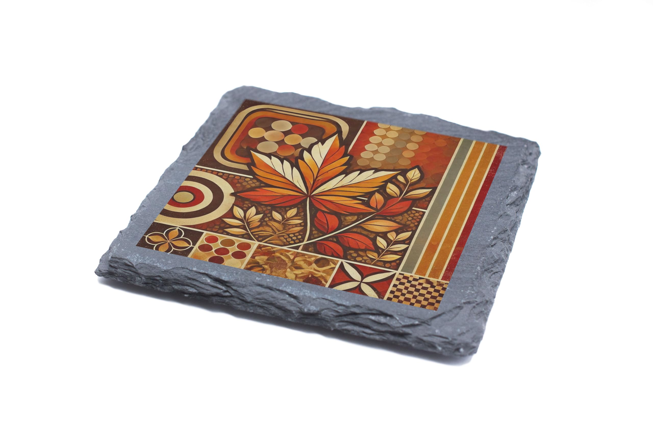 Enhance your home decor with the timeless charm of the Autumn Leaves Pattern Slate Coaster. Crafted from premium natural slate, this coaster combines functionality with artistic elegance. The retro-inspired autumn leaf design in warm earthy tones captures the spirit of the season, making it a perfect addition to your fall decor. Designed to protect your surfaces from scratches and spills, this durable coaster is not only practical but also a conversation starter. Its natural slate finish adds a rustic appeal that complements any style, whether in a cozy home setting, a chic cafe, or an elegant office. Ideal as a gift for art lovers, nature enthusiasts, or anyone who enjoys unique home accessories, this coaster embodies both beauty and practicality. Pair it with your favorite drinkware to bring warmth and style to your space year-round.
