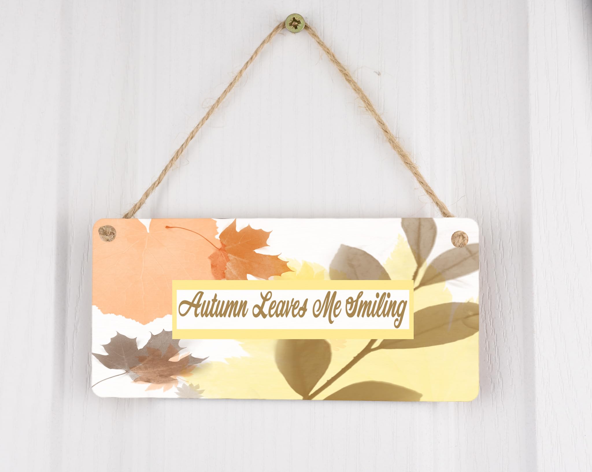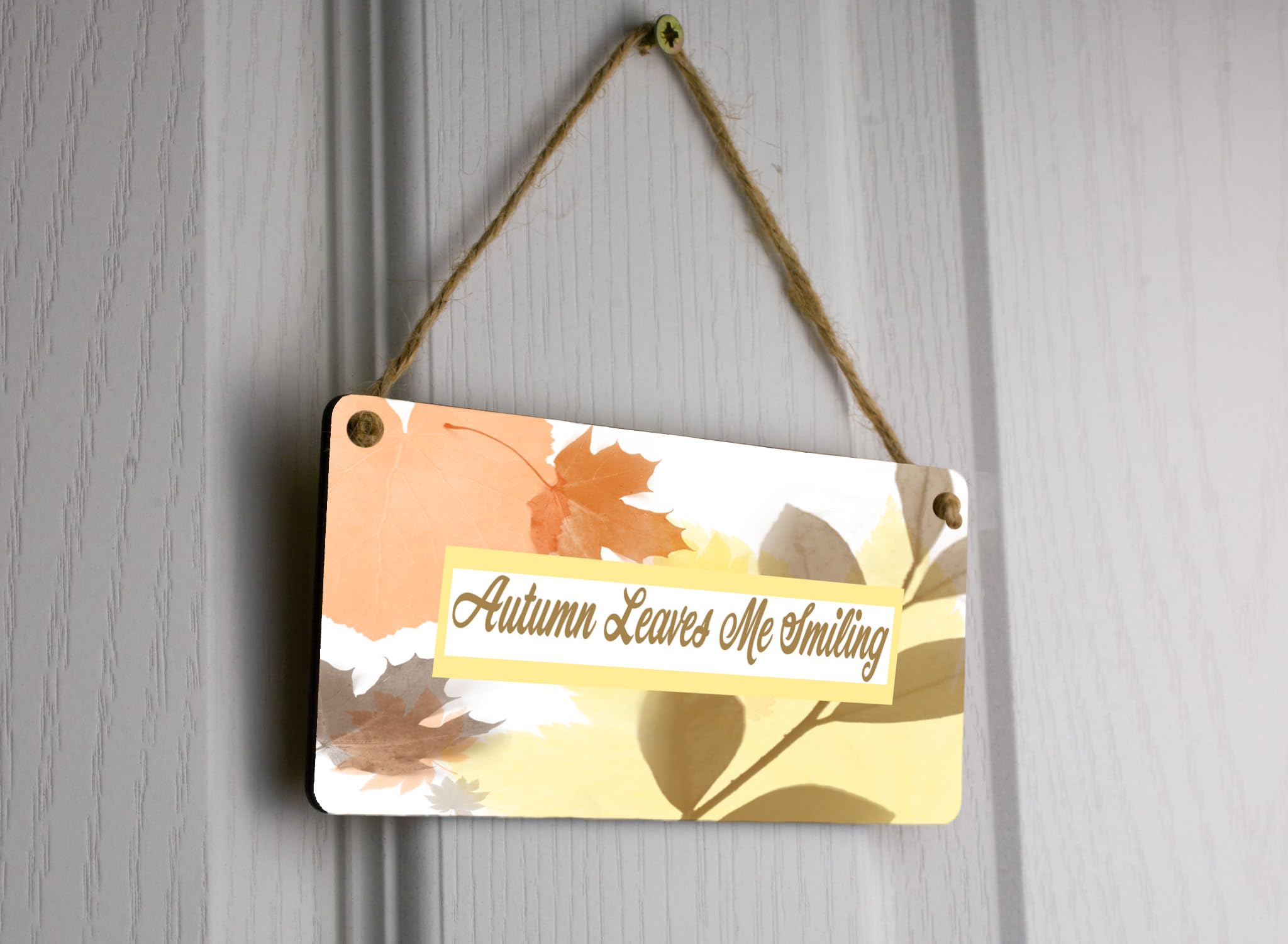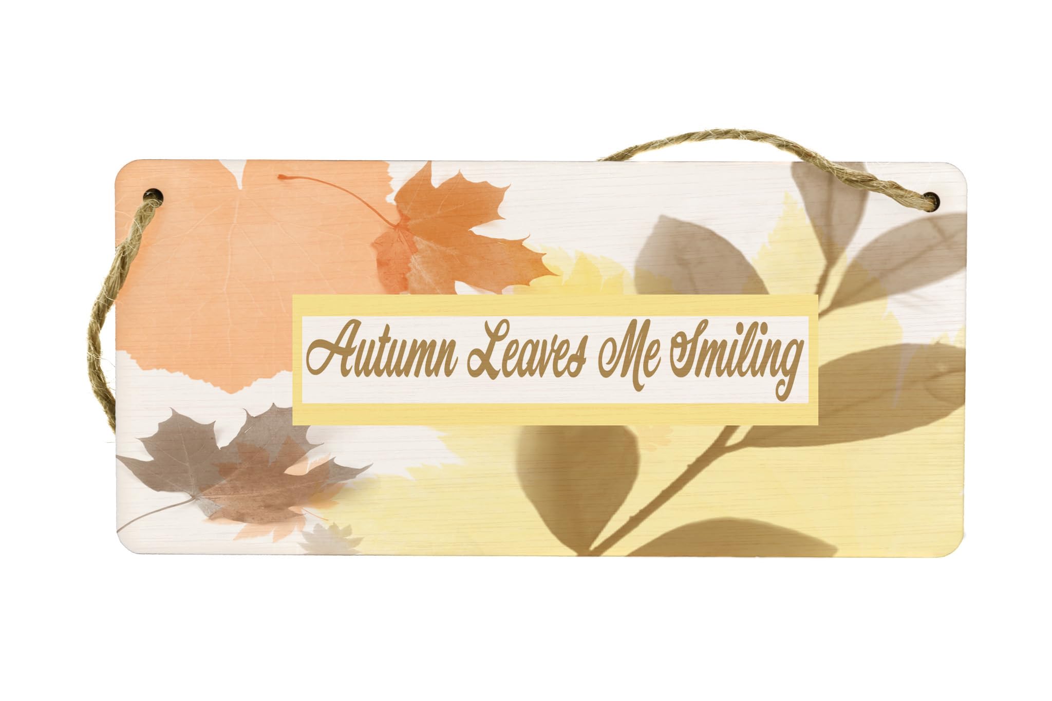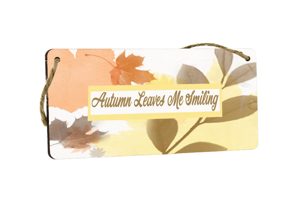 Autumn Leaves Smiling Plywood Hanging Sign - Full Colour Wooden Decorative Sign for Living Room Wall Art