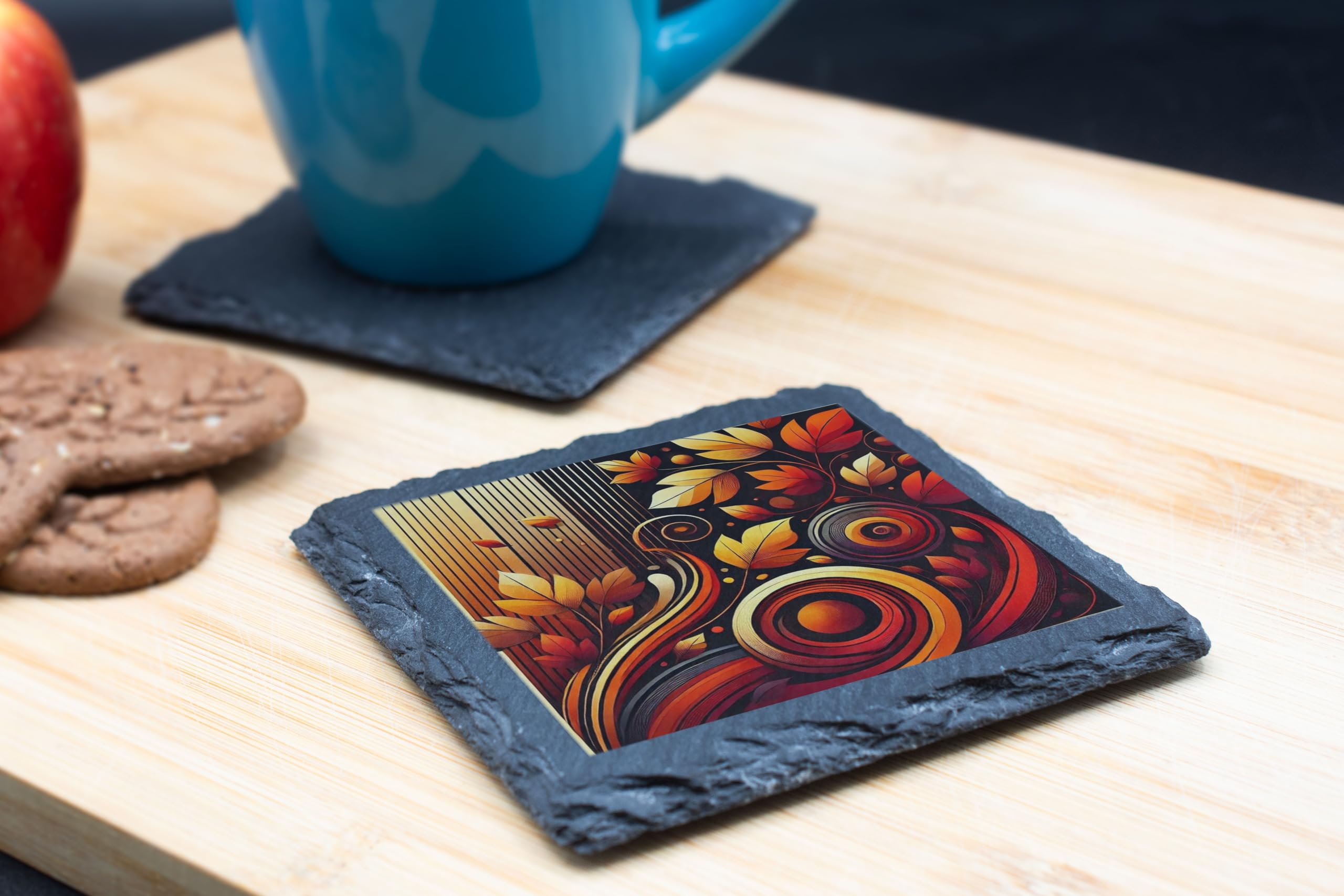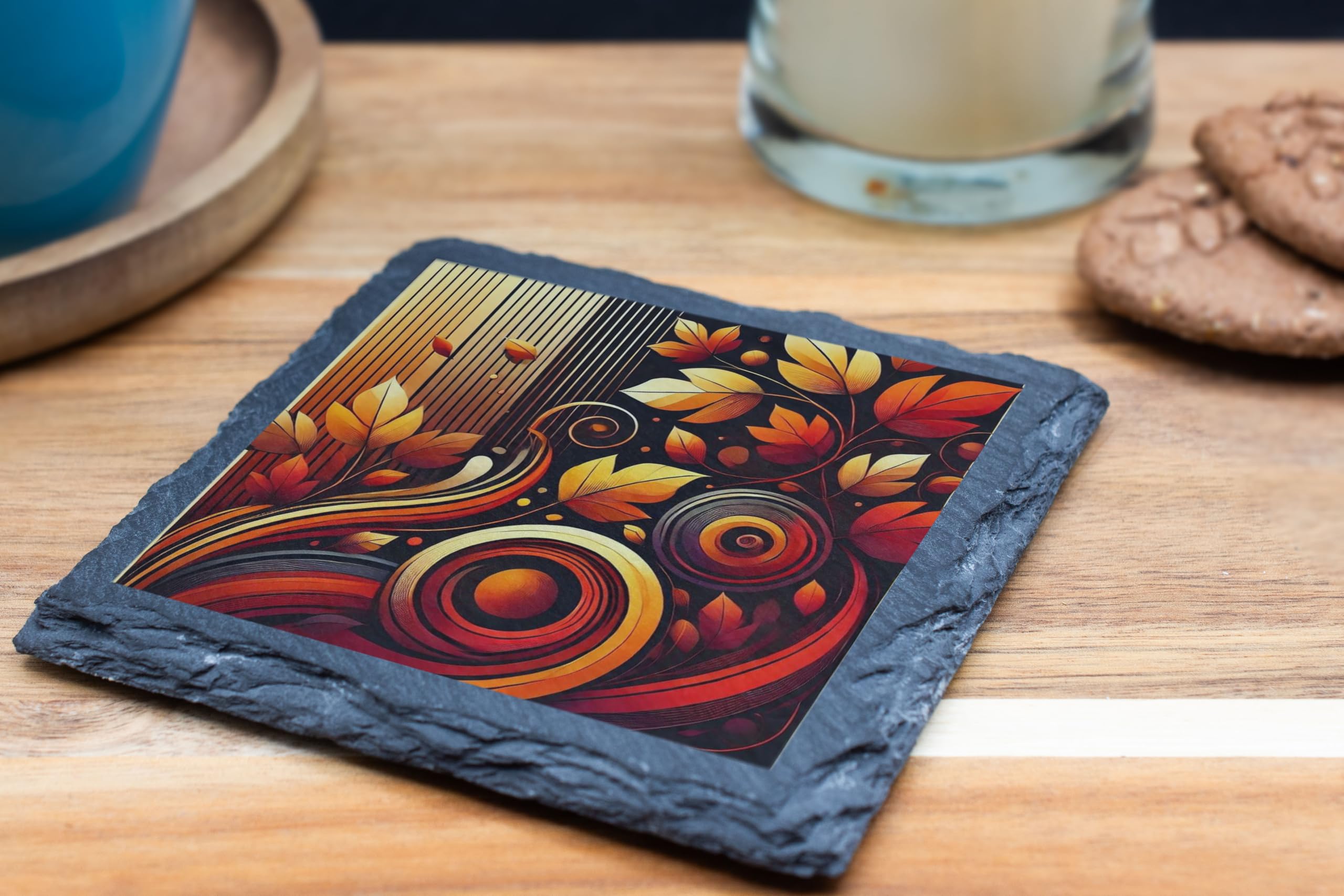 Add a touch of autumn elegance to your home with the Autumn Swirl Design Slate Coaster. This premium slate coaster features a stunning design inspired by fall foliage, with warm hues and intricate patterns that bring the beauty of the season to any setting. Crafted from high-quality natural slate, this coaster is both durable and stylish, offering non-slip and heat-resistant functionality to protect your surfaces from heat and moisture. Whether you're enjoying a hot pumpkin spice latte or a chilled apple cider, this coaster is a perfect seasonal companion. Looking for a unique fall-themed gift? The Autumn Swirl Design Slate Coaster is an ideal choice for housewarmings, holiday parties, or simply celebrating the coziness of the season. Elevate your autumn d?cor with this beautiful and functional piece.