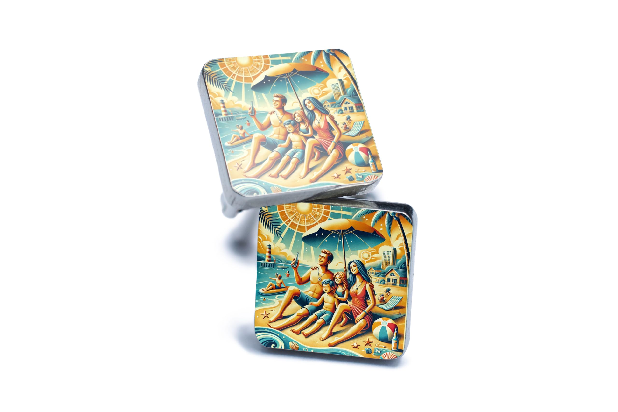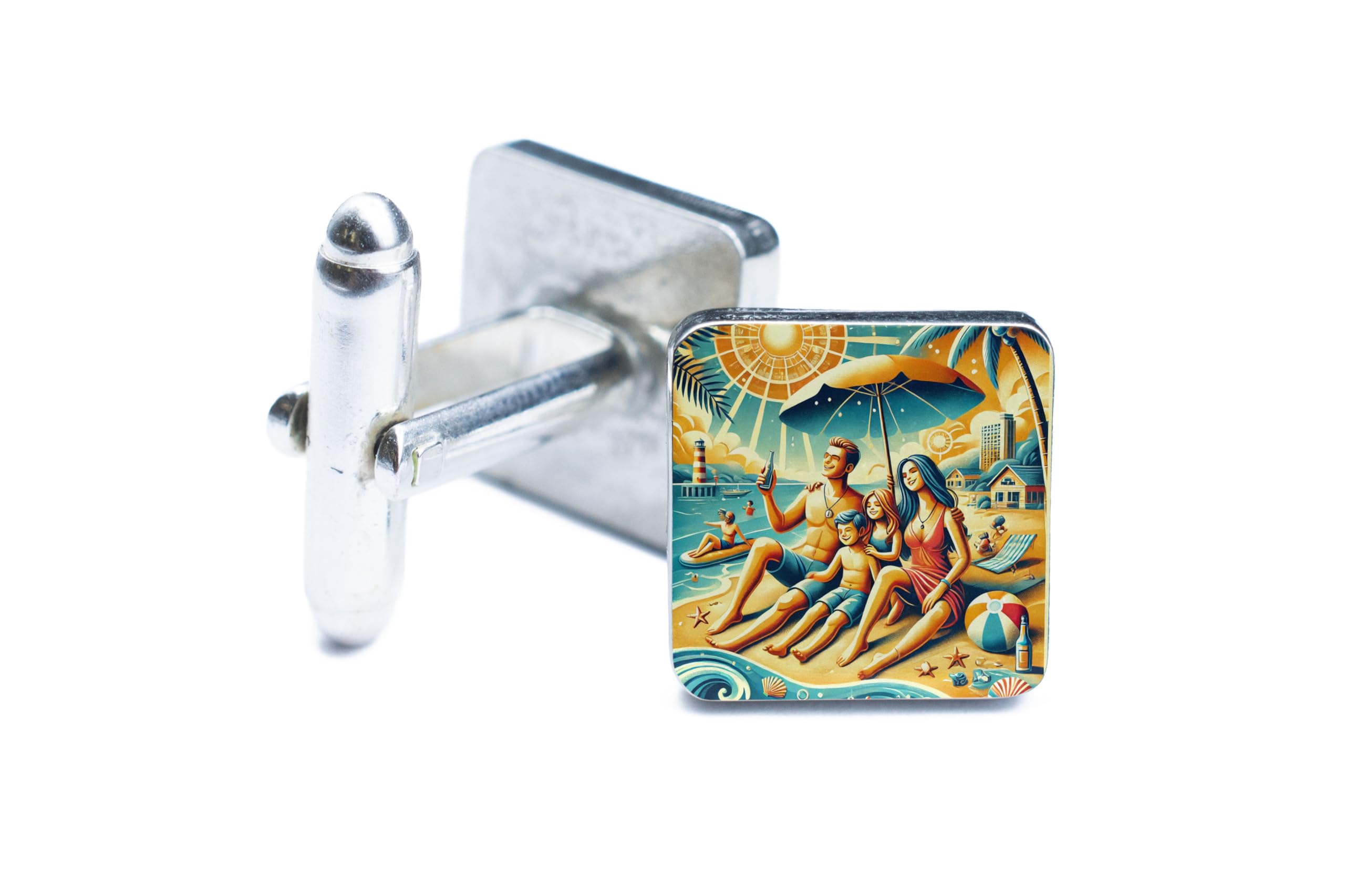 Bring the Joy of Summer to Every Occasion Celebrate the vibrant energy of family summer vacations with these Beach Dad Cufflinks. Featuring a detailed and colorful illustration of a dad enjoying a perfect day at the beach with his family, these cufflinks embody the essence of cherished moments in the sun. Premium Craftsmanship Crafted with precision, these cufflinks are made from high-quality materials to ensure durability and a polished finish. The vivid design pops, making them a conversation starter. A Heartfelt Gift for Dads Whether it?s a gift for Father's Day, a birthday, or just to say "thank you" for being an amazing dad, these cufflinks make a meaningful and unique present for beach-loving fathers. Versatile and Fun Pair these cufflinks with a formal outfit to add a touch of personality, or wear them with semi-casual attire for a playful yet polished look. Perfect for family gatherings, vacations, or any special event. Bring the sunshine and smiles of a beach day to every occasion with these Beach Dad Cufflinks!