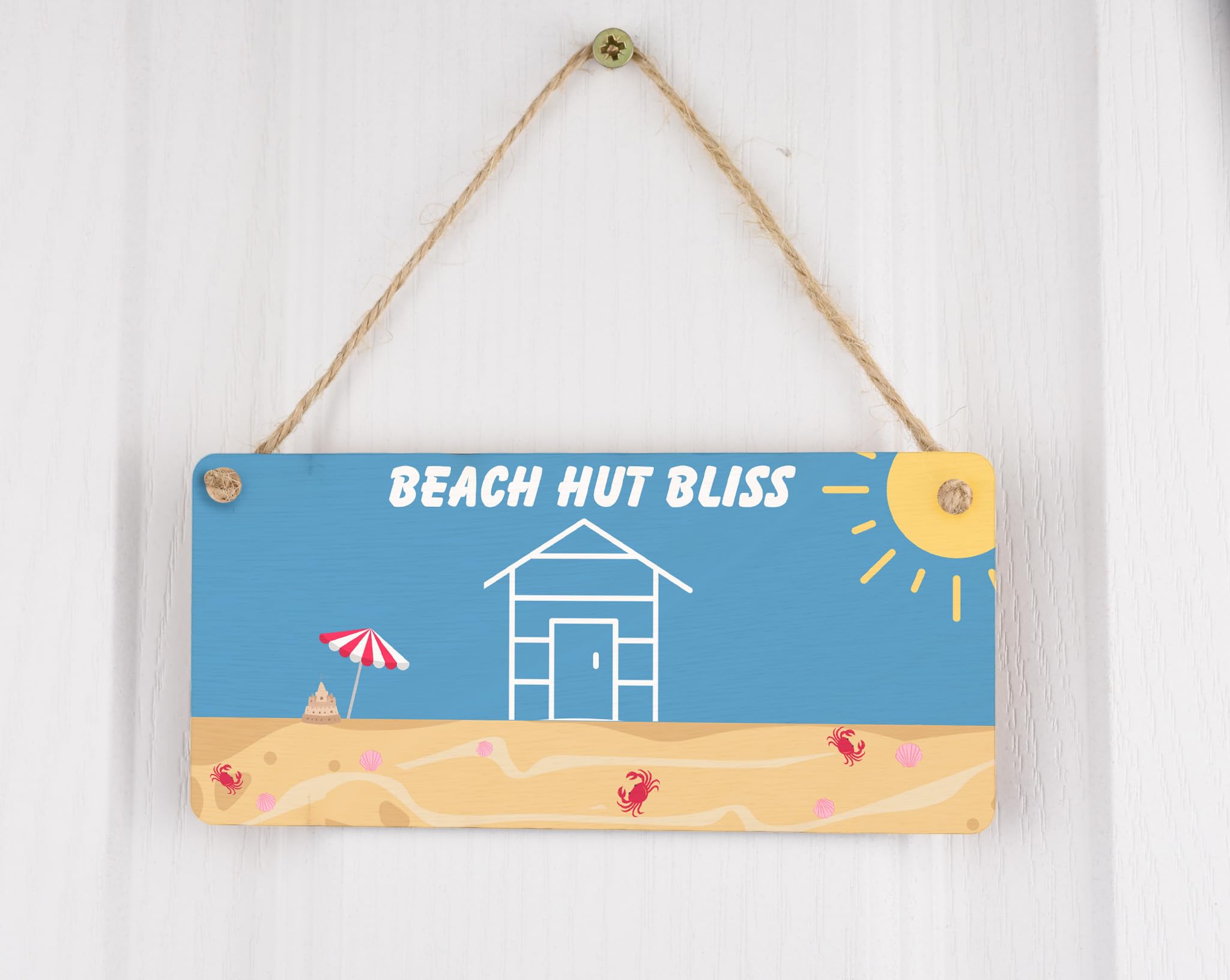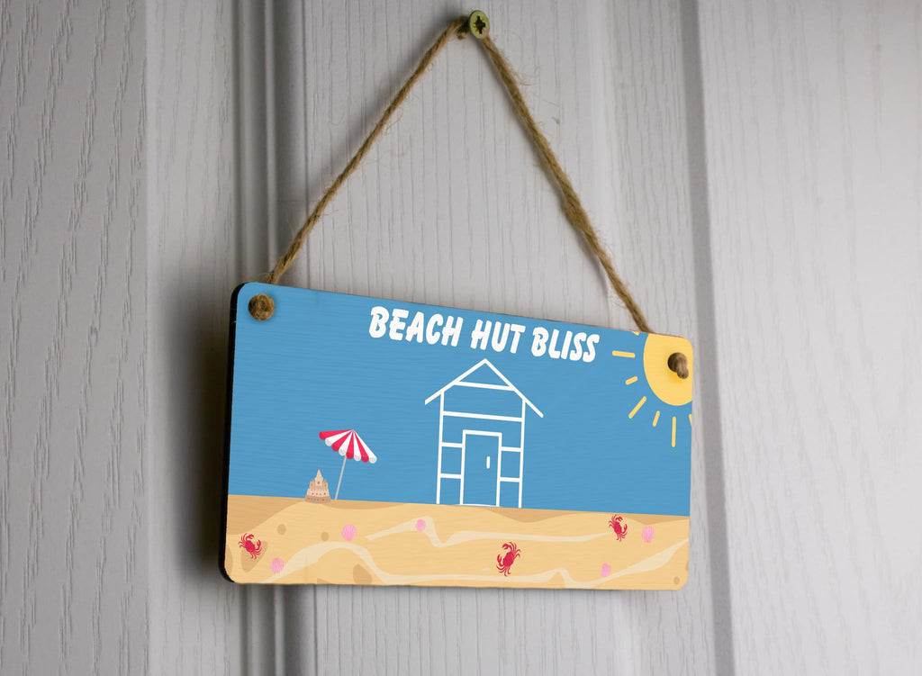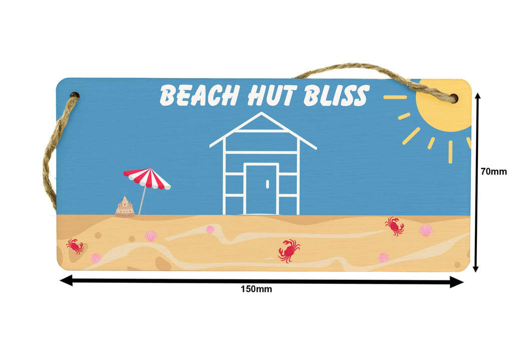 Introducing our Beach Hut Bliss Full Colour Plywood Hanging Wall Sign, the perfect addition to your summer holiday decor collection. Made from high-quality plywood, this hanging sign is designed to add a touch of beach hut charm to any wall. Whether you're decorating your home, beach house, or office, this beach hut sign will transport you to the relaxing vibes of a summer holiday. With its full-colour design, this wall sign features vibrant hues that instantly brighten up your space. The sign reads 'Beach Hut Bliss' in bold and stylish fonts, making it a delightful focal point in any room. Get ready to soak up the sun and enjoy the vacation vibes with this beach hut decoration. Ideal for those who love the beach, this sign is a great reminder of sun-soaked days, sandcastles, and coastal living. Embrace the spirit of summer with our Beach Hut Bliss Full Colour Plywood Hanging Wall Sign.