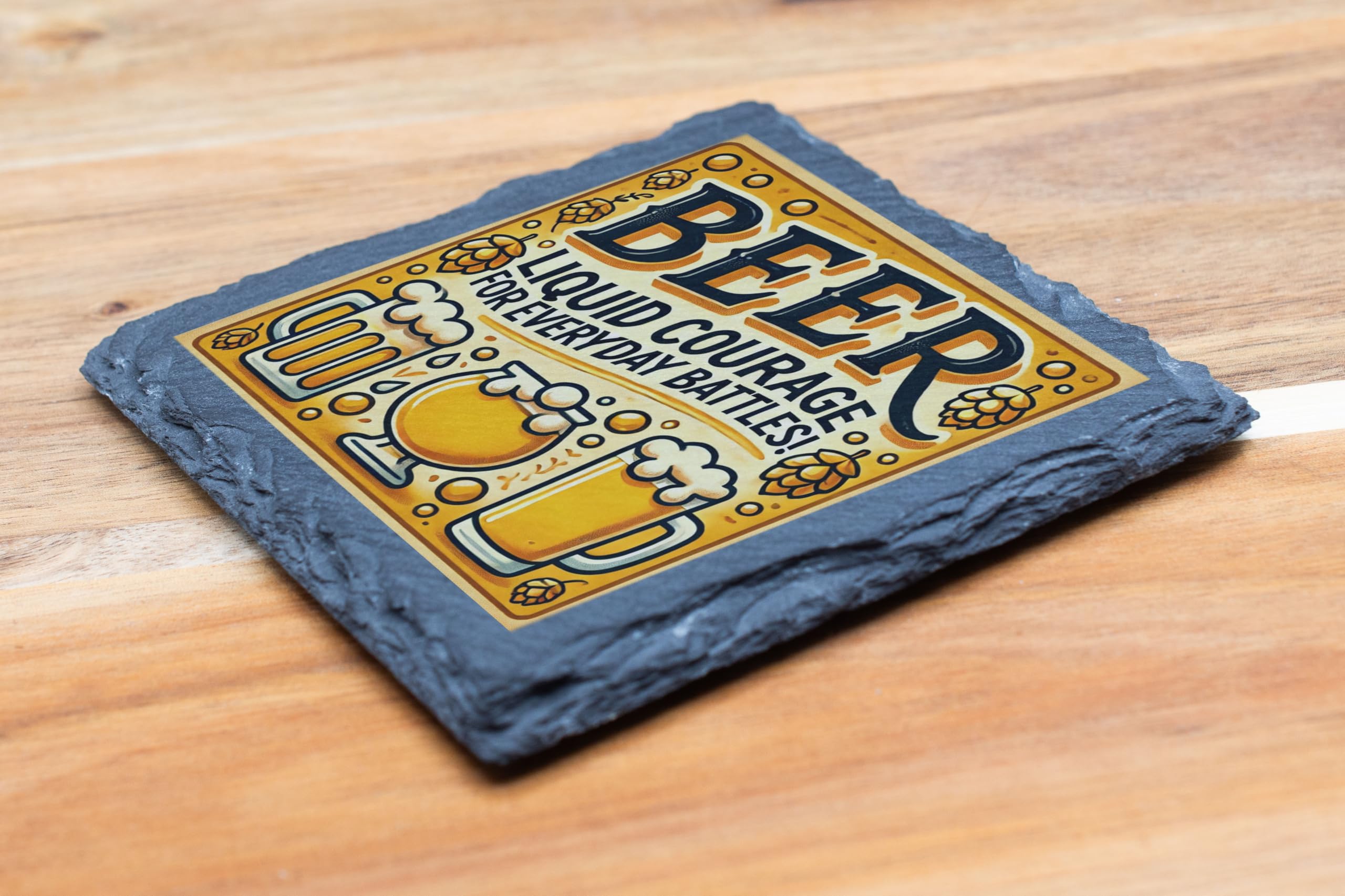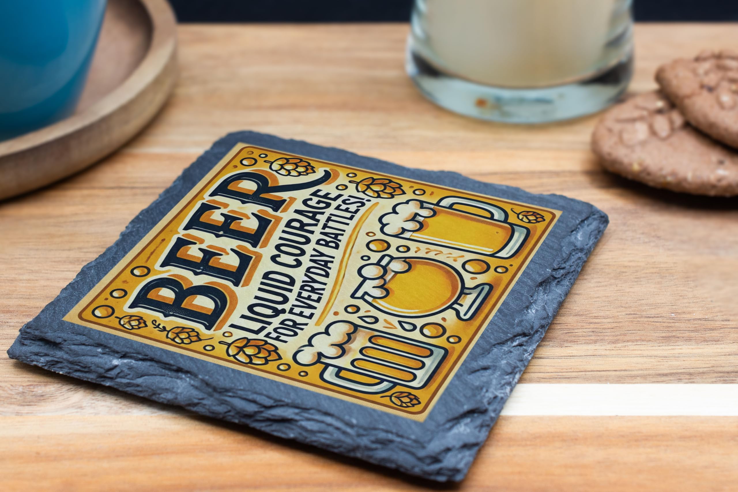 Beer Slate Coaster ? Liquid Courage for Everyday Battles! (slco-kf25-battleshg)