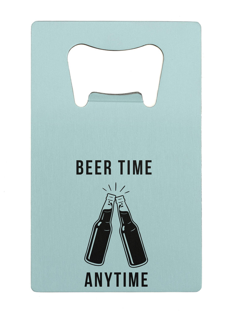 - Novelty bottle opener with 'beer time anytime' design