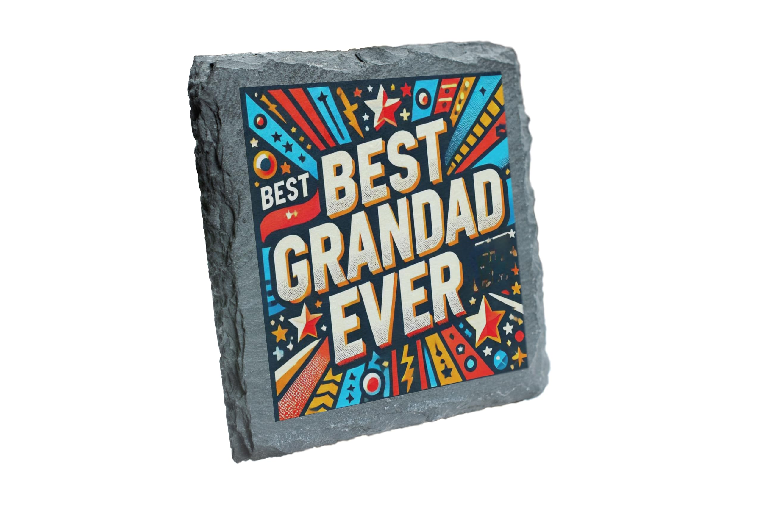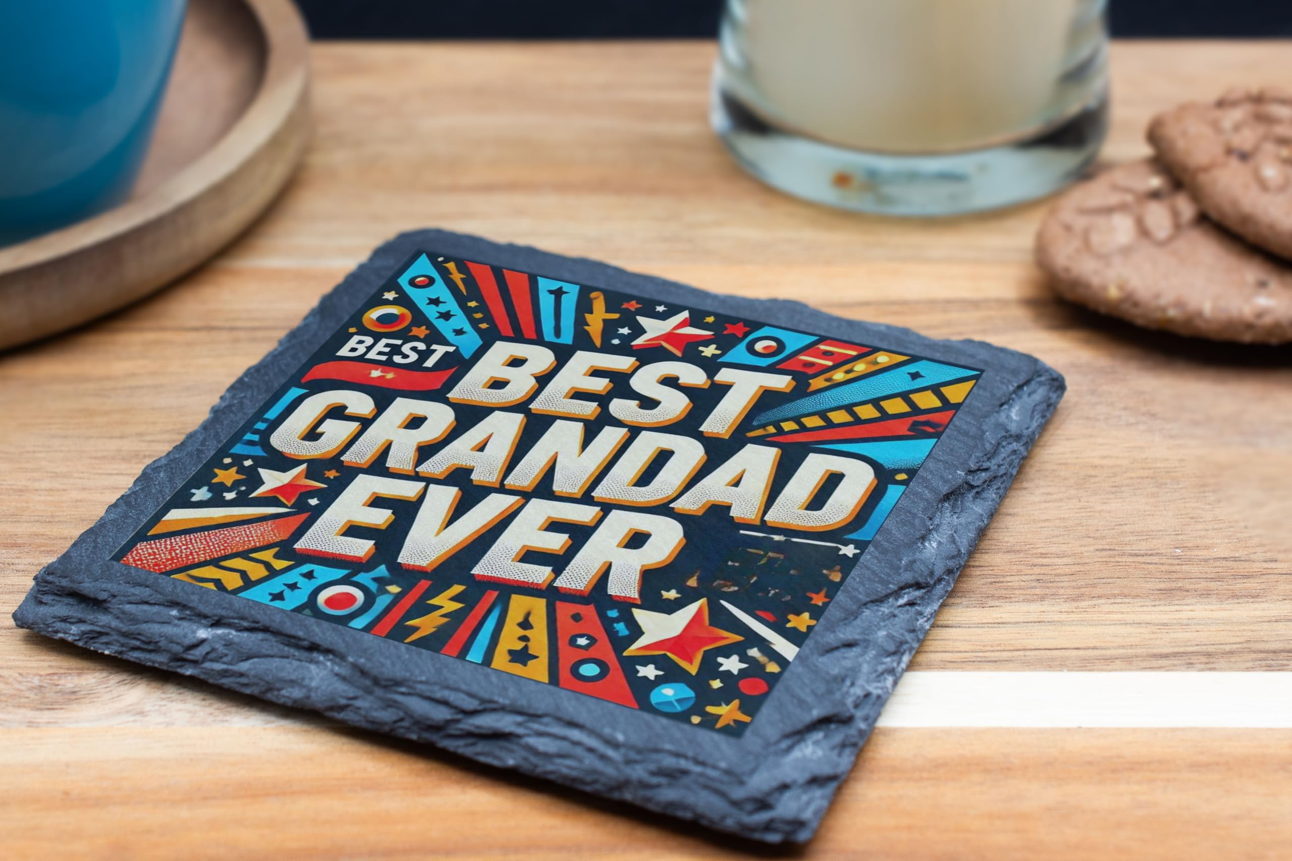 Celebrate the amazing bond you share with your grandfather with this "Best Grandad Ever" Slate Coaster. Designed with vibrant colors, bold lettering, and an energetic layout, this coaster is as lively as your cherished grandad's personality. Crafted from premium-quality natural slate, this coaster is not only visually stunning but also functional?perfect for safeguarding surfaces from drink spills and heat. Its sturdy construction ensures it will stand the test of time, just like the fond memories you share with your loved one. Whether it?s a birthday, Father?s Day, or a casual day to show gratitude, this coaster makes an unforgettable gift for the grandad who means the world to you. Pair it with his favorite drink or snacks for the ultimate thoughtful surprise.