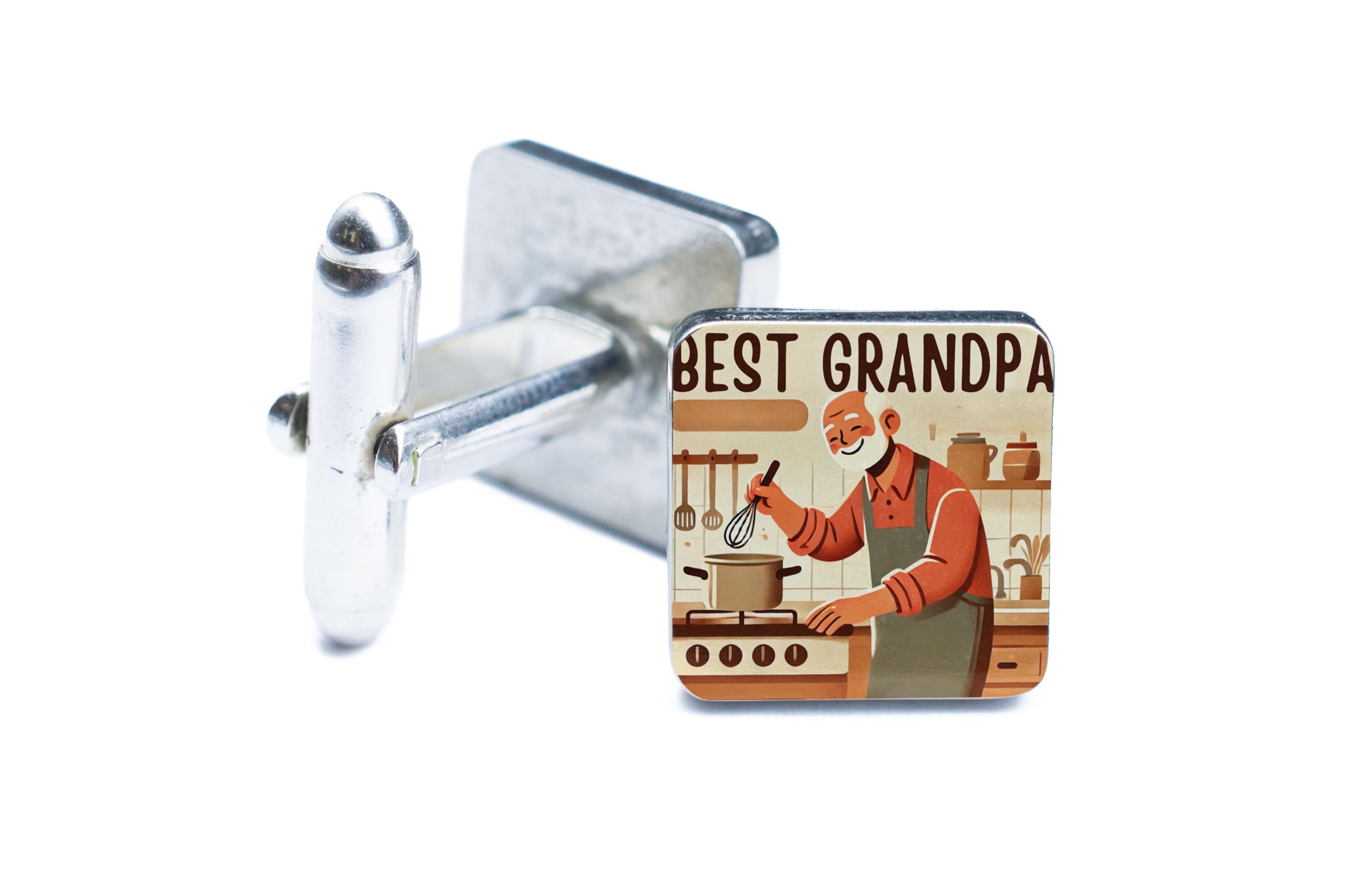 Celebrate your grandpa?s love for cooking and family with these "Best Grandpa" cufflinks. Featuring a warm and playful illustration of a grandpa joyfully cooking in the kitchen, these cufflinks capture the essence of love, food, and cherished family moments. The polished silver finish adds a sophisticated touch, making these cufflinks a versatile accessory for any formal or semi-formal occasion. Crafted with attention to detail and quality, these cufflinks are designed to combine sentimentality with durability. Whether your grandpa wears them for a family dinner, a special celebration, or just to show off his love for his grandkids, they are a perfect addition to his wardrobe. Packaged in a stylish gift box, these cufflinks are ready to be presented as a meaningful gift for Father?s Day, birthdays, or any special occasion. Show your grandpa how much he means to you with these thoughtful and elegant cufflinks!