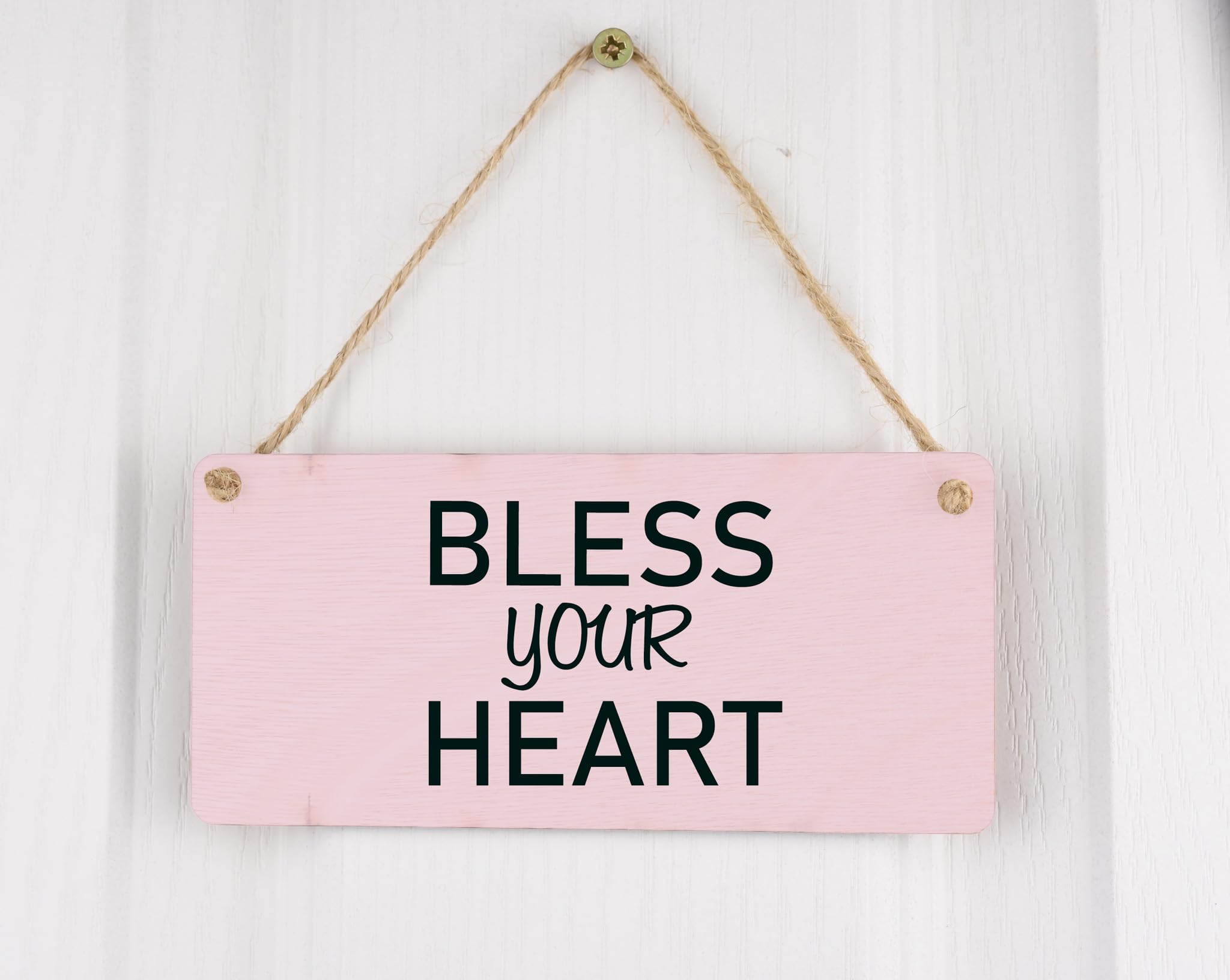Add a touch of southern charm to your home with this delightful Bless Your Heart Plywood Sign. Made from high-quality plywood, this small base sign features an intricate design that reads 'Bless Your Heart.' It is the perfect heartwarming gift idea for any home, especially for mums and nans. Hang it from the attached cord in your kitchen, living room, or any other area that needs a little extra warmth and love. This sign is not only a thoughtful gift for your loved ones but also a beautiful addition to your own home d?cor. Bring a smile to someone's face with this heartfelt and meaningful gift today!