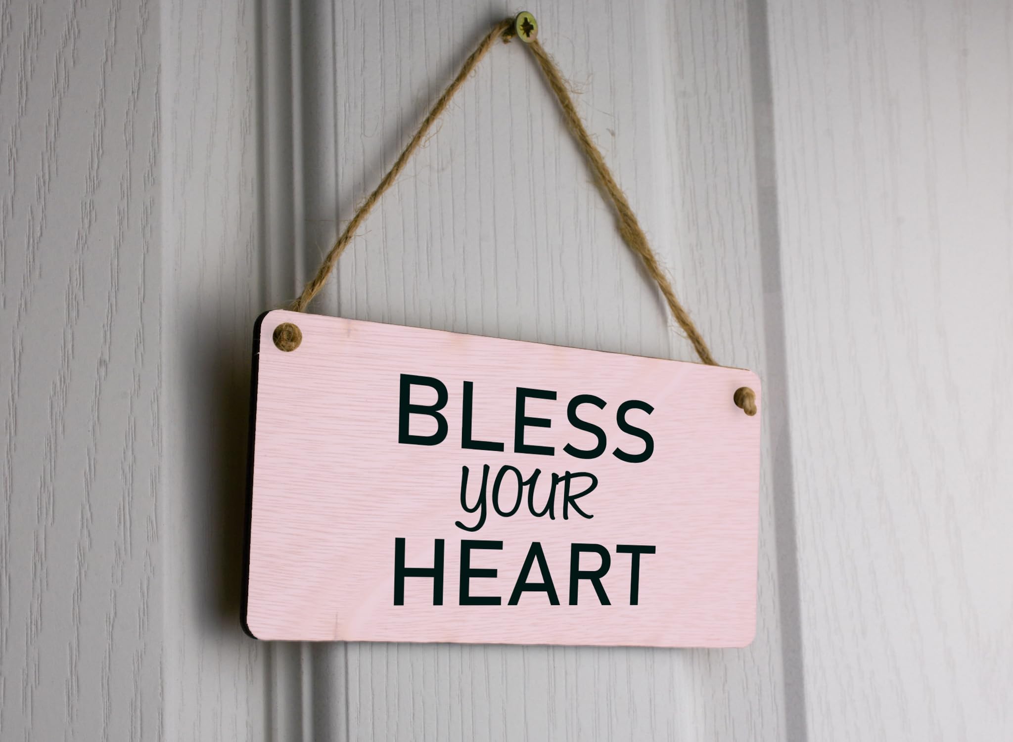 - Intricate design reads 'Bless Your Heart' - a heartwarming message