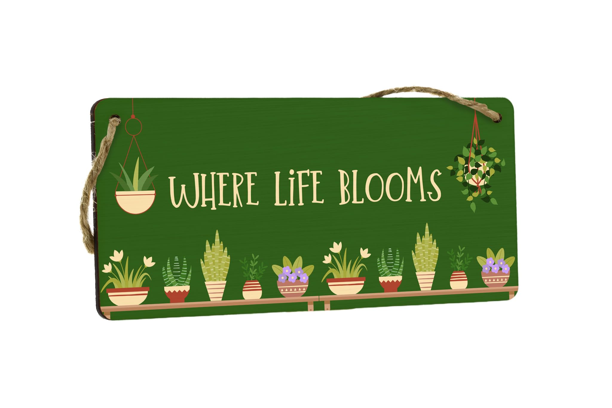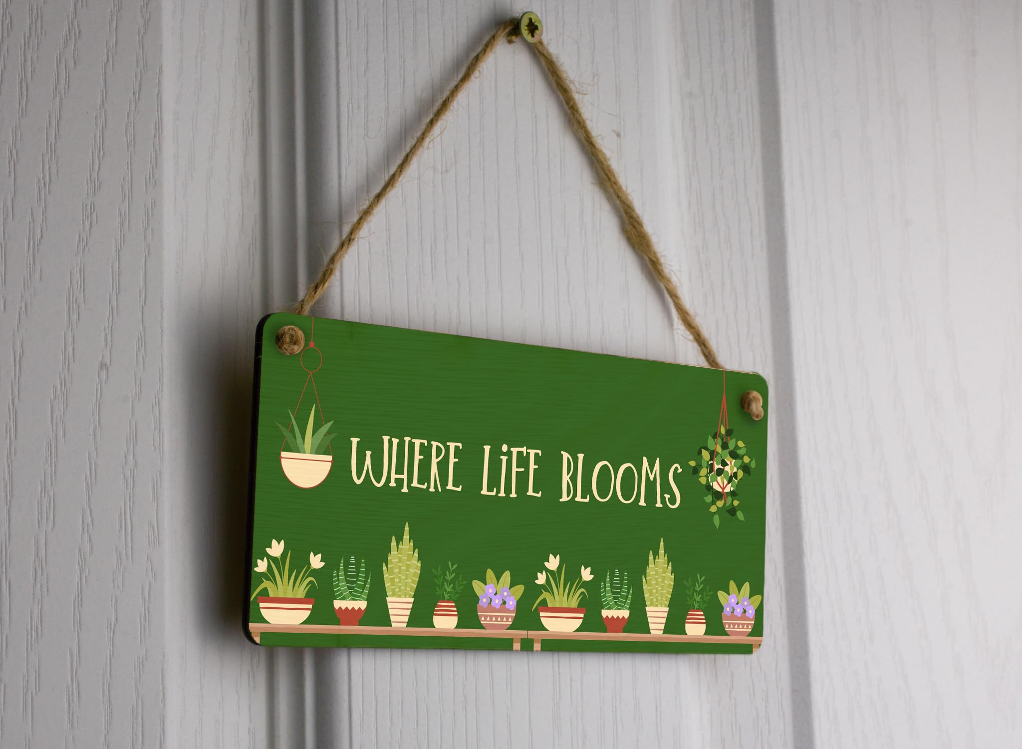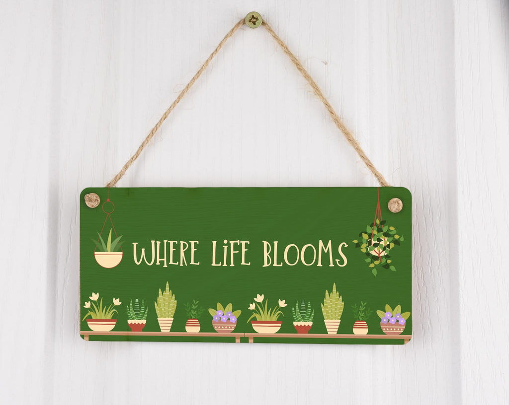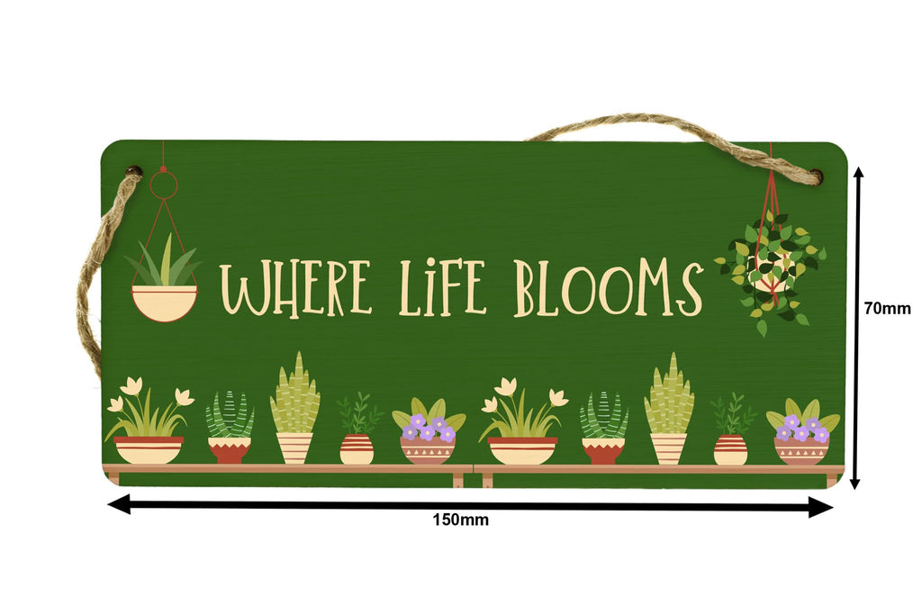 Introducing the Blooming Botanicals Full Colour Hanging Plywood Garden Sign - Where Life Blooms! This exquisite hanging sign is the perfect addition to any gardener's paradise. Made from high-quality plywood, this sign is designed to last and withstand outdoor elements. The vibrant full-colour design instantly catches the eye and adds a pop of colour to any garden or outdoor space. It's the perfect size to hang on a patio, fence, or garden wall. The sign reads 'Where Life Blooms', reminding you to embrace the beauty of nature. This versatile sign is not only a beautiful piece of plant decor but also serves as a thoughtful gift for plant lovers. Surprise a loved one with this unique sign as a birthday, housewarming, or anytime gift. Transform your home and garden into a haven of plants and greenery with this stunning Blooming Botanicals hanging sign.