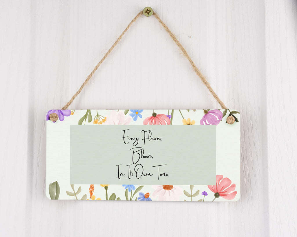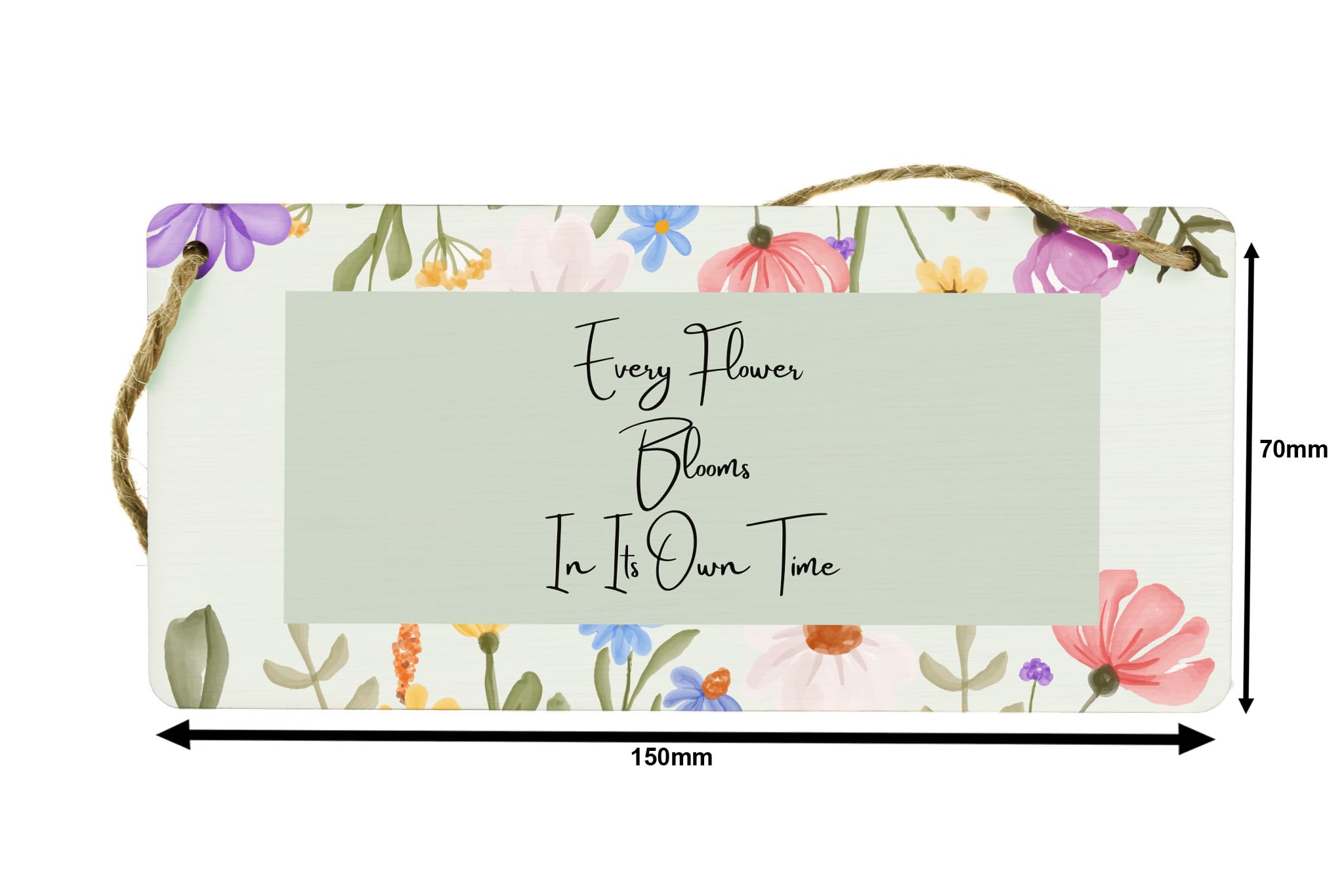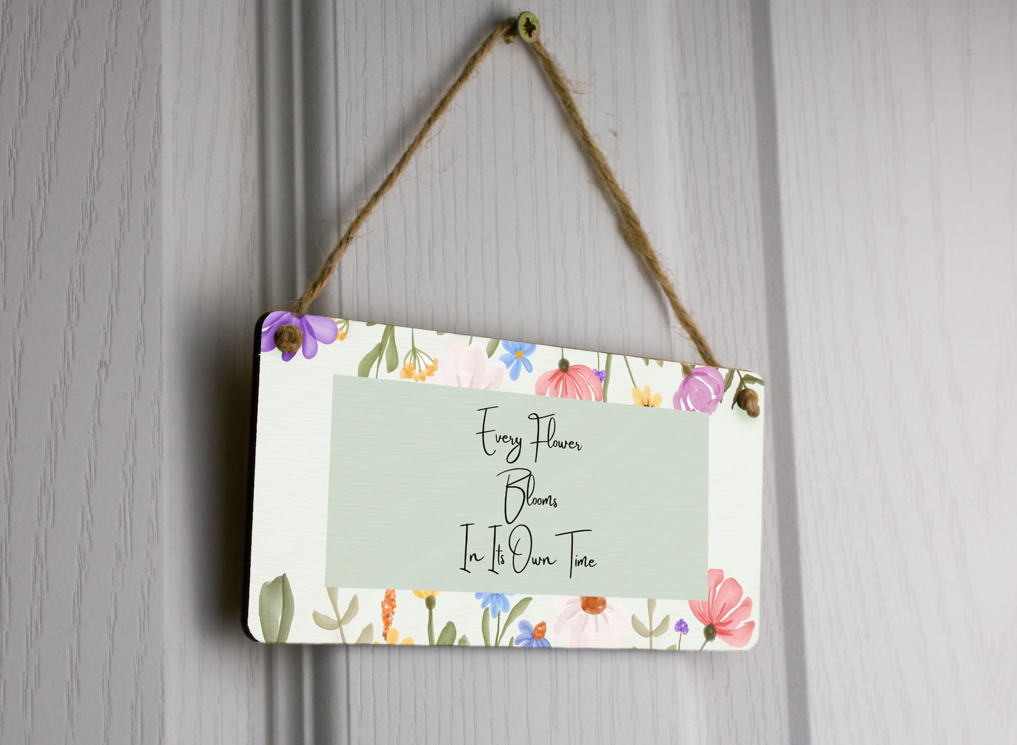 Introducing the Blossoming Inspiration: Colorful Floral Plywood Hanging Sign, a perfect motivational gift for students. Made from high-quality plywood, this hanging sign features a beautiful and vibrant floral design that will instantly brighten up any room. The sign is laser-cut with precision to ensure crisp edges and a smooth finish. it is the ideal size for hanging on walls, doors, or windows. The inspirational quote 'Every flower blooms in its own time' is carefully engraved onto the sign, serving as a constant reminder to students that they should embrace their own journey and not compare themselves to others. This versatile sign can be gifted to students of all ages, whether they are starting a new chapter in their lives, preparing for exams, or in need of a little motivation. It is also a wonderful decor piece that can be displayed in a dorm room, classroom, or office. Don't miss out on this unique and thoughtful student gift that combines beauty and inspiration!