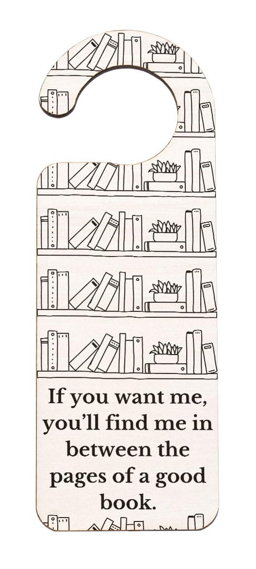 Transform your door into a Bookworm Haven with our handmade laser cut plywood door sign. This delightful piece reads 'If you want me, you'll find me between the pages of a good book', perfect for any book lover's reading nook. Add a touch of literary charm to your space with this full colour door hanger, featuring a lovely personal library theme design. Create your own quiet zone with this literary escape, where you can unwind surrounded by the coziness of your book shelves and succulent plants. Ideal for any bibliophile, this 'Do Not Disturb' sign will remind others that you are in your relaxing space, enjoying your very own Bookworm Haven. Make your corner of the world a sanctuary for reading with this unique and charming piece of literary decor.