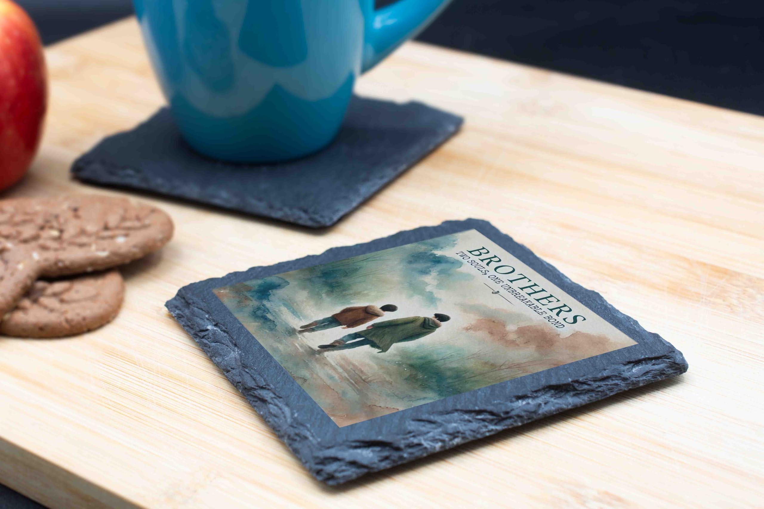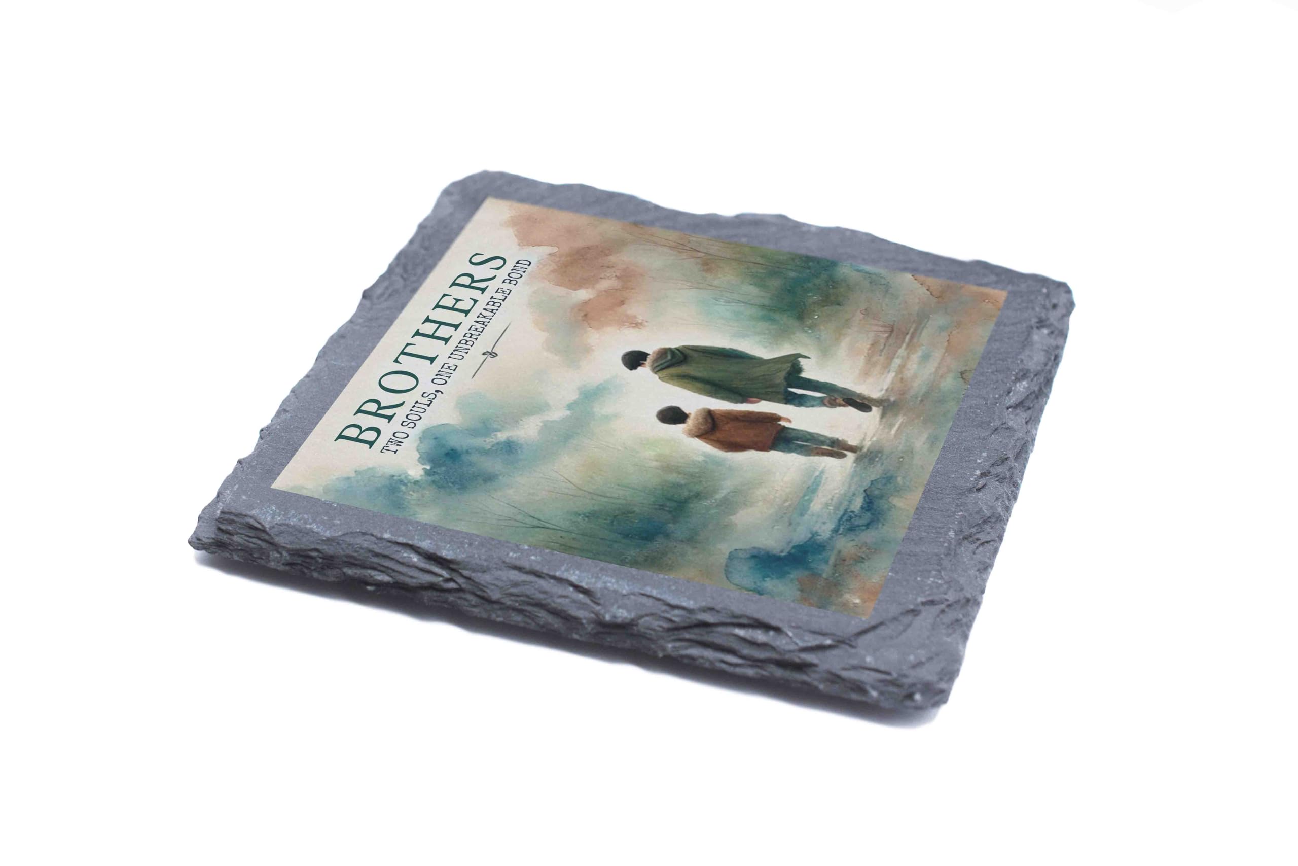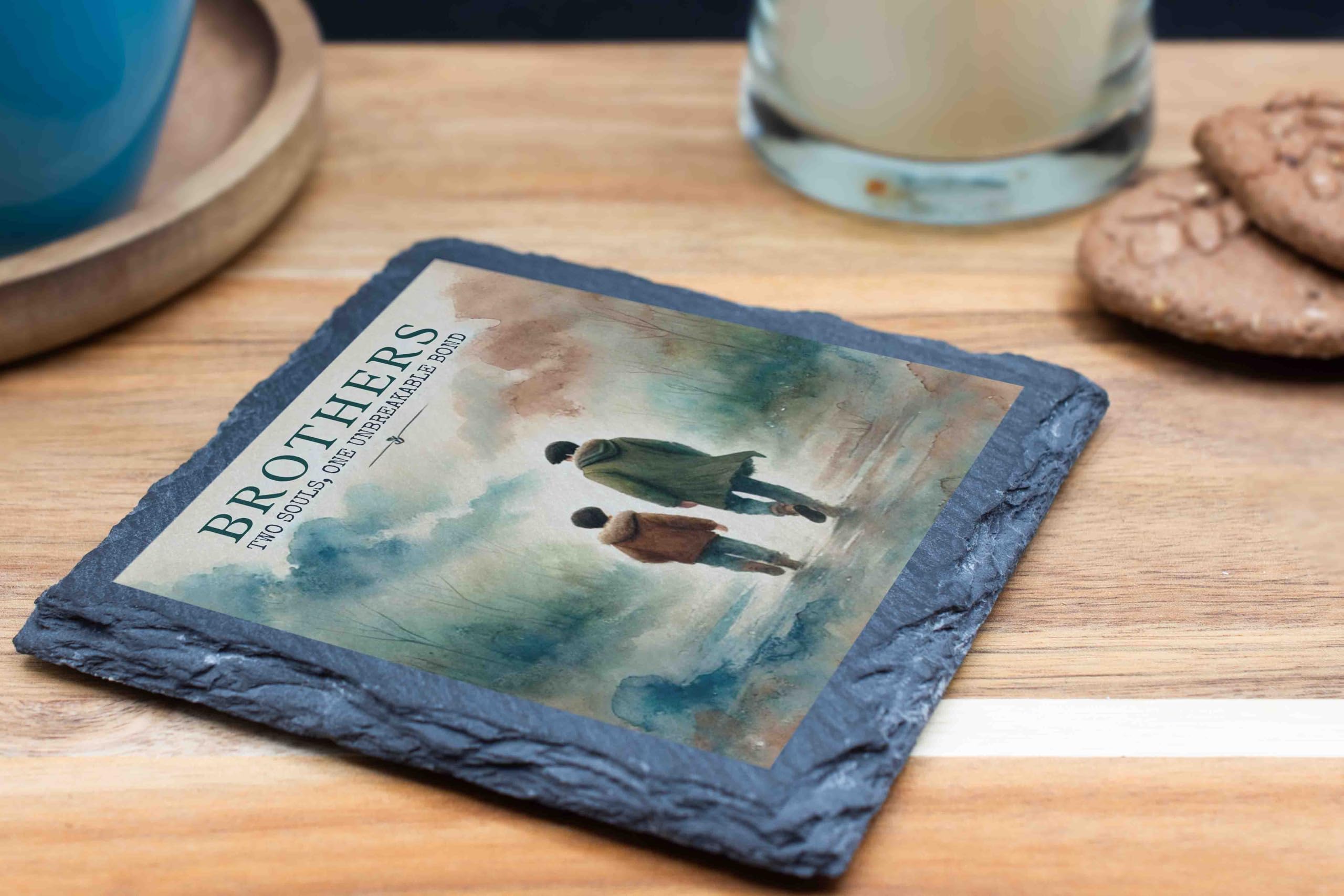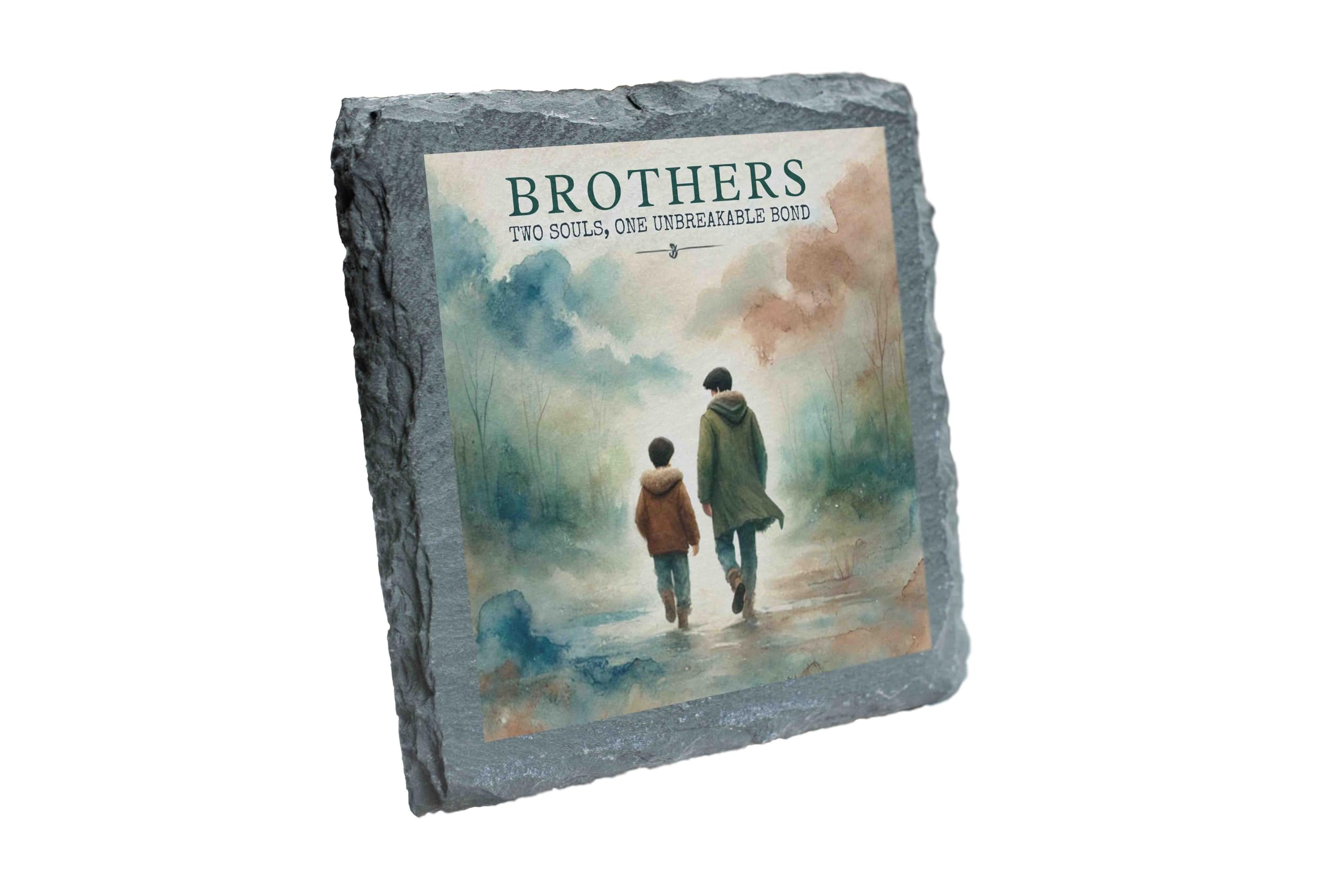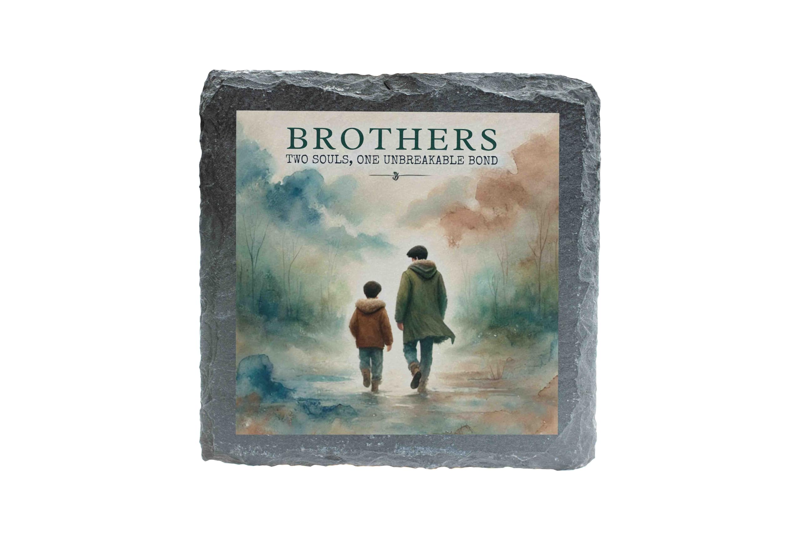 Capture the essence of brotherhood with this beautifully designed slate coaster. Featuring a delicate watercolor illustration and the touching sentiment, "Two souls, one unbreakable bond," this coaster serves as a tribute to the unique and enduring connection between brothers. Handcrafted from natural slate, it is both a practical and decorative piece, protecting your surfaces while adding an emotional and artistic charm to your home or office. Whether as a birthday gift, a token of appreciation, or a gesture of love, this coaster is a meaningful way to honor the bond that only brothers share. Durable, stylish, and full of sentiment, it?s a gift that will be treasured forever.