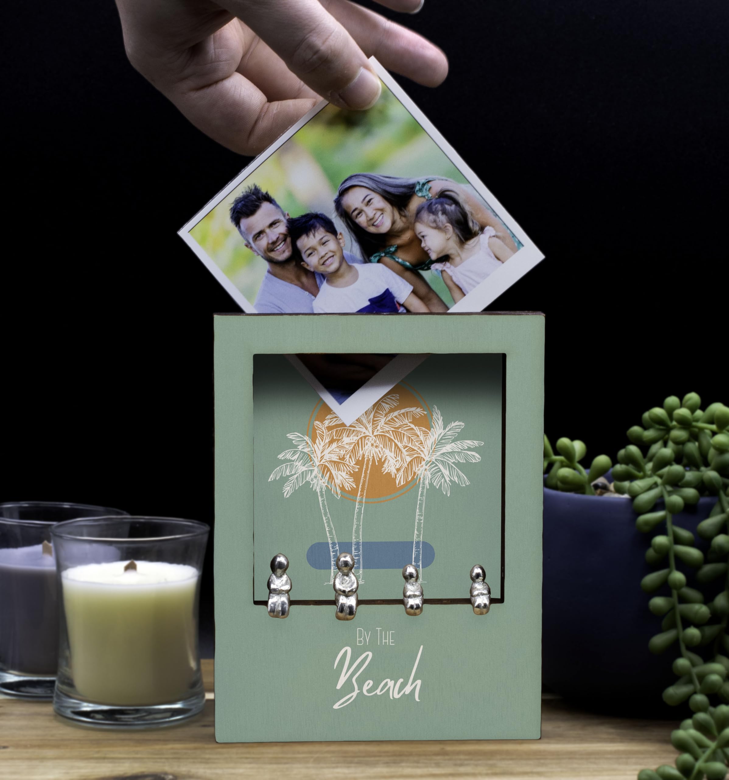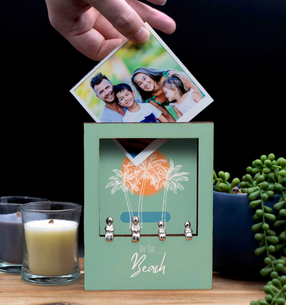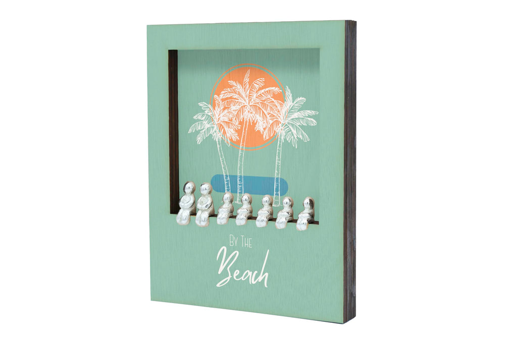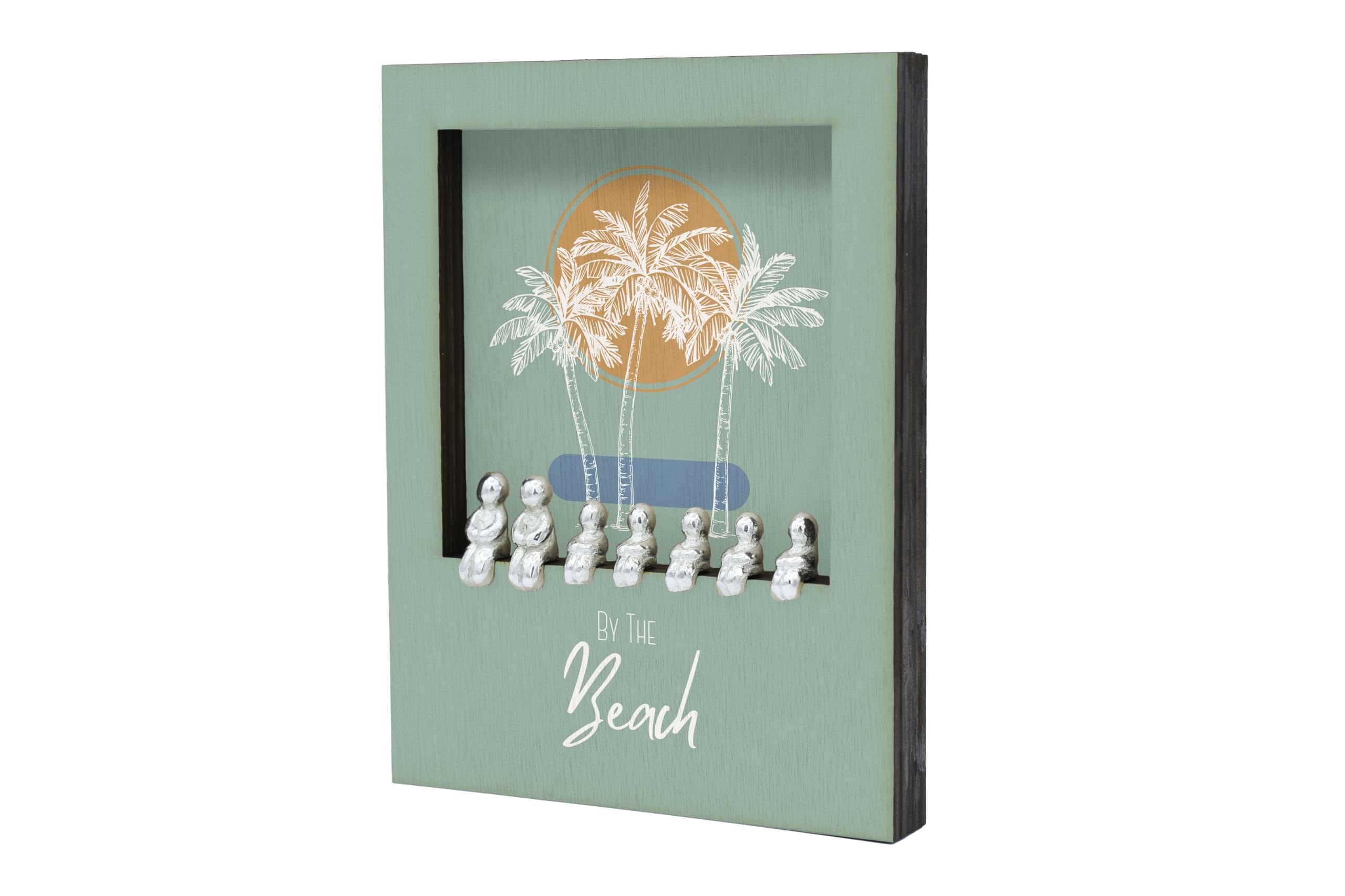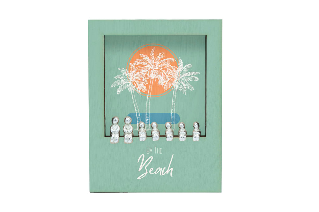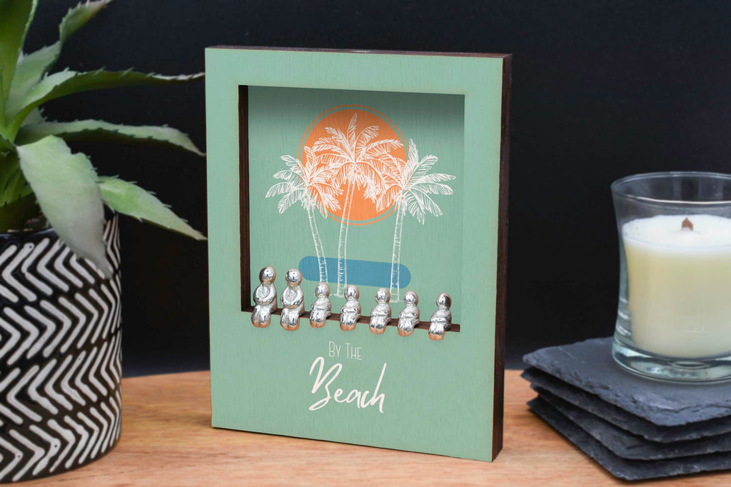 Introducing our By the Beach - Family Plywood Ornament - the perfect addition to your home decor and a thoughtful gift for your loved ones. This beautiful ornament serves as a centre piece that will bring a touch of the beach into your home. Crafted with love, this unique ornament can be personalised to reflect your own family combination. With a 7 people set, you can create a truly special piece that represents your family. Made from quality plywood, this ornament features a free standing photo frame that holds metal people, printed in full colour, surrounded by a stunning green background with palm trees, sun, and sea design. Let us help you cherish your memories by the beach with this wonderful ornament.