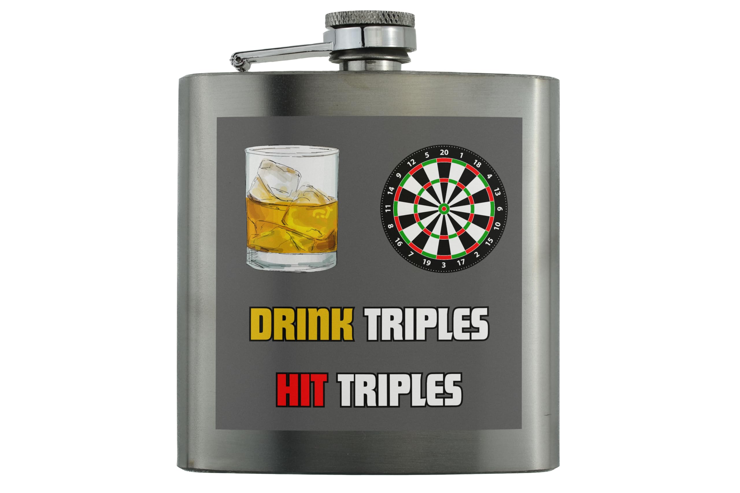 - Triple shot flask with a darts-inspired design, ideal for darts players and whiskey lovers