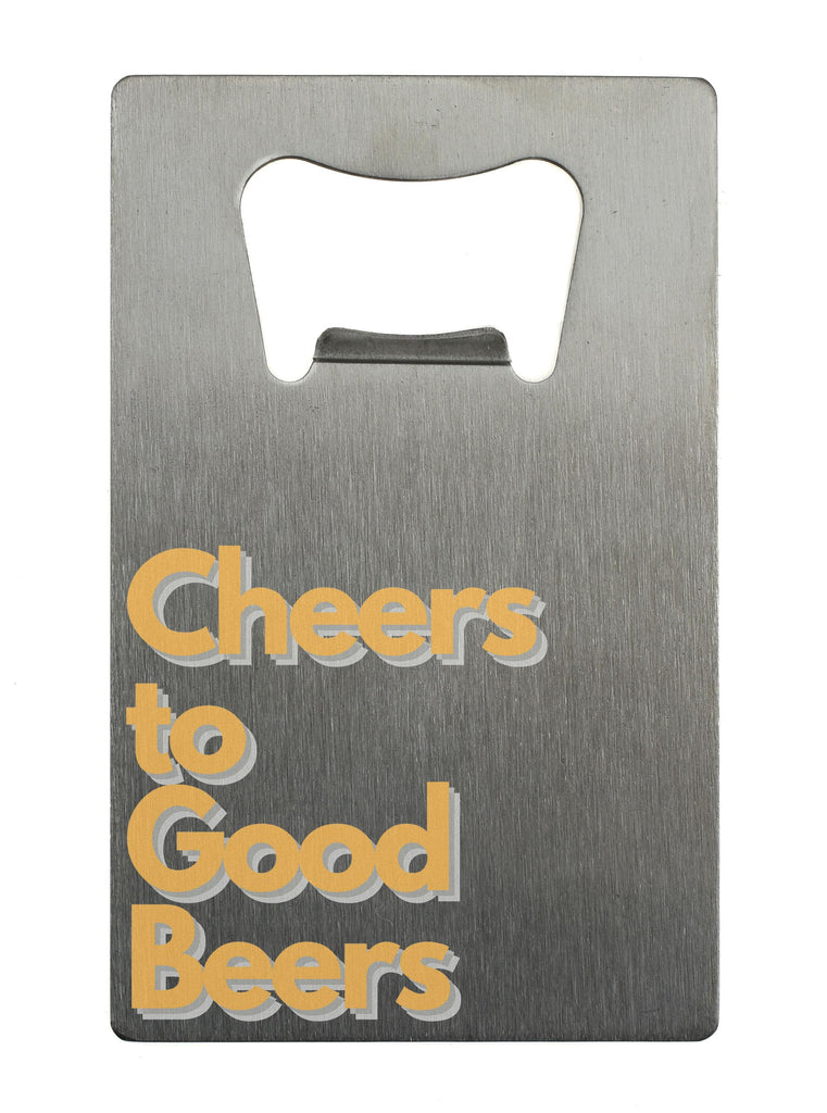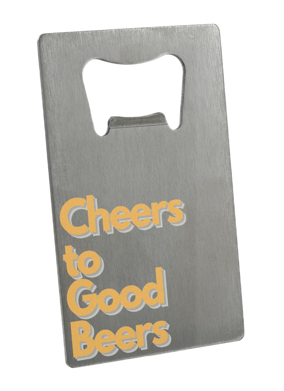 Introducing our 'Cheers to Good Beers' Credit Card Size Bottle Opener - the perfect gift for any beer lover in your life. Crafted from quality stainless steel with a brushed finish, this slim and sleek bottle opener fits perfectly in your wallet for on-the-go convenience. The vibrant bright writing on the opener reads 'Cheers to Good Times', making it a fun and novelty beer gift idea for any occasion. Whether it's for dad, brother, or a friend, this credit card size bottle opener is sure to bring a smile to their face every time they crack open a cold one. Add some style and functionality to your beer-drinking experience with this must-have accessory!
