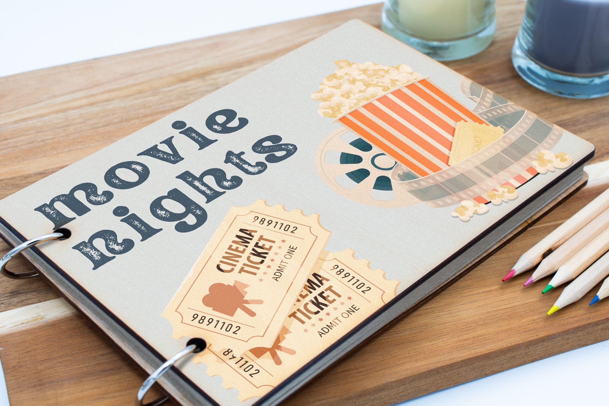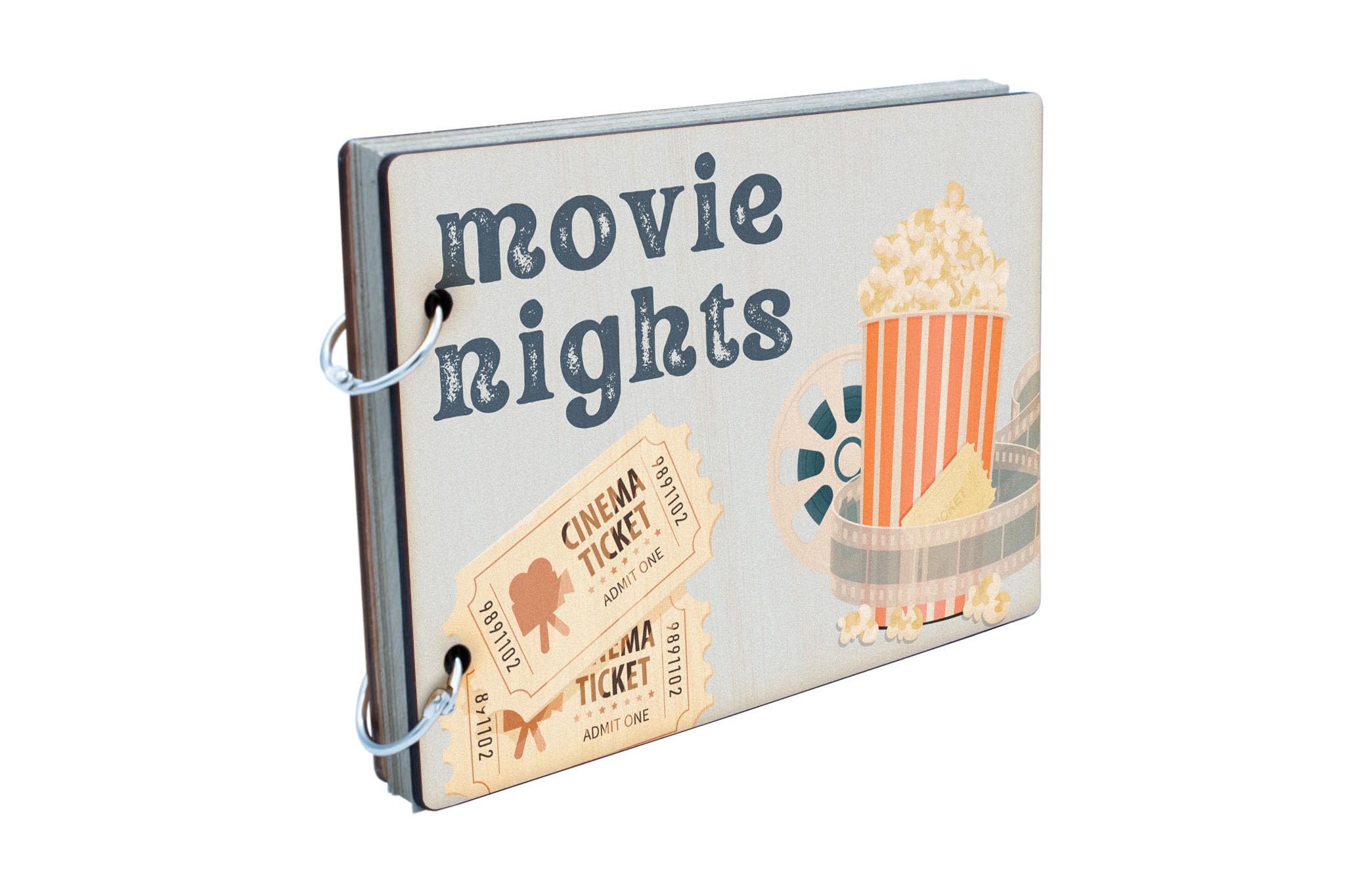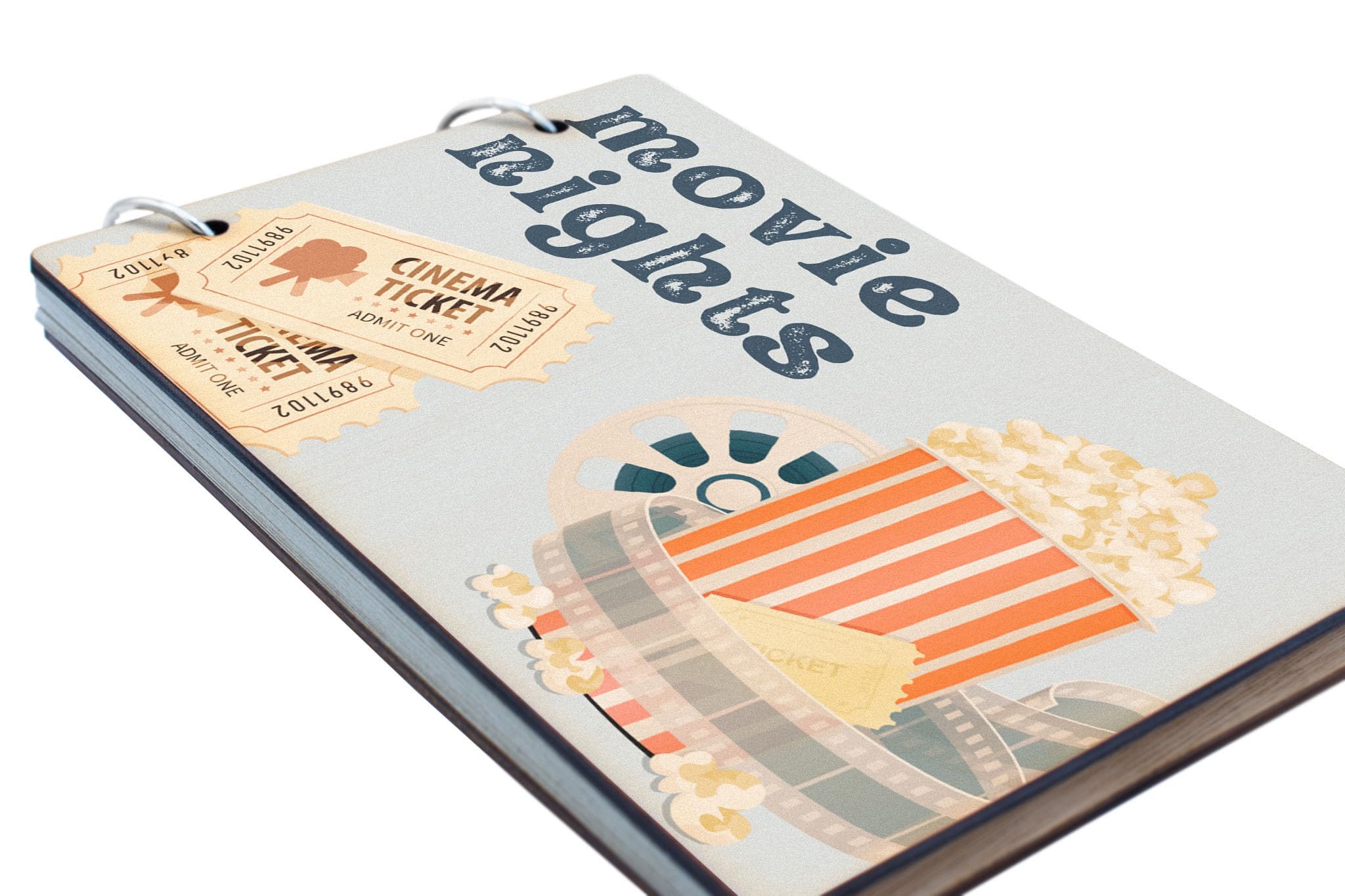 Introducing the Cinema Memories Film Log, the ultimate must-have for all movie buffs and cinema enthusiasts! This Film Log is designed to help you cherish and preserve your favourite movie experiences and memories in one convenient place. Keep track of all your movie tickets, write down your movie reviews, record your movie marathons, and create a scrapbook of all your cinema nights with this Entertainment Keepsake. The Cinema Memories Film Log features a beautiful wooden cover with a stylish cinema inspired design, including film reels and popcorn buckets. With 25 recycled pages, this Film Buff Binder is perfect for organising and storing your Movie Ticket Collection. Start documenting your Popcorn Moments and Cinema Night Chronicles today with this Movie Tracker!