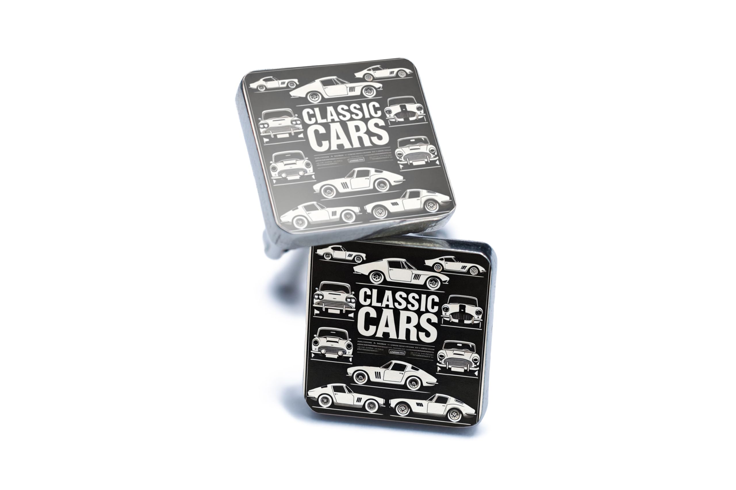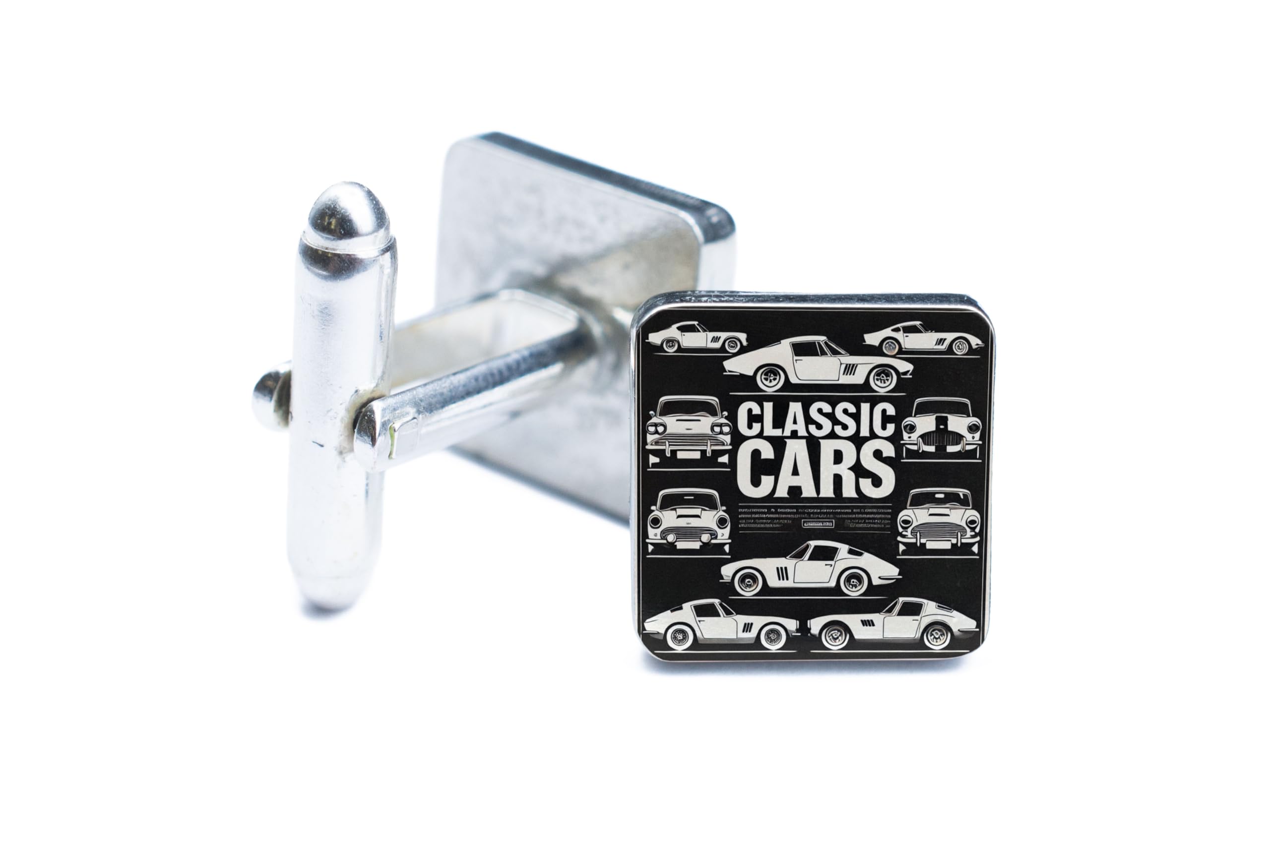 ### Product Title: "Classic Cars Cufflinks ? Vintage-Inspired Accessories for Auto Enthusiasts" --- ### Bullet Points: - **Timeless Design**: Features a collage of iconic classic car illustrations on a sleek black background, perfect for automobile lovers. - **Premium Quality**: Made with durable materials and a glossy finish for a stylish and long-lasting accessory. - **Perfect Gift for Gearheads**: An excellent present for car enthusiasts, collectors, and vintage style aficionados. - **Versatile Style**: Adds a touch of sophistication to formalwear or a hint of personality to casual outfits. - **Ready to Gift**: Arrives in a luxurious box, making it an ideal gift for birthdays, anniversaries, or Father?s Day. --- ### Product Description: **Celebrate the Golden Age of Automobiles** These 'Classic Cars' cufflinks are a must-have for vintage car enthusiasts. With detailed illustrations of iconic classic vehicles, they capture the elegance and charm of the automotive golden age. **Style Meets Passion** Perfect for car lovers, these cufflinks combine a sophisticated look with a passion for vintage design. Whether for formal events or everyday wear, they are sure to make a statement. **Gift-Ready Elegance** Surprise the car lover in your life with these unique cufflinks. Packaged in a premium gift box, they?re perfect for any special occasion. Bring back the nostalgia of the open road with these one-of-a-kind classic car cufflinks!
