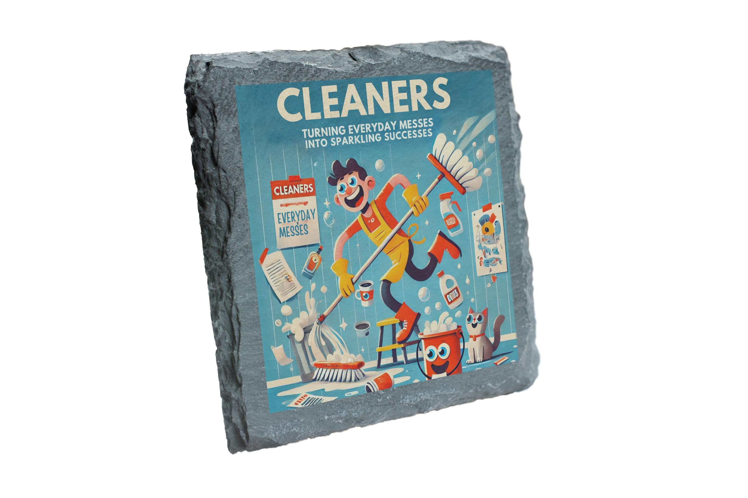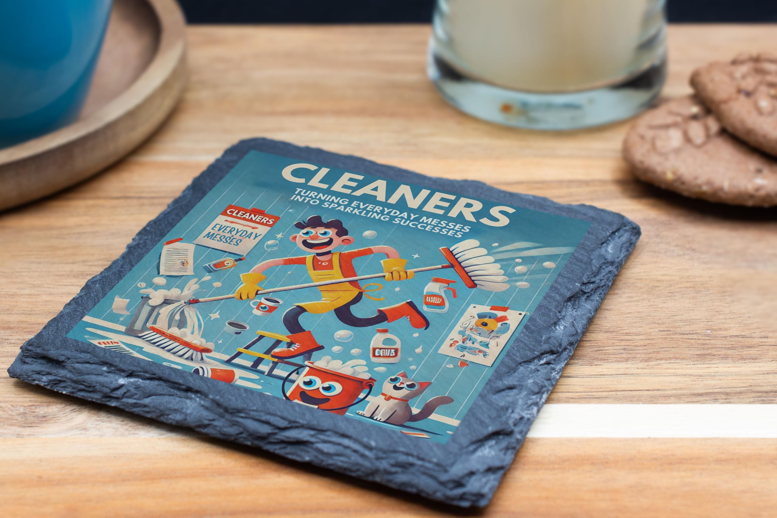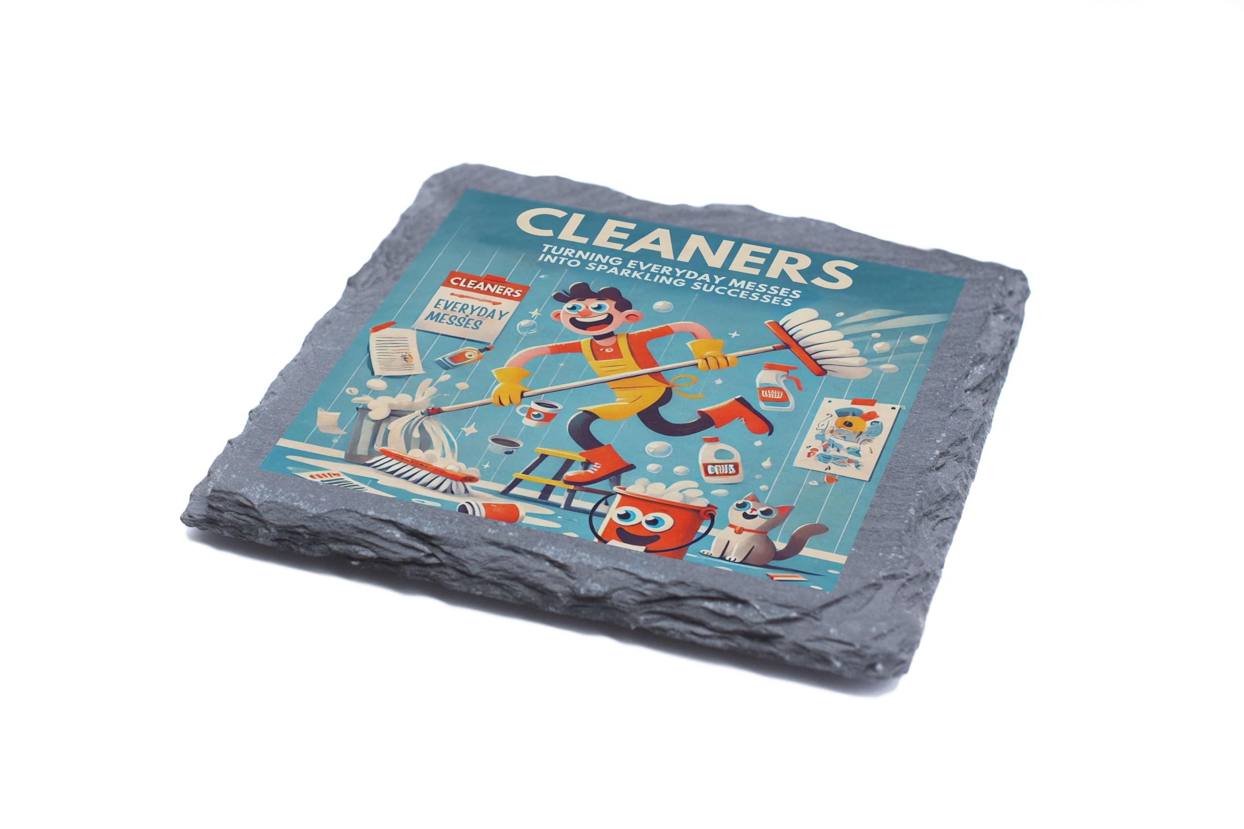Add a splash of humor and charm to your home with this "Cleaners: Turning Everyday Messes into Sparkling Successes" Slate Coaster. This unique and playful design captures the joy of tidying up with its vibrant illustration of a cheerful cleaner surrounded by cleaning essentials. Crafted from premium natural slate, this coaster is both functional and stylish, offering protection for your surfaces from stains and heat. Whether you?re enjoying a hot coffee or a refreshing drink, this coaster serves as a humorous reminder of the sparkling results of hard work and organization. It?s a perfect gift for those who love to keep things clean and organized, or as a quirky addition to your own home decor. Durable, easy to clean, and delightfully designed, this slate coaster makes messes seem like a thing of the past!