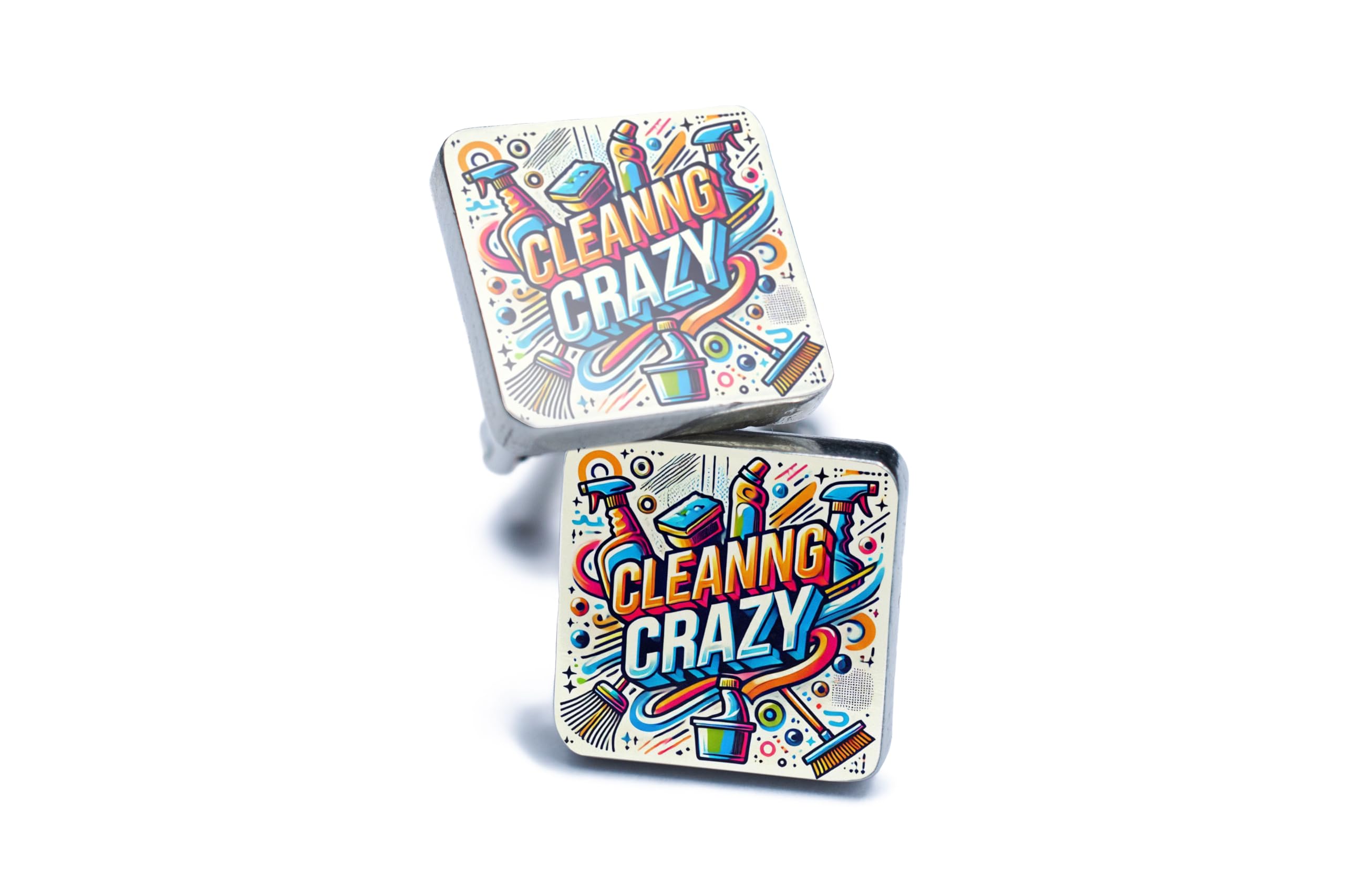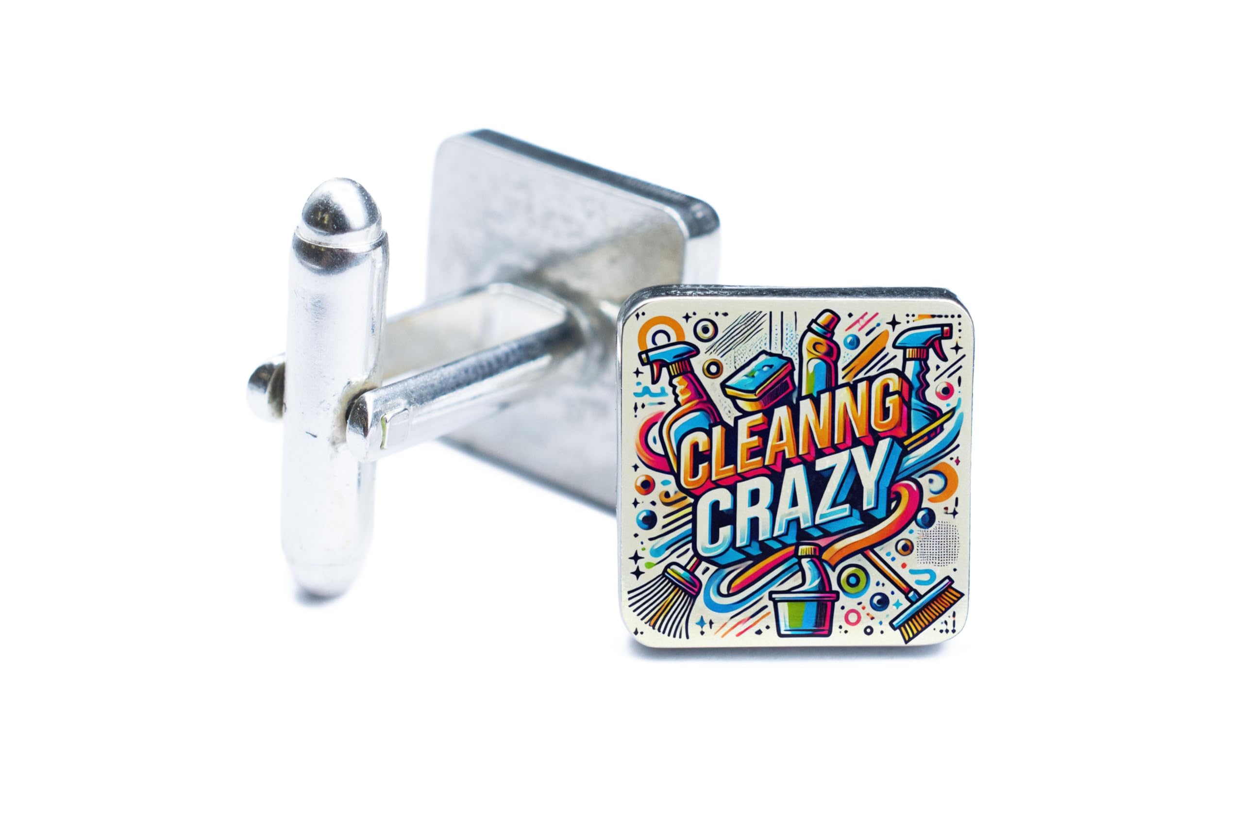 Show off your love for cleaning in style with these eye-catching "Cleaning Crazy" cufflinks! Featuring a vibrant design that celebrates the joy of a spotless space, these cufflinks are the perfect accessory for anyone with a passion for cleanliness. Made with high-quality materials and a sleek finish, they're durable and comfortable to wear for any occasion. Whether you're attending a formal event or just want to add some personality to your wardrobe, these cufflinks make a bold statement. They also make an excellent gift for friends, family, or coworkers who can't get enough of tidying up!