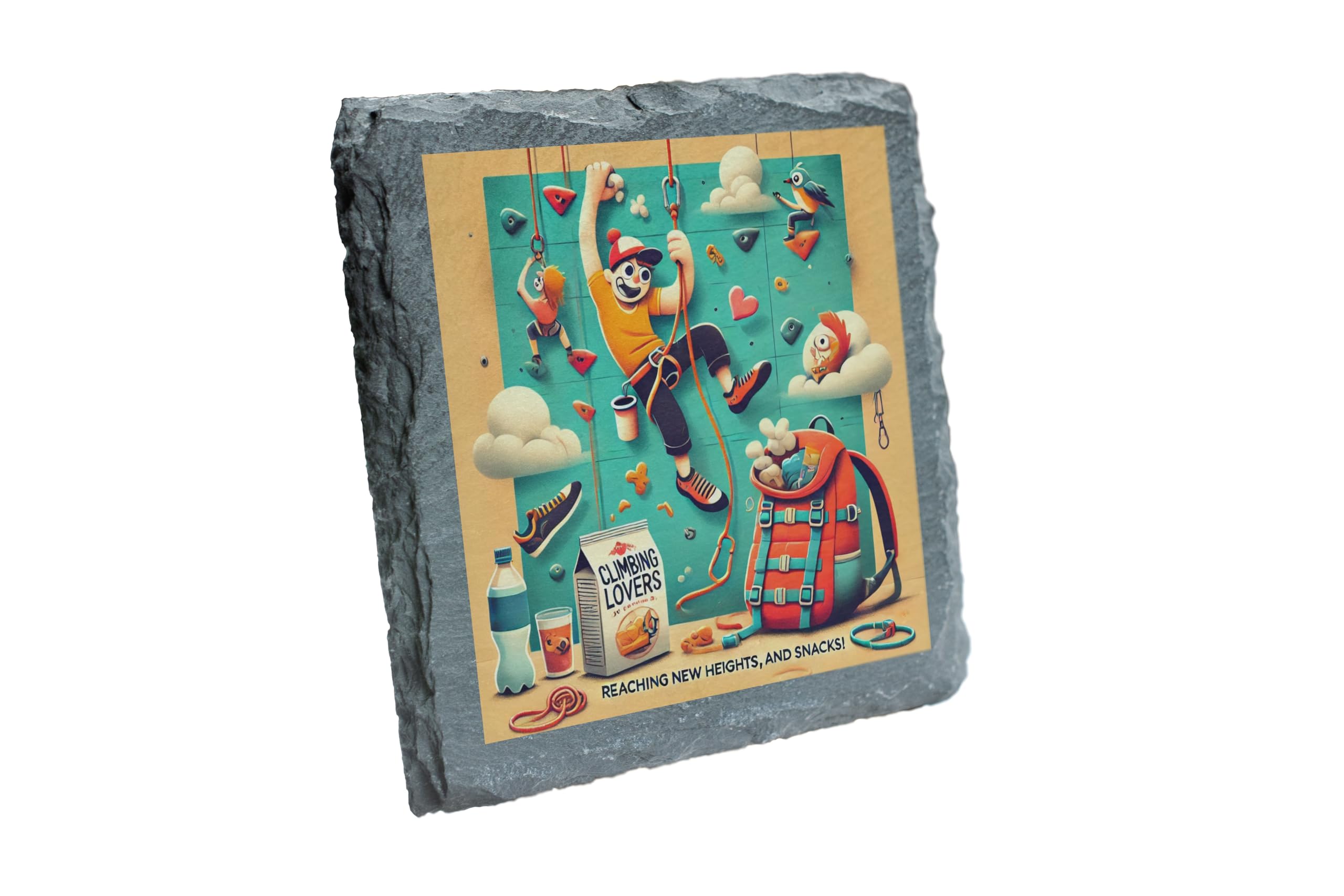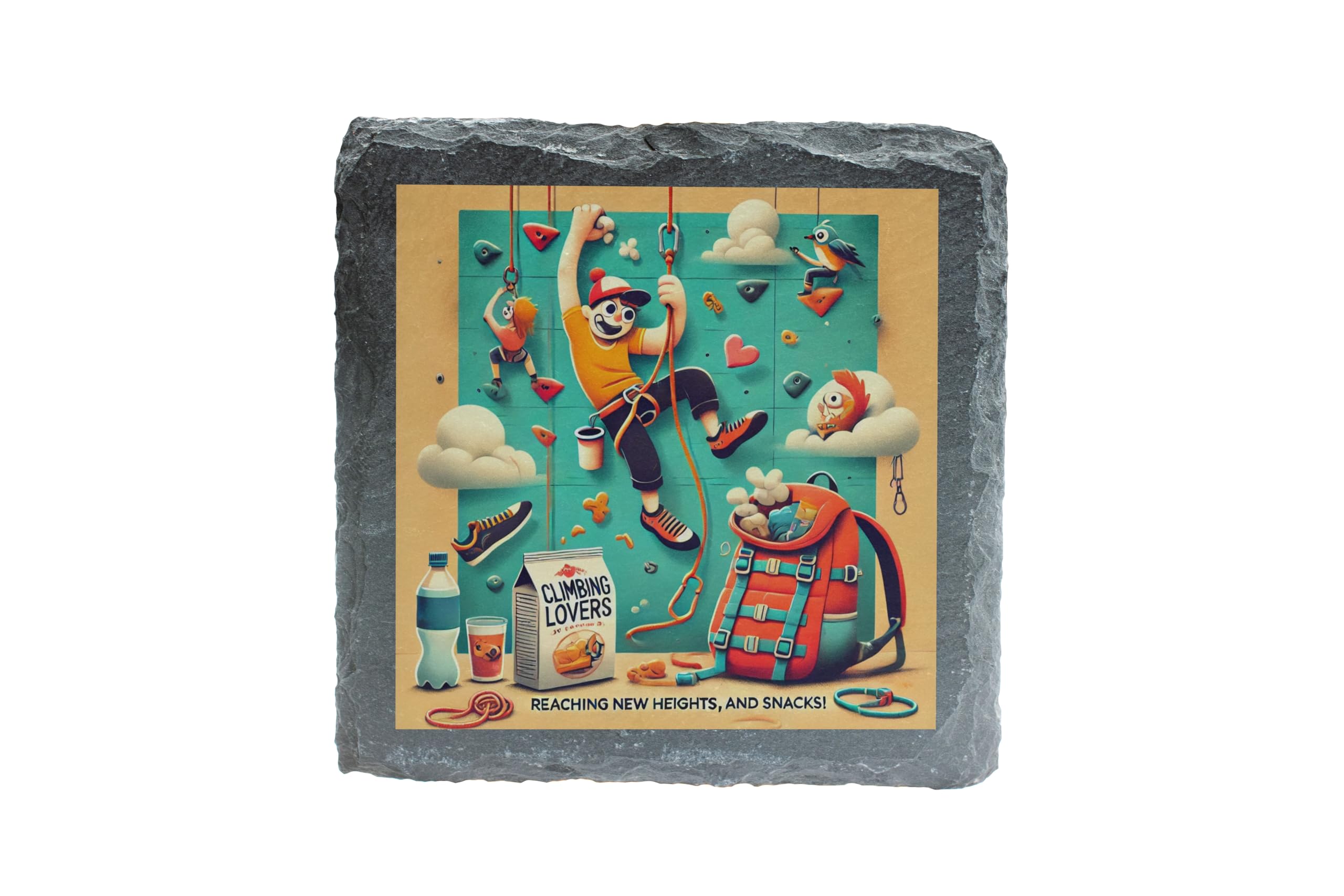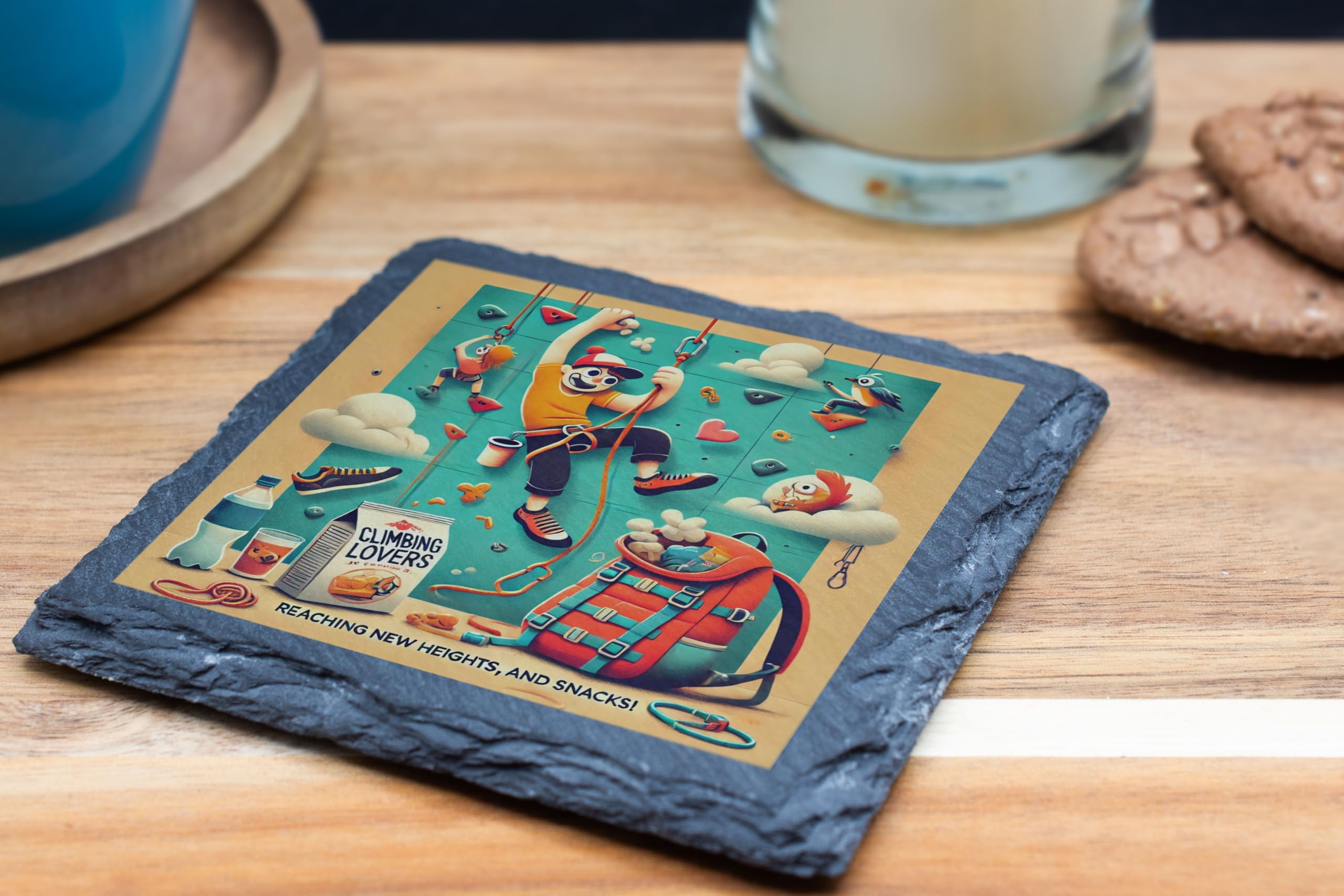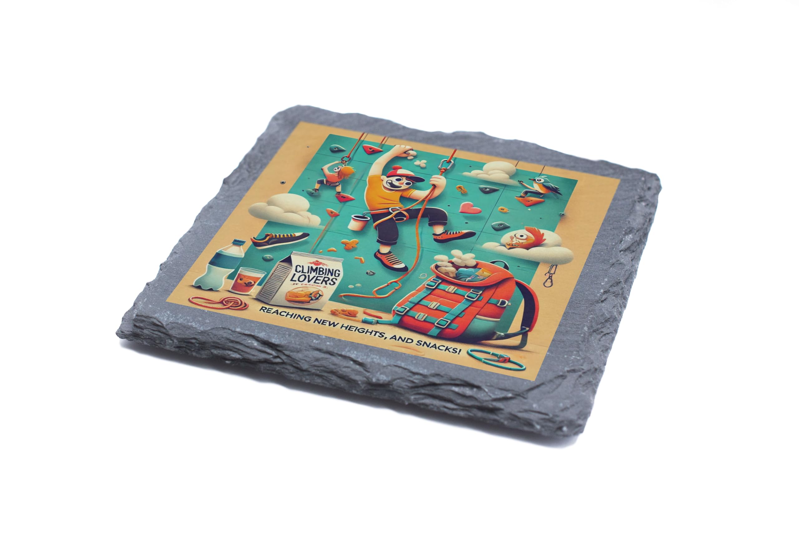 Celebrate your love for climbing and adventure with the "Climbing Lovers ? Reaching New Heights and Snacks!" Slate Coaster. This vibrant and humorous design captures the joy of scaling walls and indulging in well-earned snacks. Made from high-quality natural slate, this coaster is both functional and decorative, offering a rustic charm to any table or kitchen. Perfect for gifting to climbing enthusiasts, adventure seekers, or anyone who appreciates a fun and quirky touch in their home. Whether for your morning coffee or evening tea, this coaster is a conversation starter and a delightful reminder of life's little adventures.