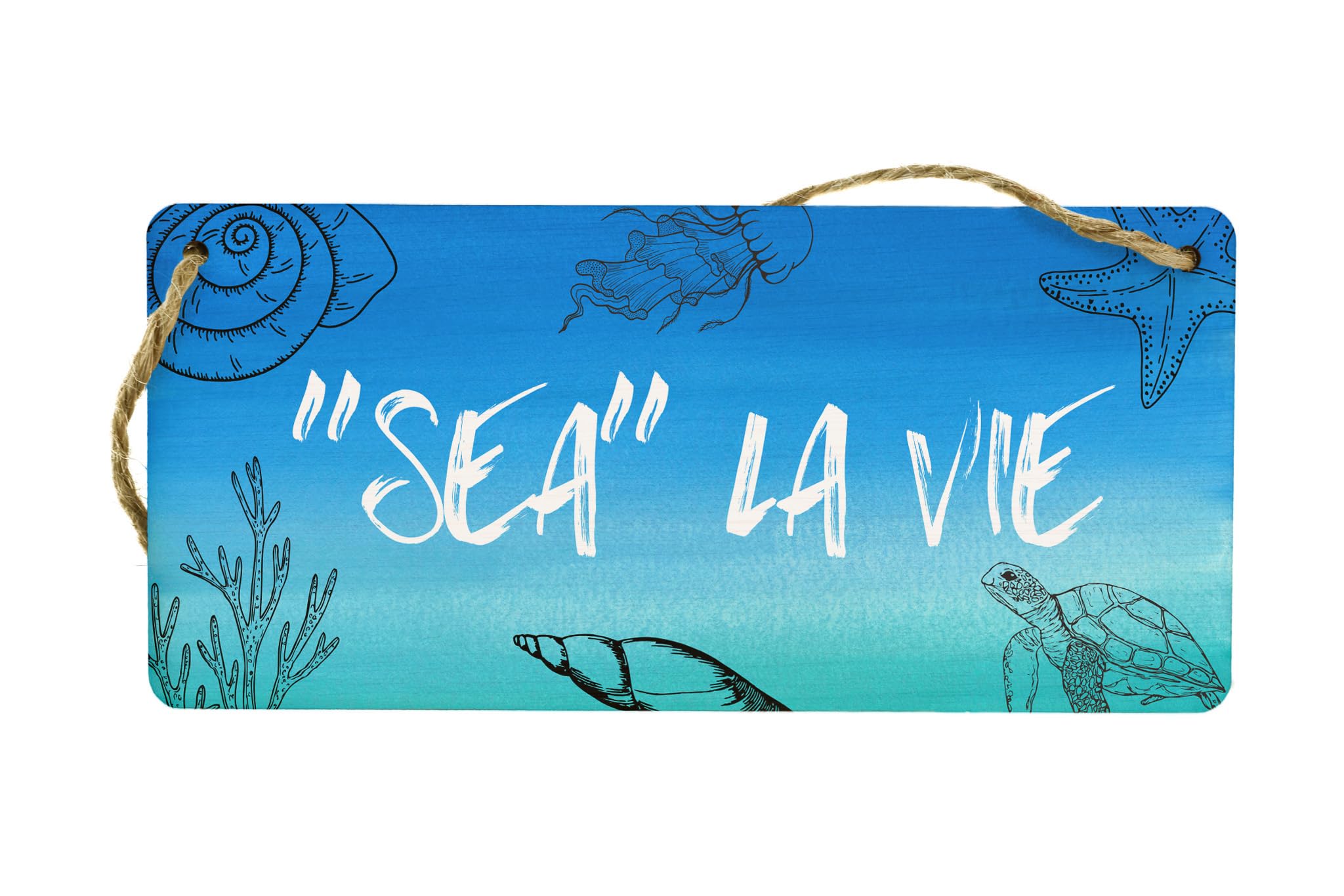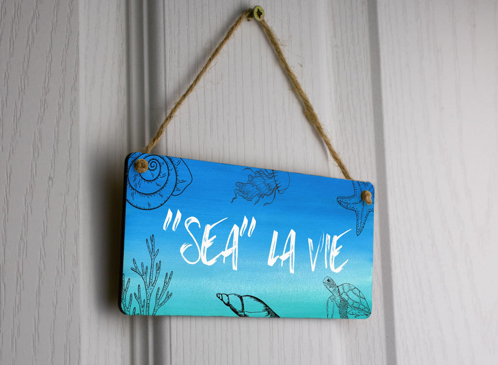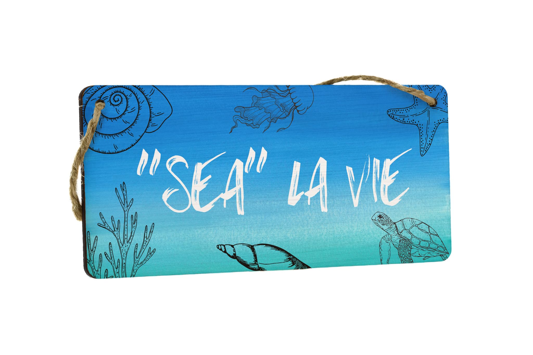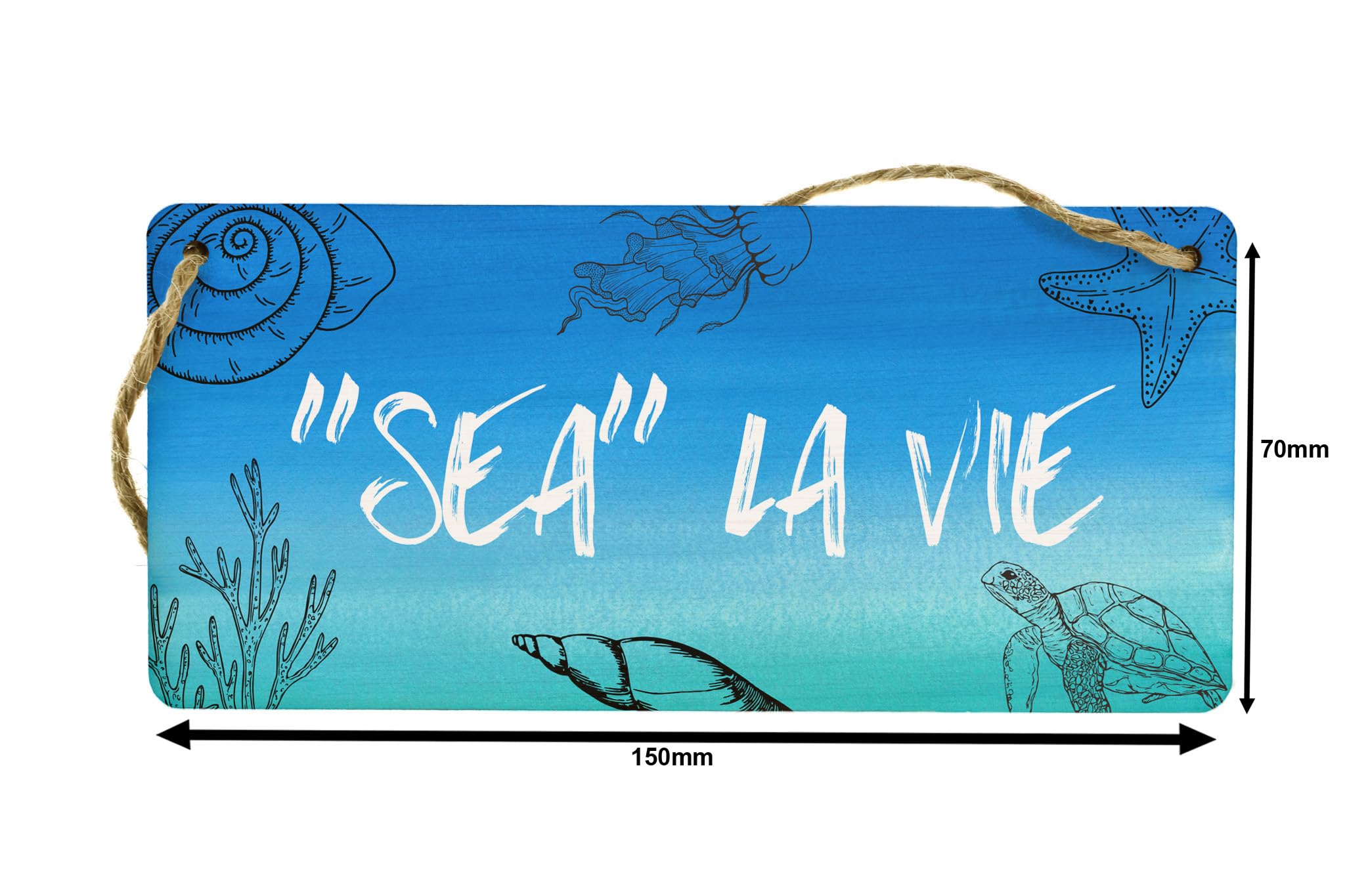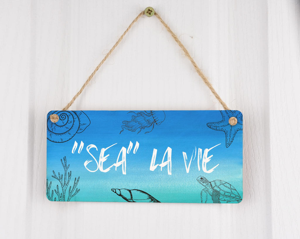 Coastal Theme Hanging Plywood Sign - Sea La Vie, Beach Home D?cor - Full Colour Wooden Wall Sign for Living Room