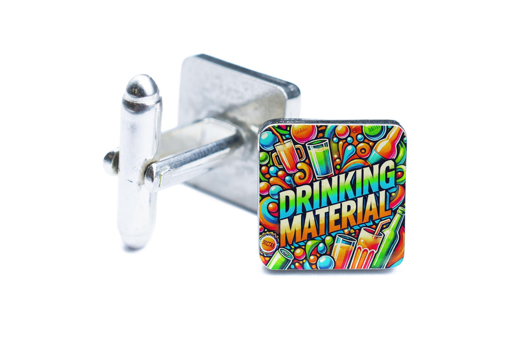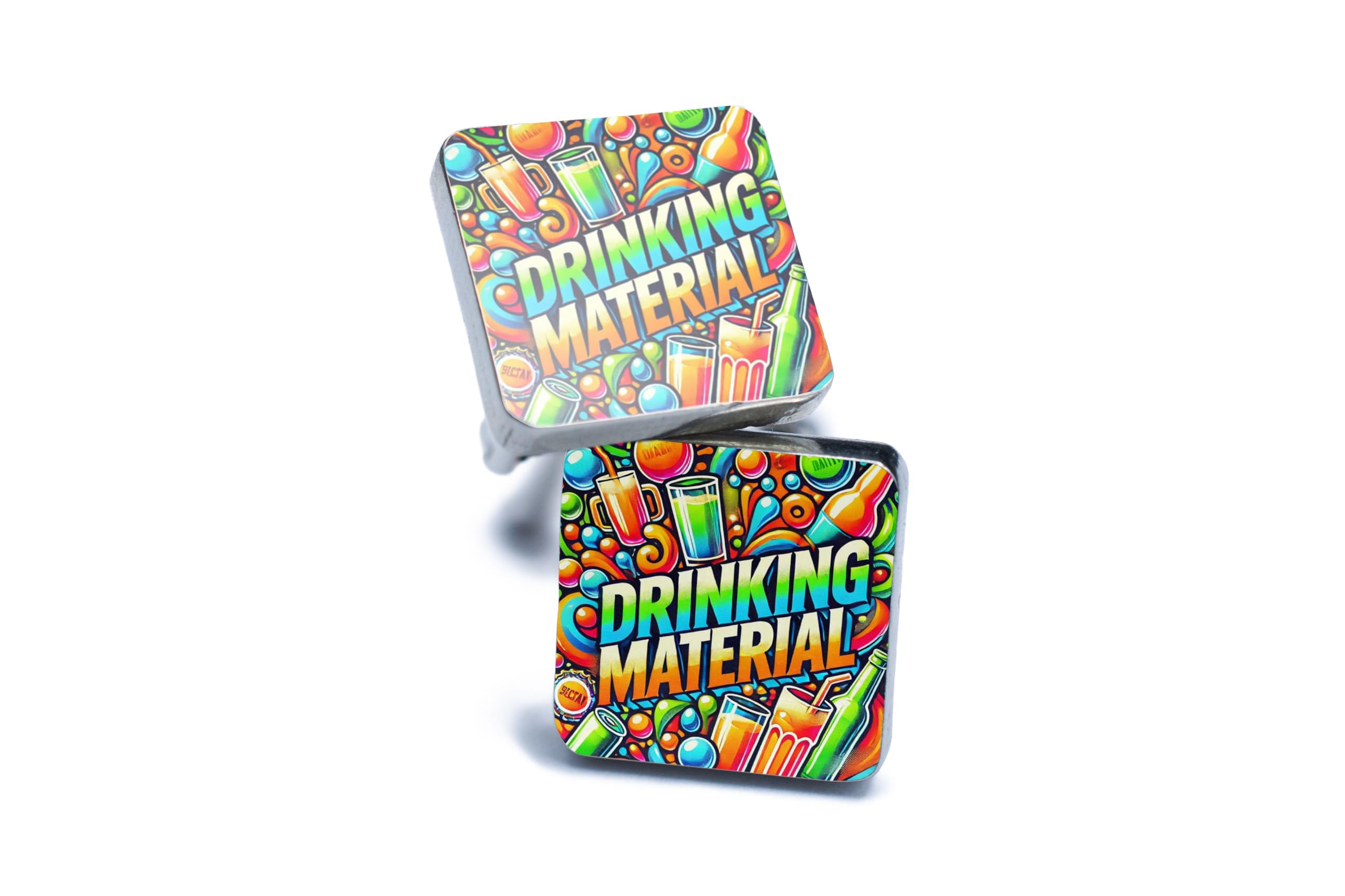 Introducing our Cocktail Cheers UV Printed Cufflinks, the perfect accessory for any stylish man who enjoys a good drink. These novelty cufflinks feature a handcrafted design made from tin and pewter, ensuring durability and quality craftsmanship. The UV printed accessory showcases a colourful beverage theme, with a bold and fun design that reads 'Drinking Material' for a touch of whimsy. These cocktail-themed cufflinks are ideal for special occasions, adding a touch of fun and celebration to any outfit. Whether you're heading to a party or a casual gathering, these unique cufflinks are sure to make a statement. Surprise a friend or loved one with a fun gift for drinkers, perfect for anyone who enjoys a good cocktail. Add a touch of bar-themed fashion to your outfit with these stylish cufflinks, a must-have accessory for any man who prioritises both style and fun.