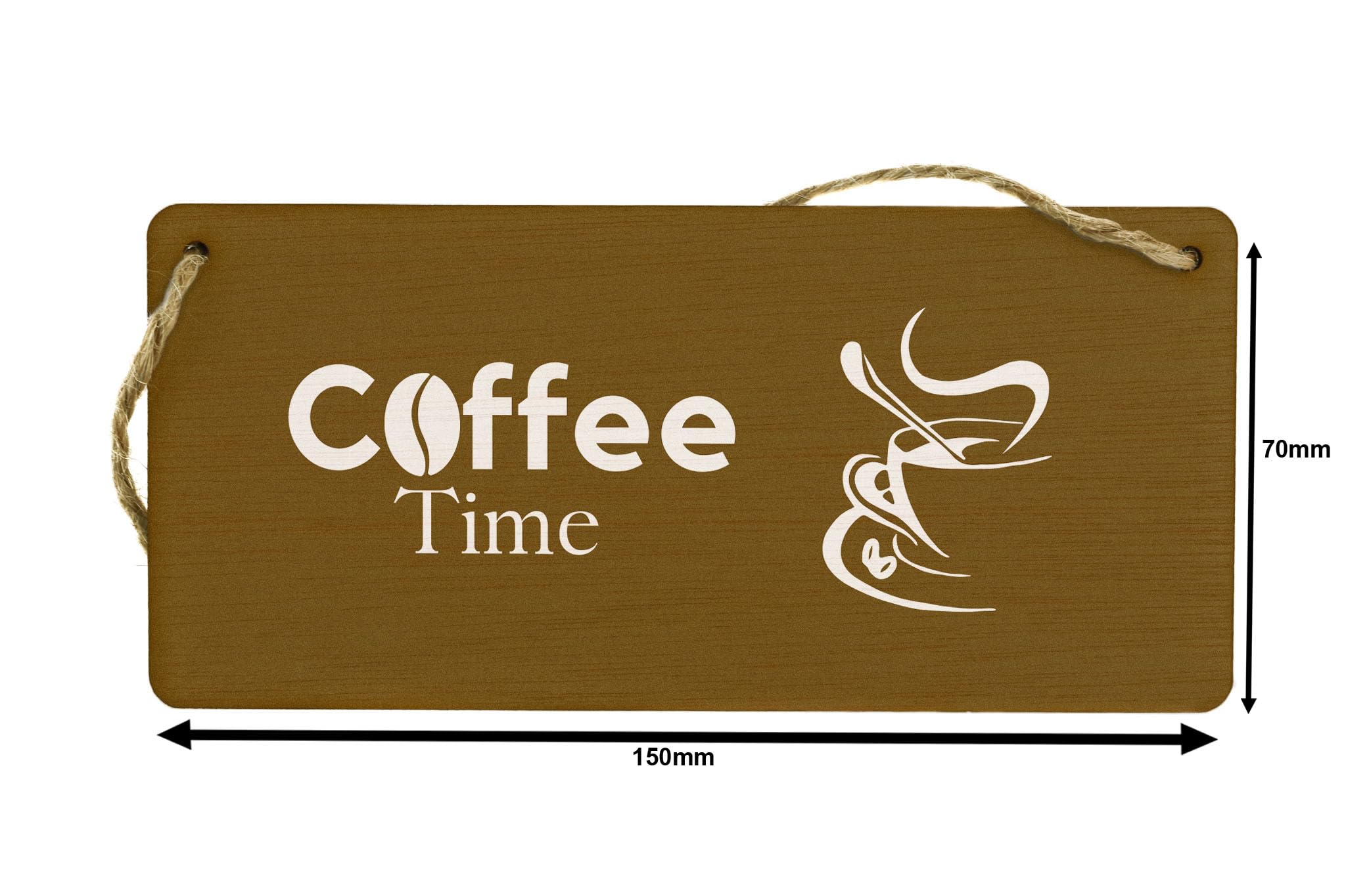 Enhance your home d?cor with this charming Plywood Hanging Sign - Coffee Time. Made from premium quality plywood, this hanging sign features a full-colour design with a white outline image of a coffee cup on a brown background. With its delightful 'Coffee Time' message written in crisp white writing, this sign is perfect for coffee lovers and adds a touch of warmth and style to any room in your home. Whether you are looking for a gift for your family, friends, wife, husband, girlfriend, boyfriend, son, daughter, or siblings, this Coffee Time sign is sure to impress. Hang it in your kitchen, living room, or even your home office to remind yourself to pause and enjoy a cup of coffee in your busy day. This charming sign will certainly be a focal point in any space.