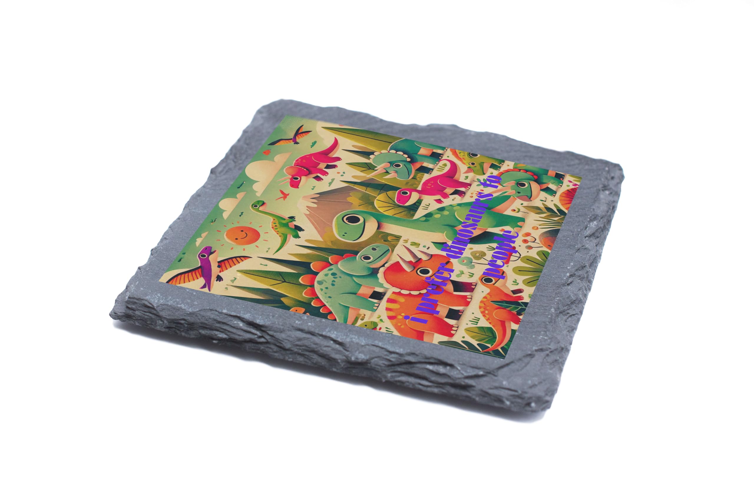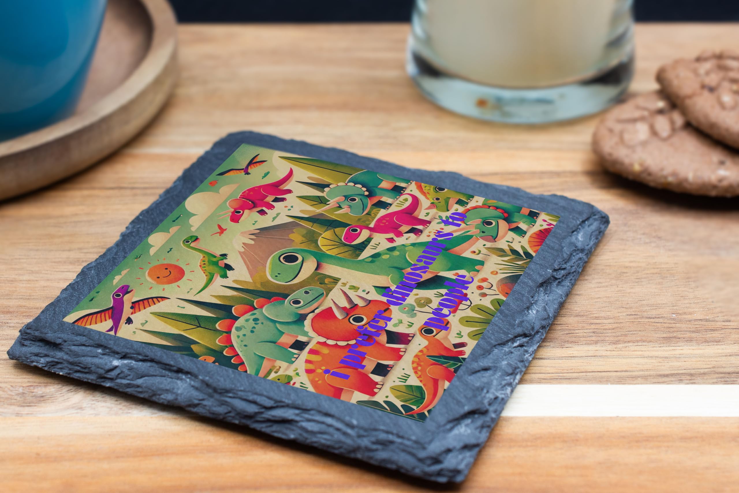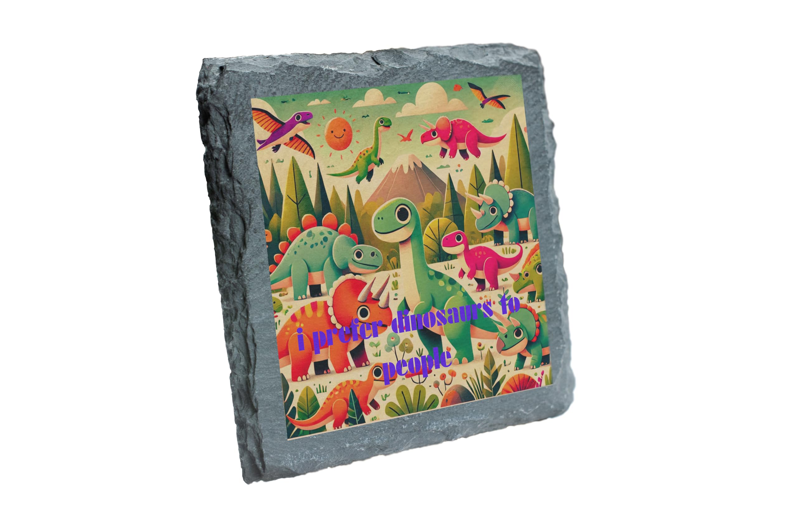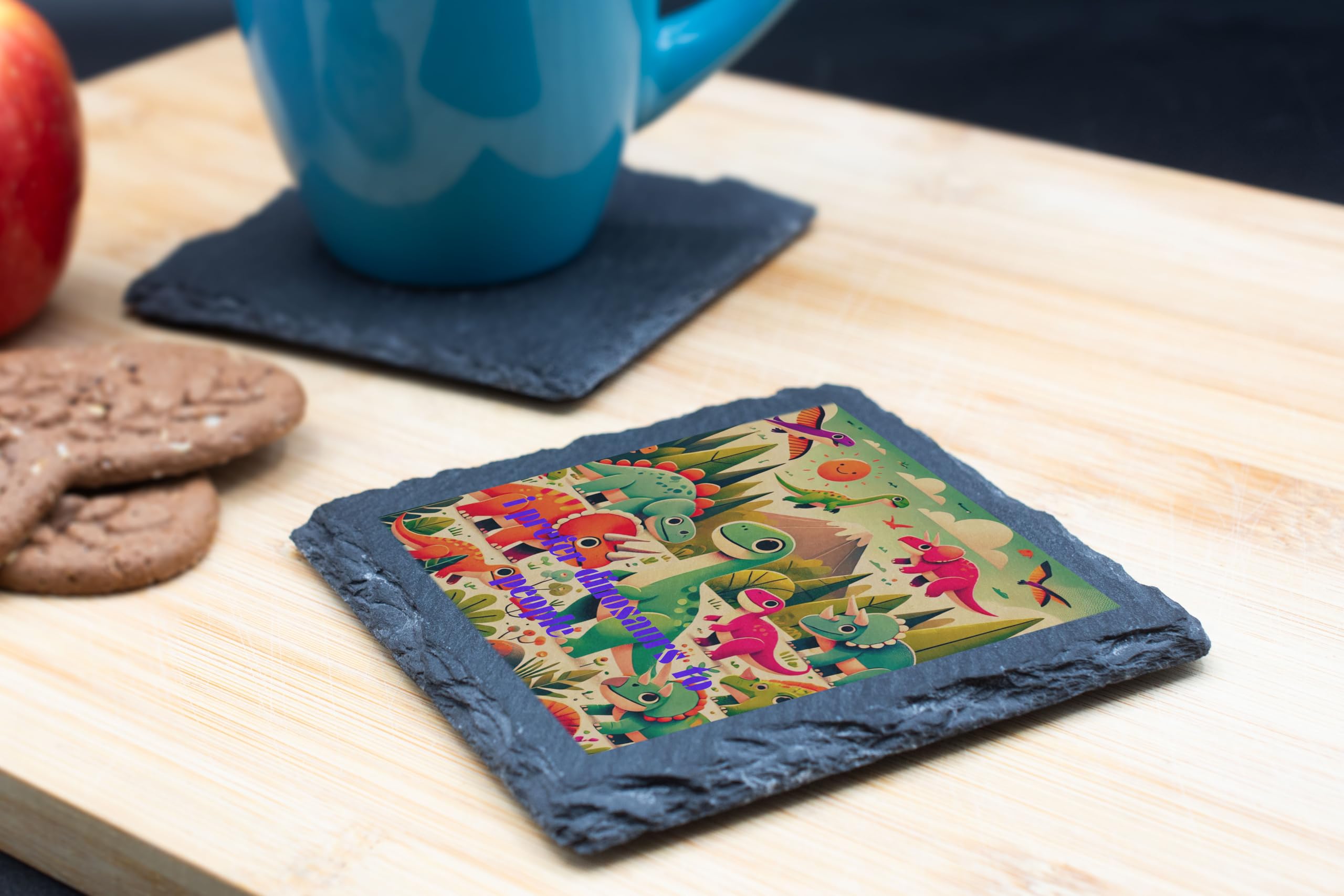 Add a pop of color and excitement to your space with the Colorful Dinosaur Slate Coaster! This delightful design showcases a whimsical illustration of dinosaurs in a vibrant and playful style, perfect for bringing smiles to both kids and adults. Crafted from high-quality slate, this coaster is not only durable but also features a natural, rustic texture that adds character to your home. It's functional too, protecting your surfaces from spills and scratches. Whether you're a dinosaur enthusiast or looking for a unique gift idea, this coaster is a fantastic choice for any occasion. Brighten your space and celebrate your love for dinosaurs with this cheerful and practical piece!
