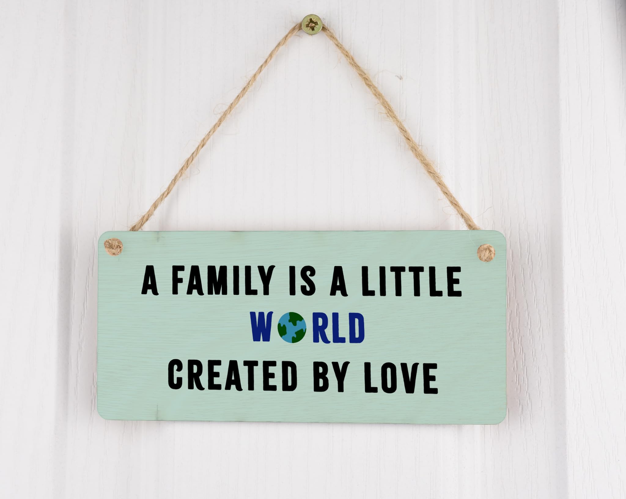 Introducing the Love Nest: Colorful & Modern Plywood Sign - the perfect addition to any home or kitchen. This small sign is made from high-quality plywood and hangs from a convenient cord. With its vibrant and eye-catching design, it promises to bring a touch of color and modernity to any space. Whether you're looking for a thoughtful gift for your home or a special present for Mum or Nan, this sign is the ideal choice. It's a fantastic idea for Mother's Day or any occasion, as it beautifully showcases the sentiment 'Family is a little world created by love'. Make your loved ones feel cherished with this stylish and meaningful family gift.