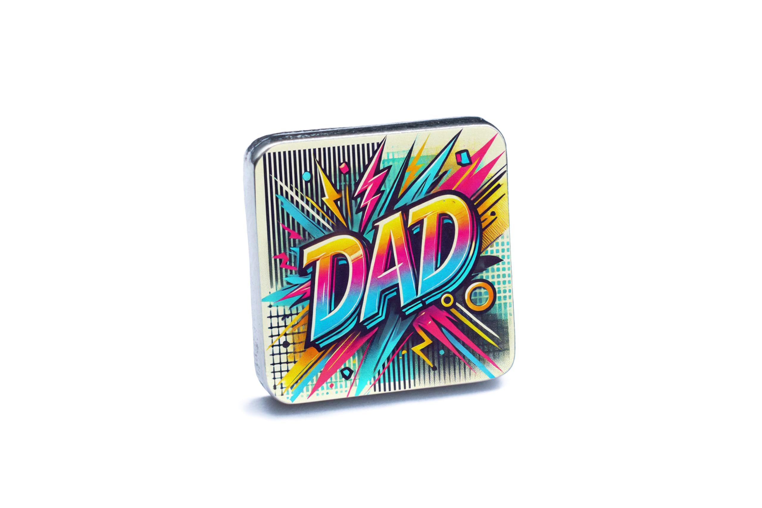 - Features a bold and colorful comic book-style "Dad" design, celebrating the superhero in your life.